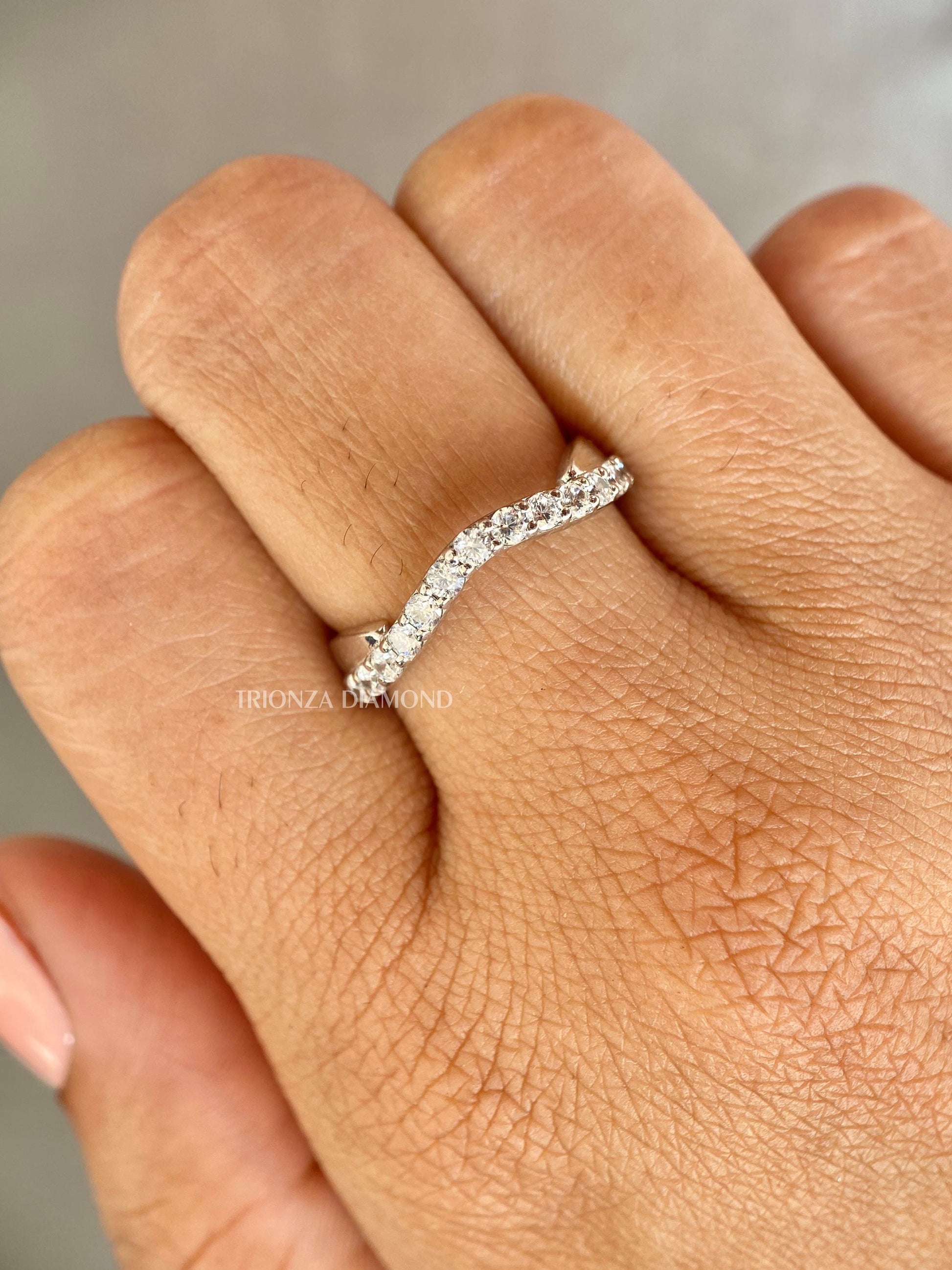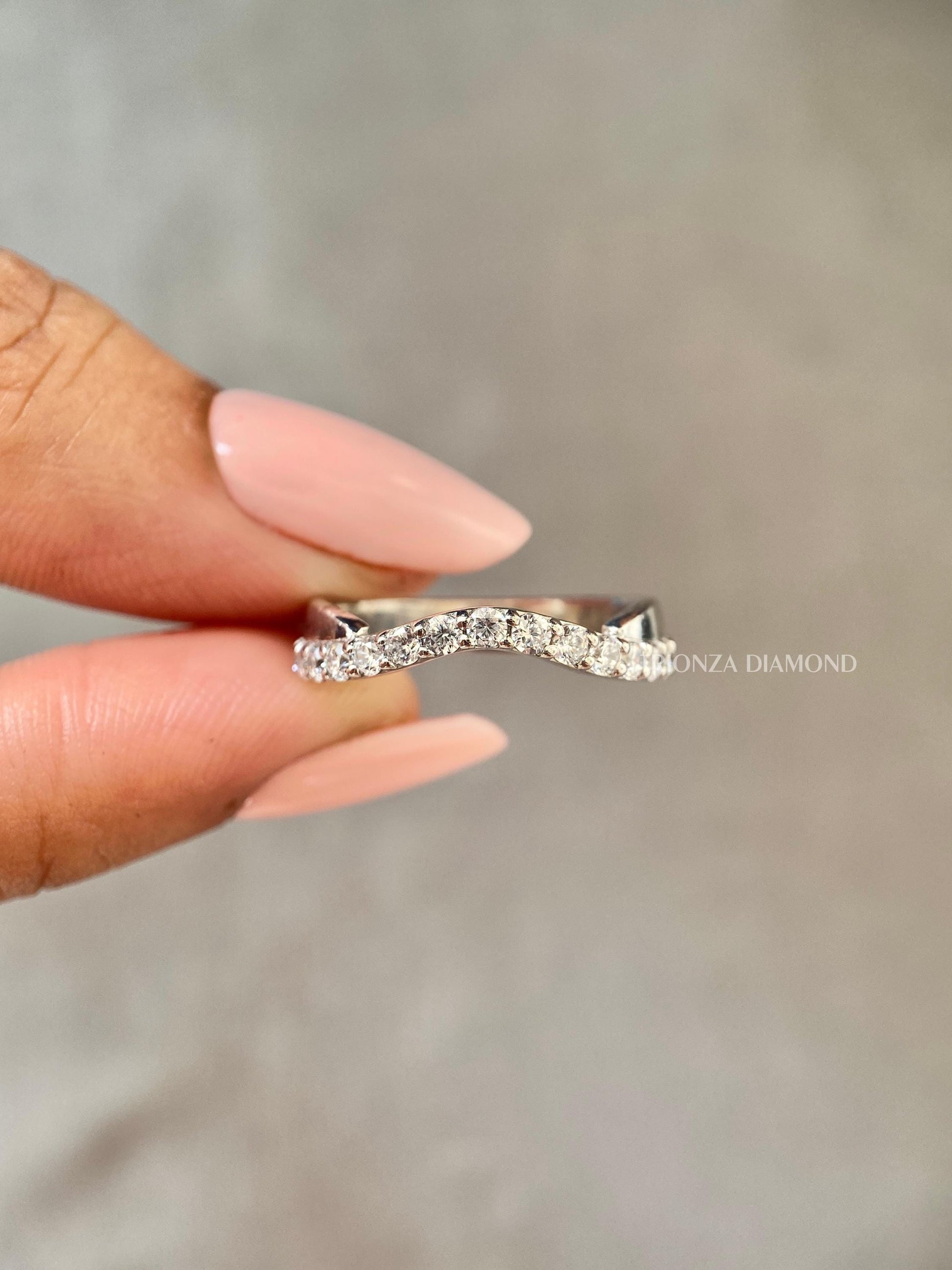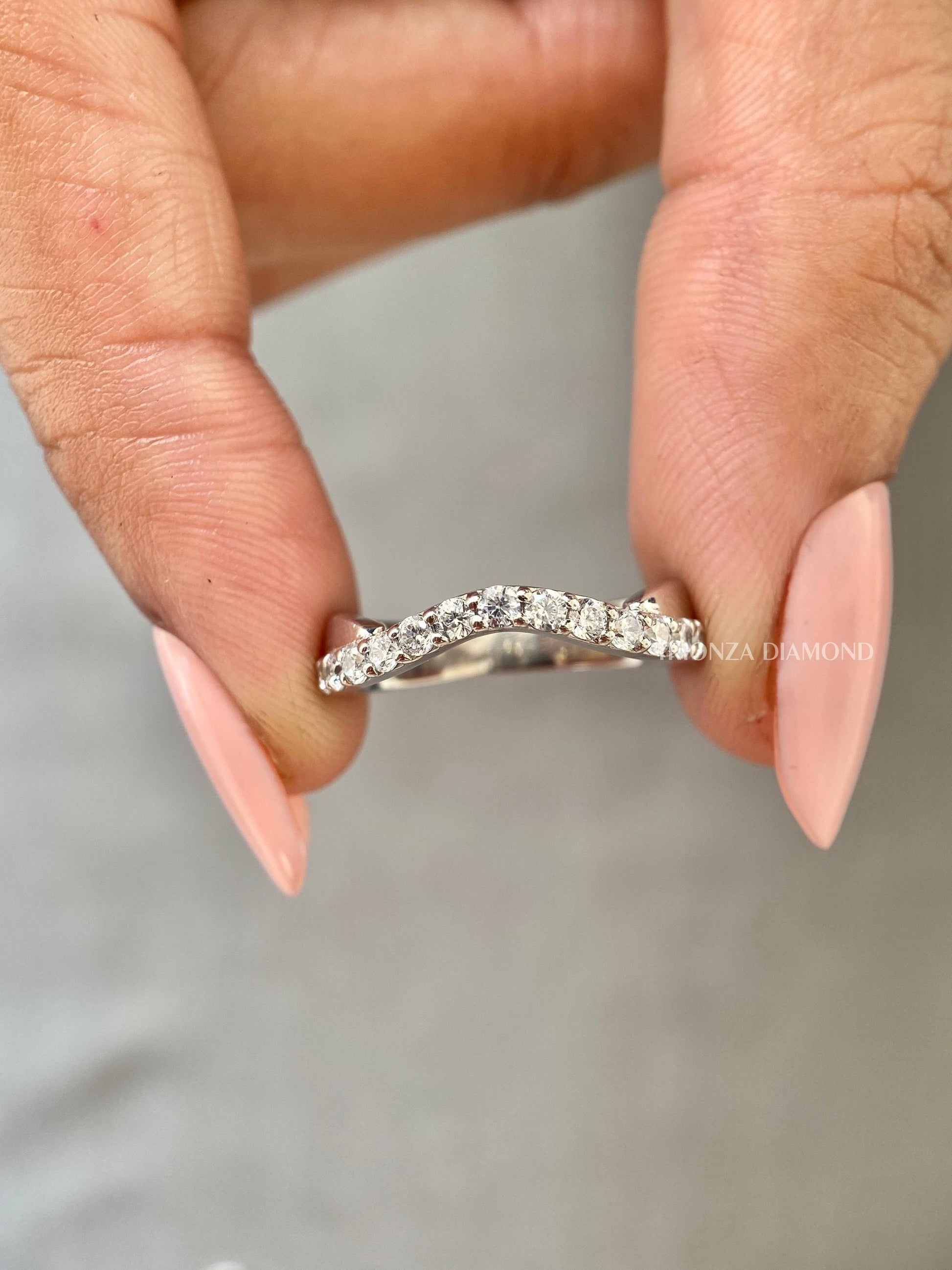 Lab Grown Diamond Curved Wedding Band | Platinum Half Eternity