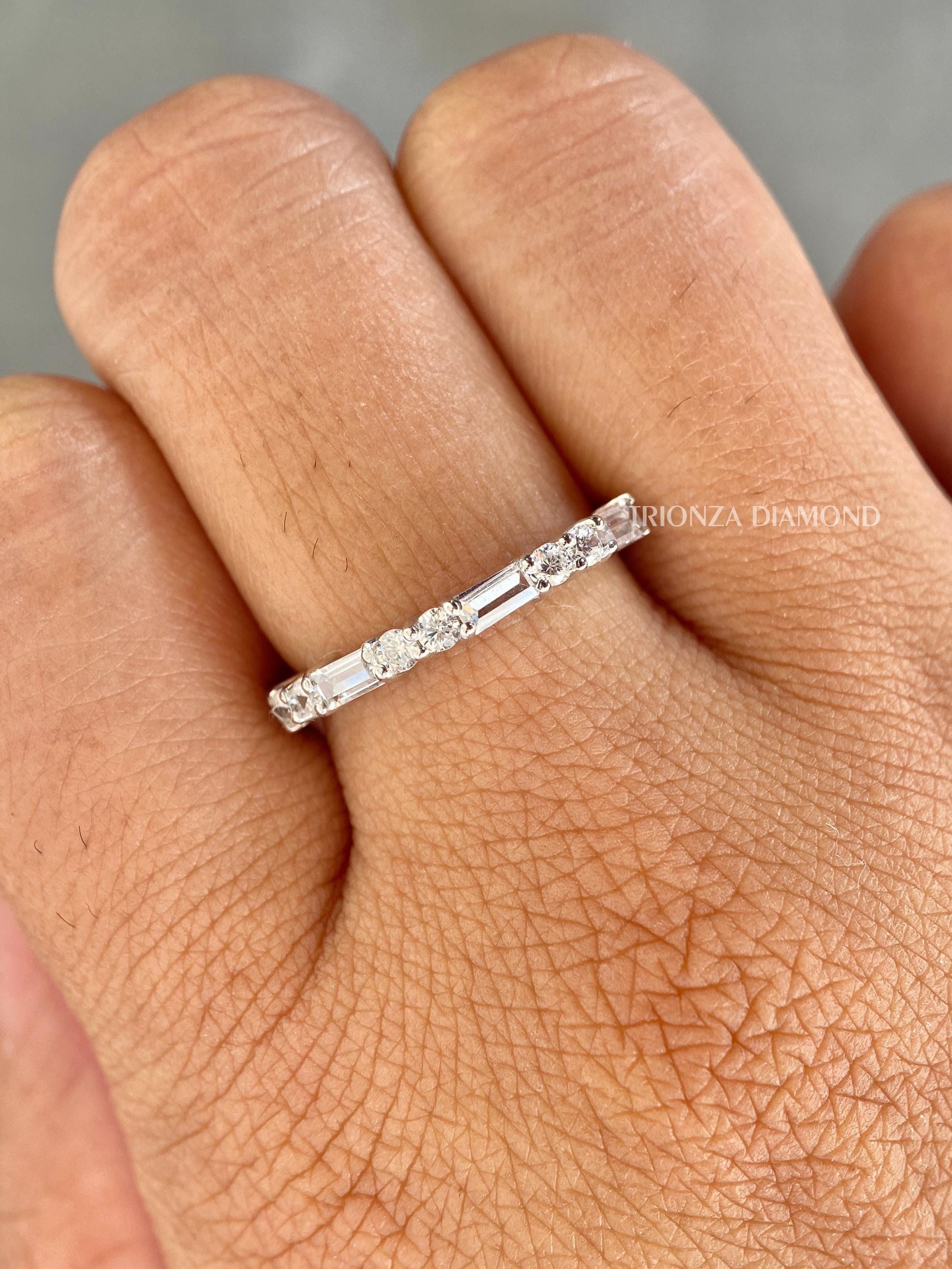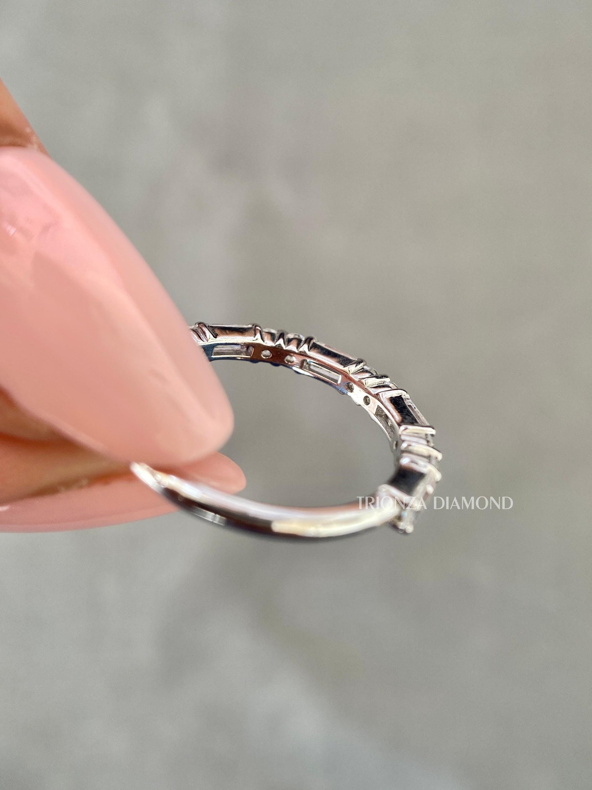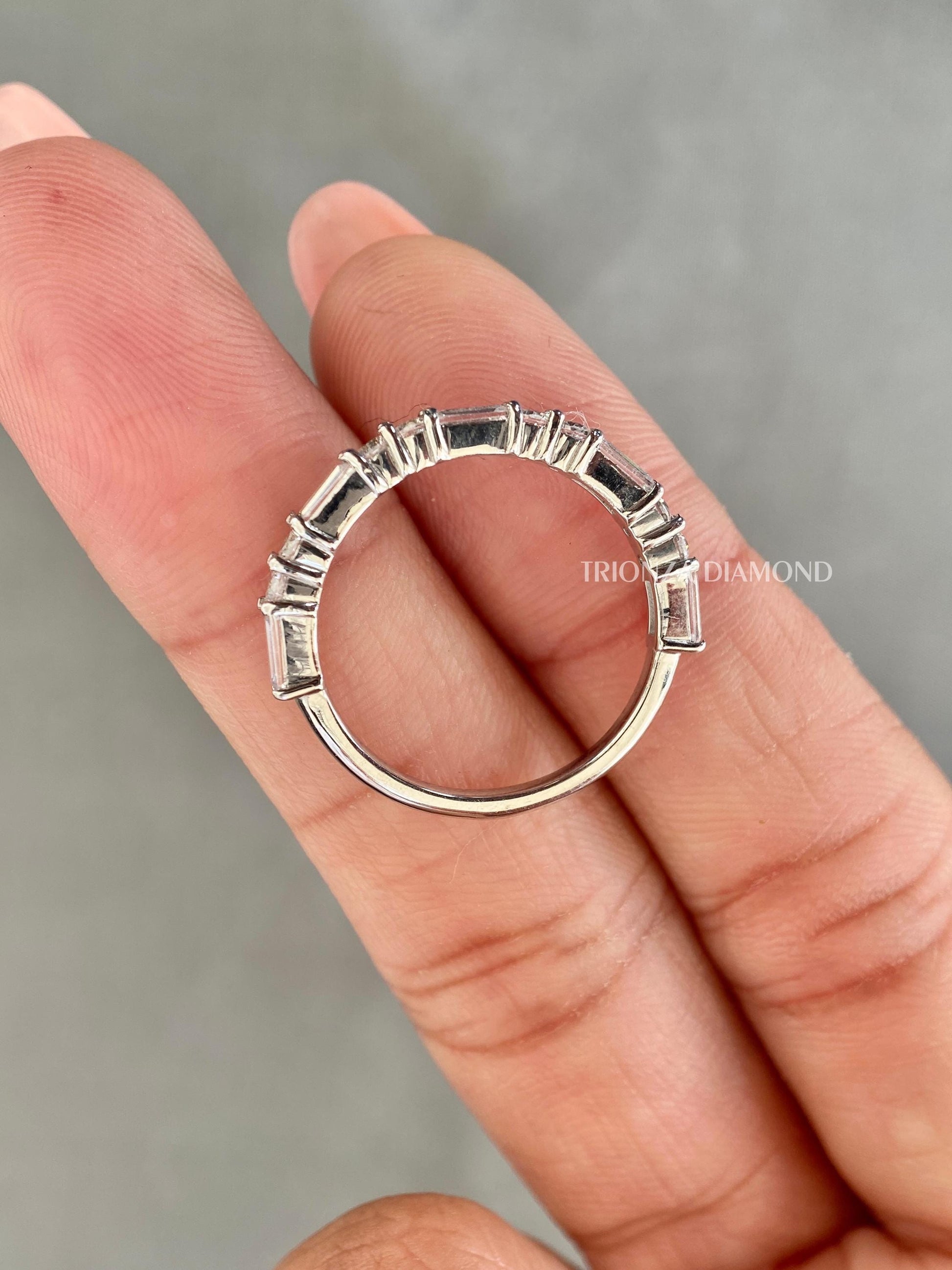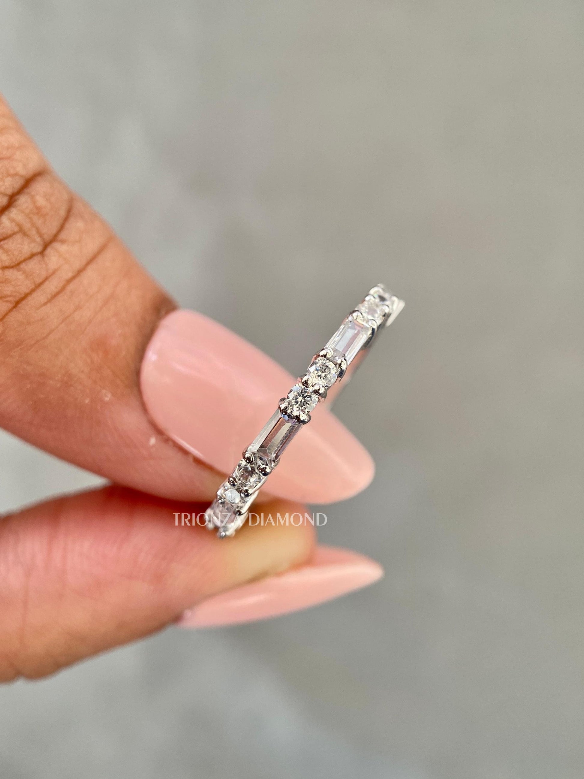 Lab Grown Diamond Half Eternity Band | Baguette Round Cut Wedding Ring