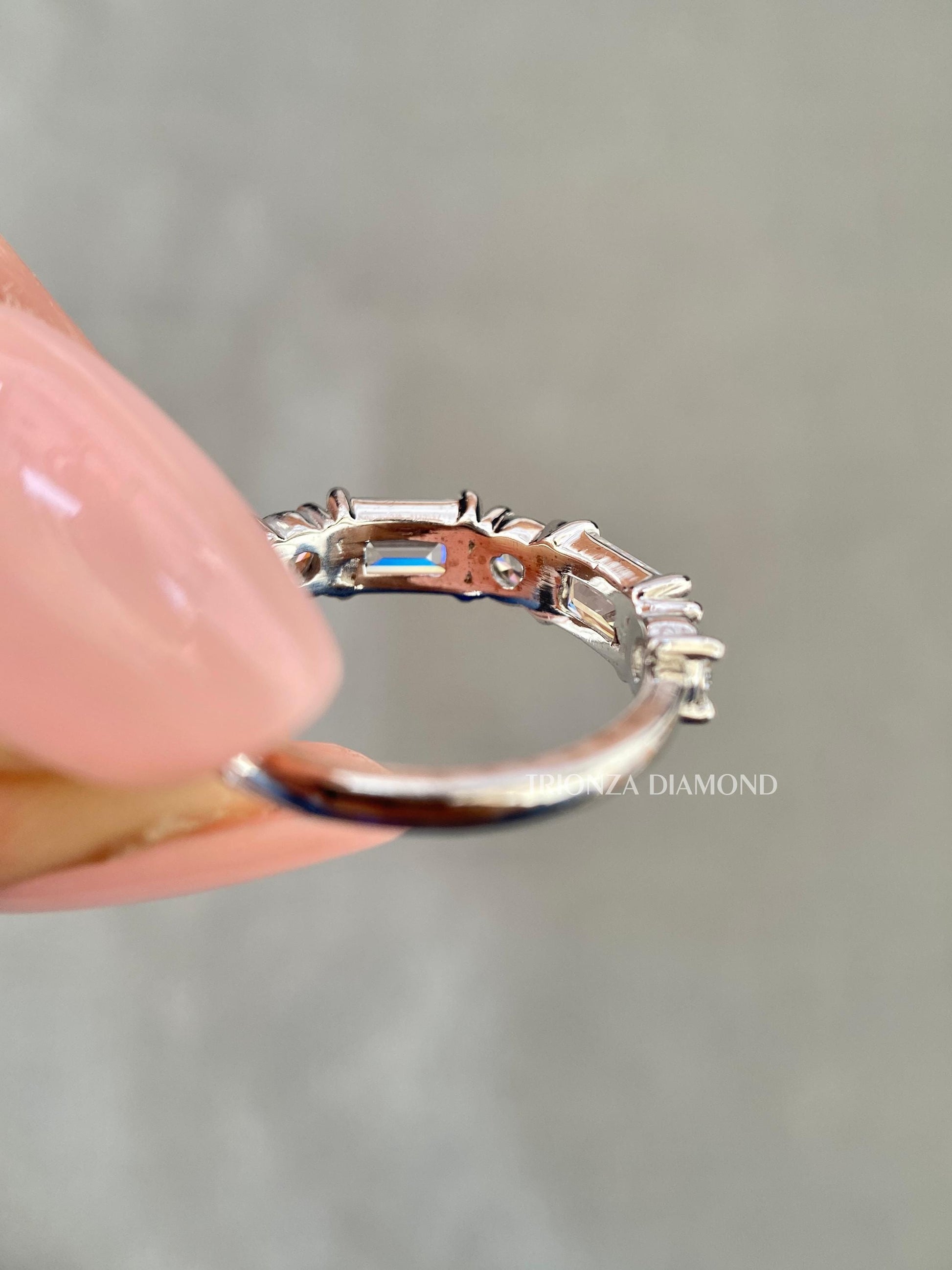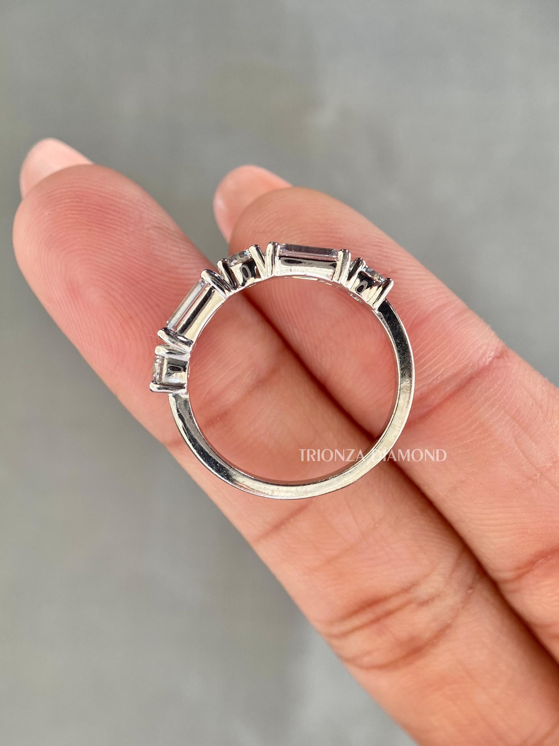 Lab Grown Emerald Cut Half Eternity Diamond Ring - Gold Stackable Band
