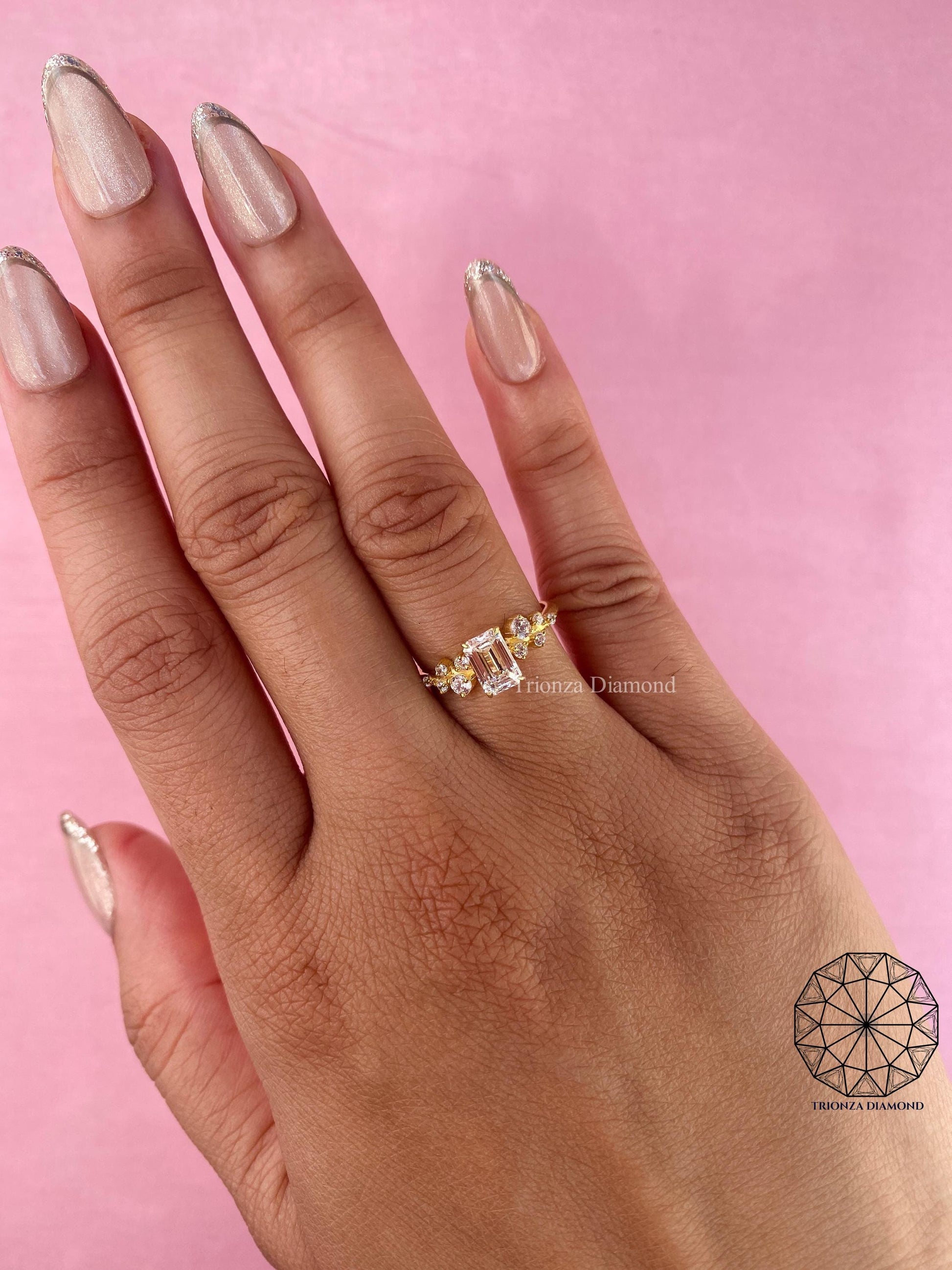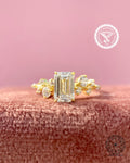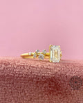 Lab Grown Emerald Diamond Engagement Ring 18k Yellow Gold Unique