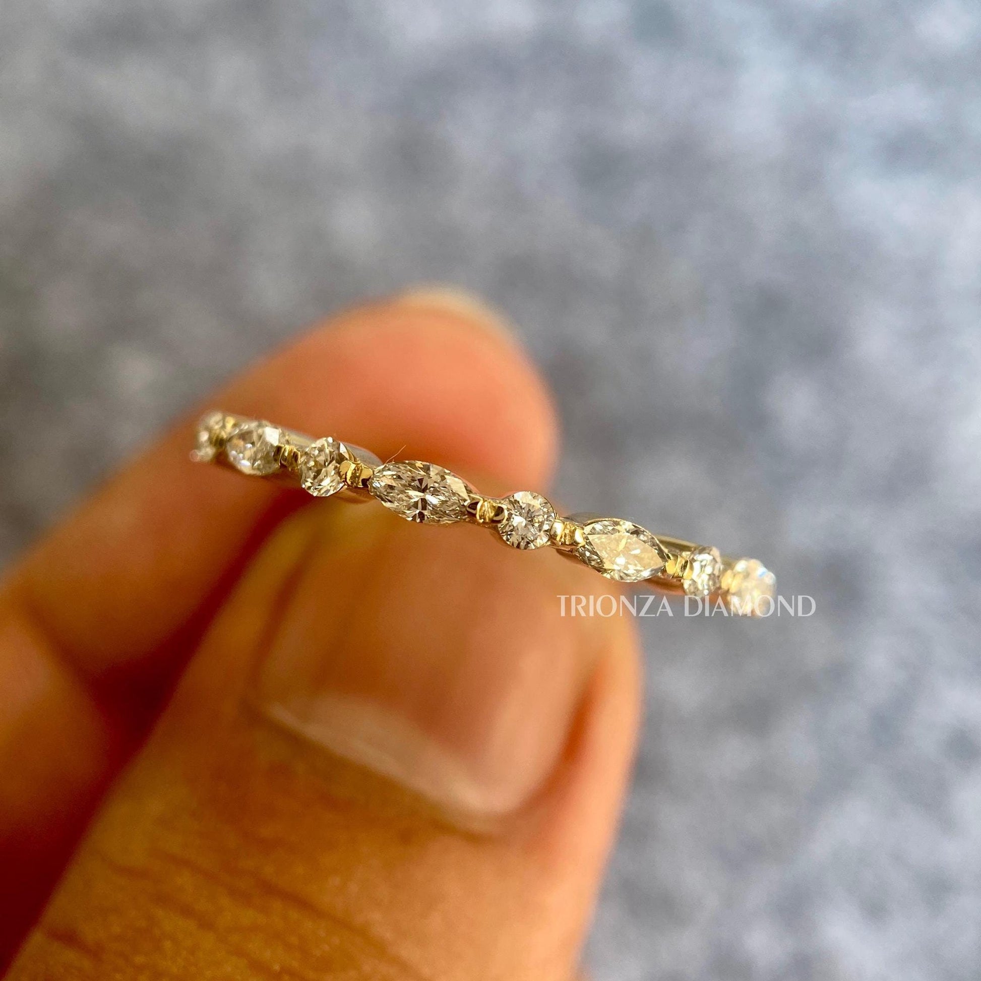Lab Grown Marquise Round Diamond Wedding Band | Stackable Eternity