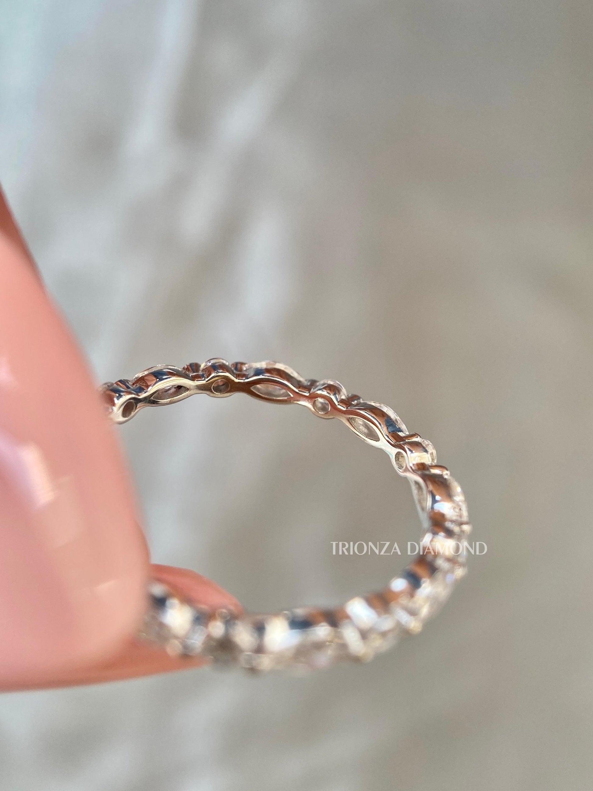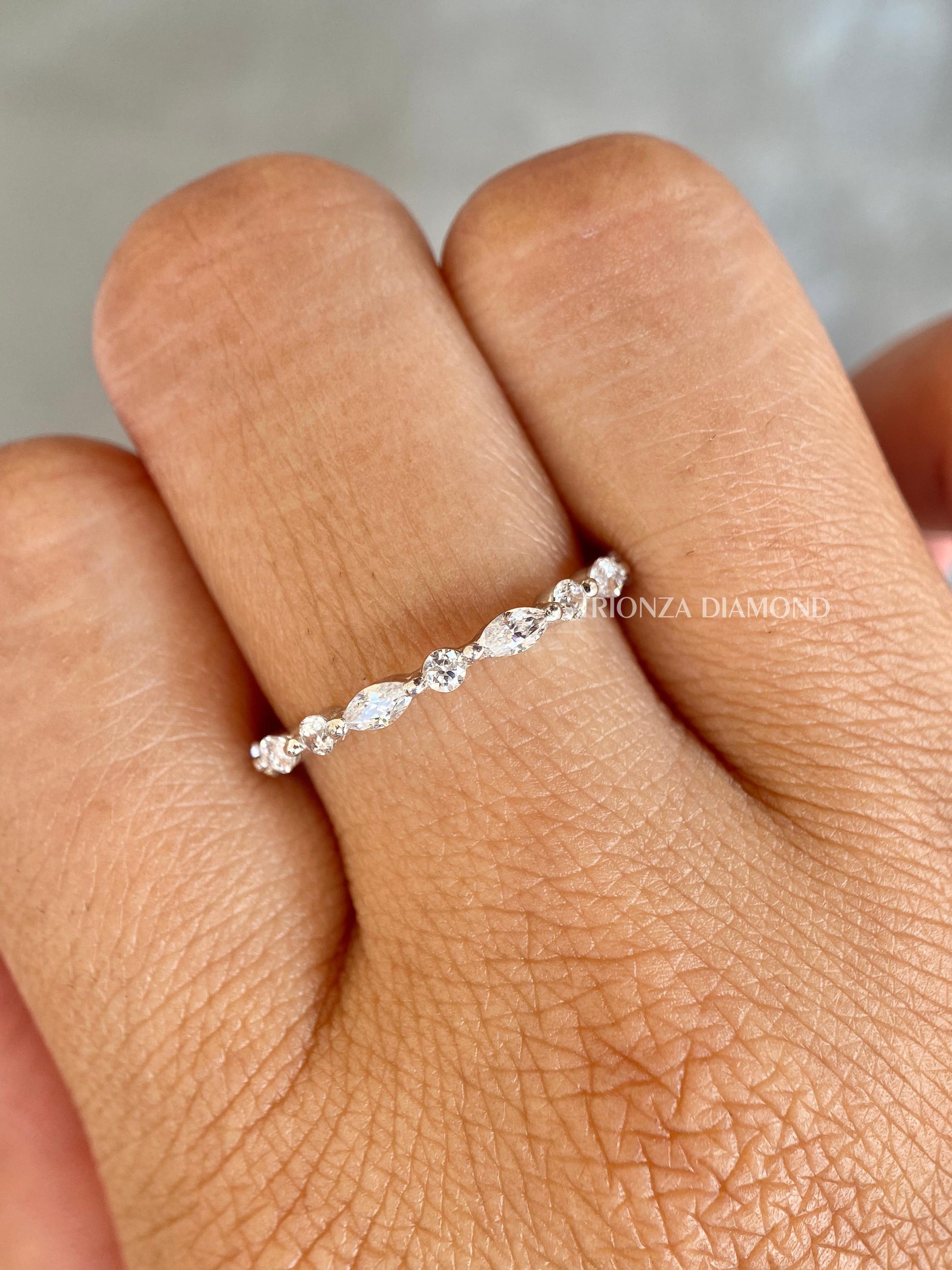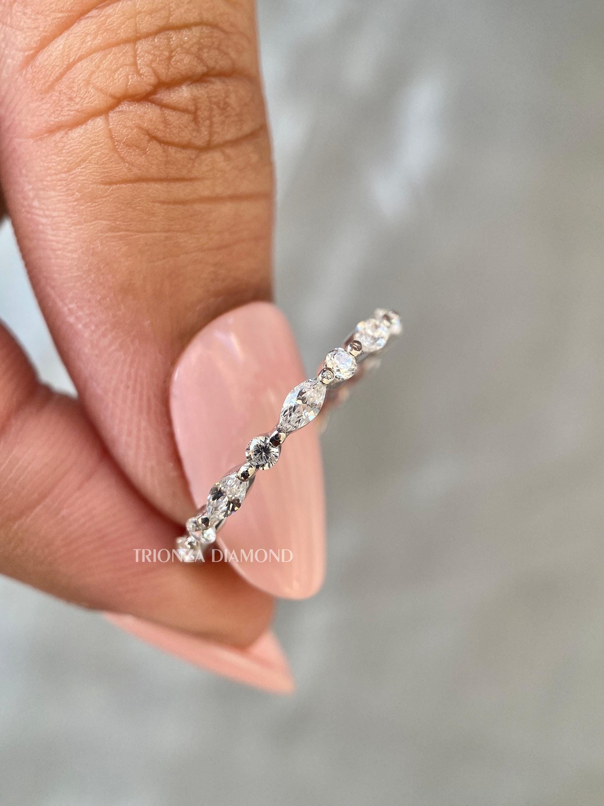 Lab Grown Marquise & Round Eternity Wedding Band - Stackable 2MM
