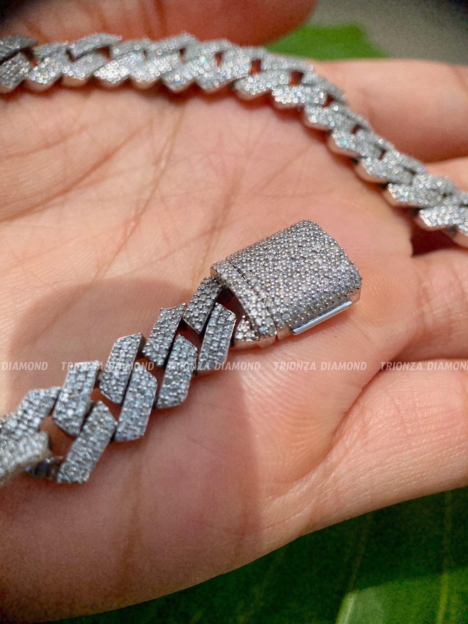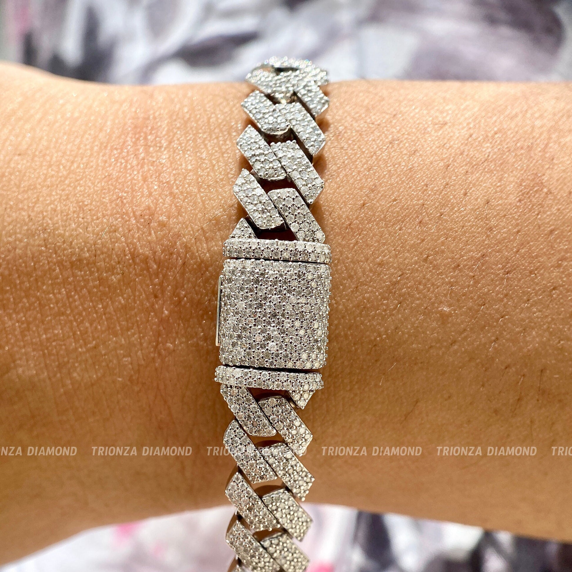Discover our Men's Iced Out Natural Diamond Cuban Link Bracelet. This stunning hip-hop bling jewelry features F/G color natural diamonds set in 925 Sterling Silver, meticulously handcrafted by TRIONZADIAMOND.