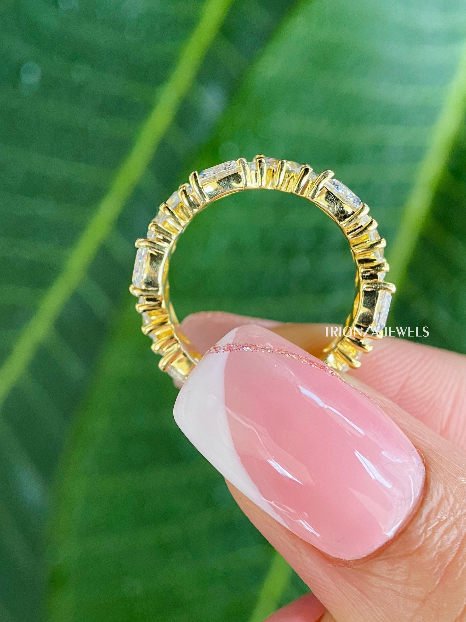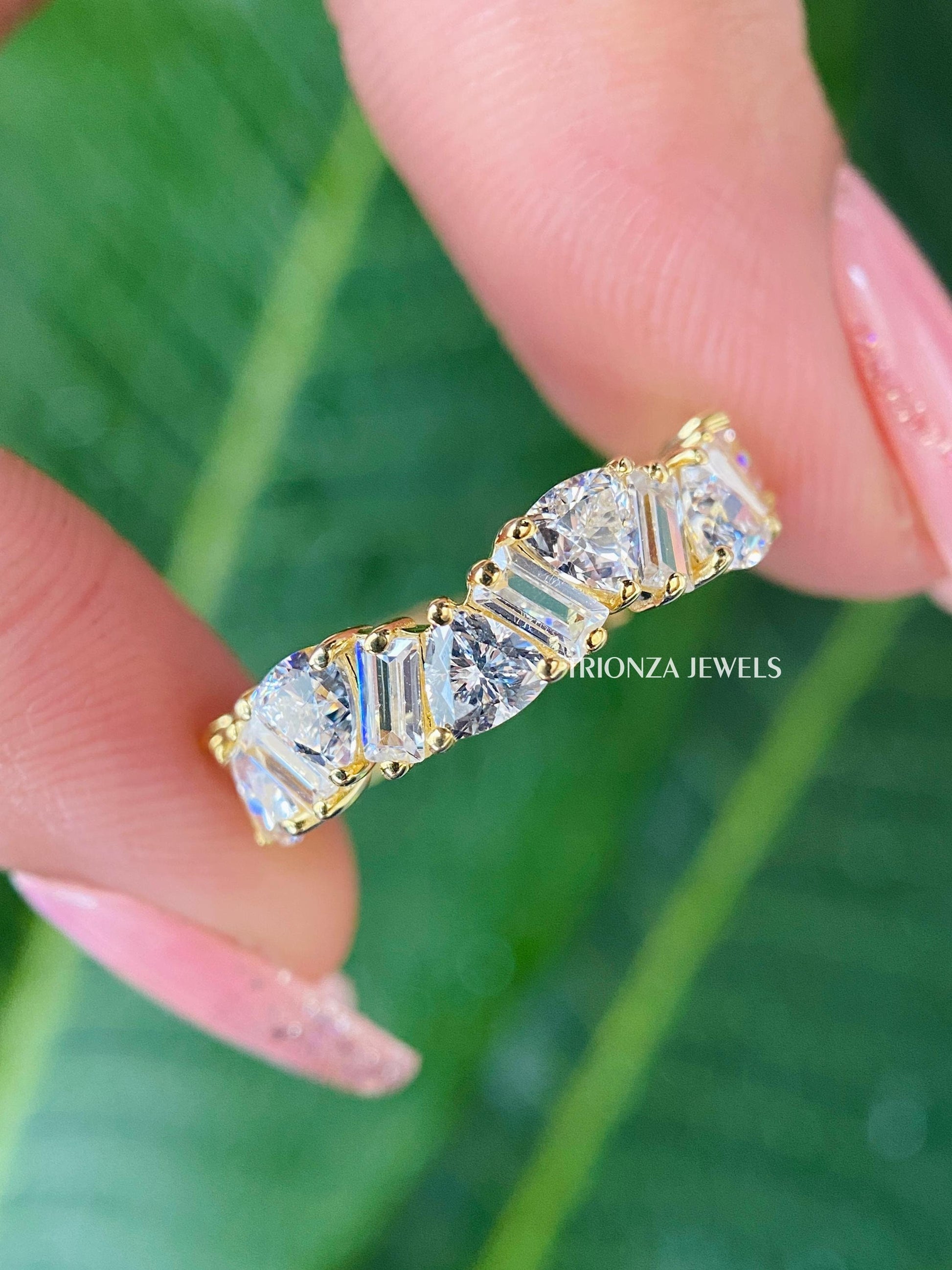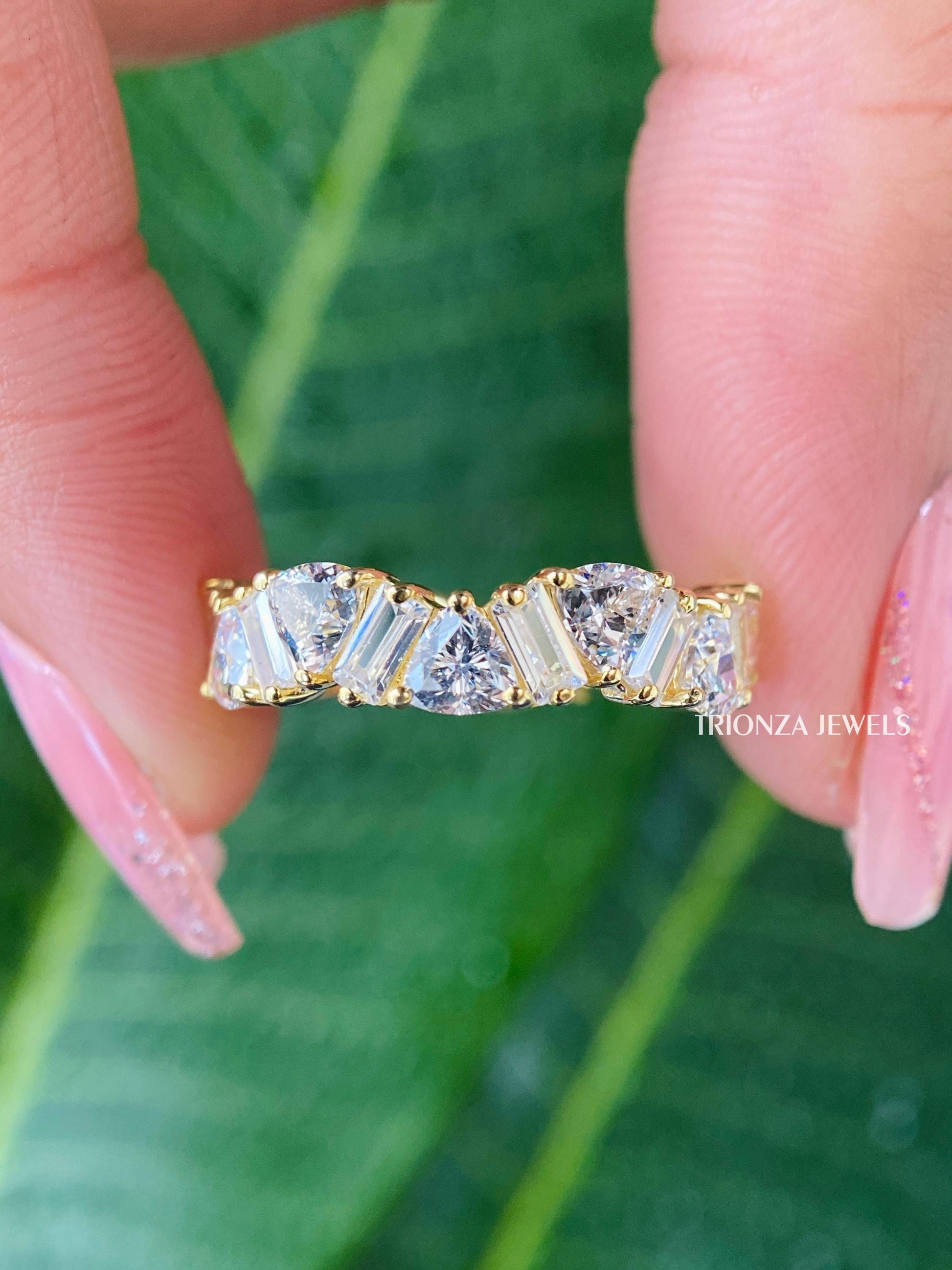 Moissanite Eternity Wedding Band for Women - Trillion & Baguette Cut
