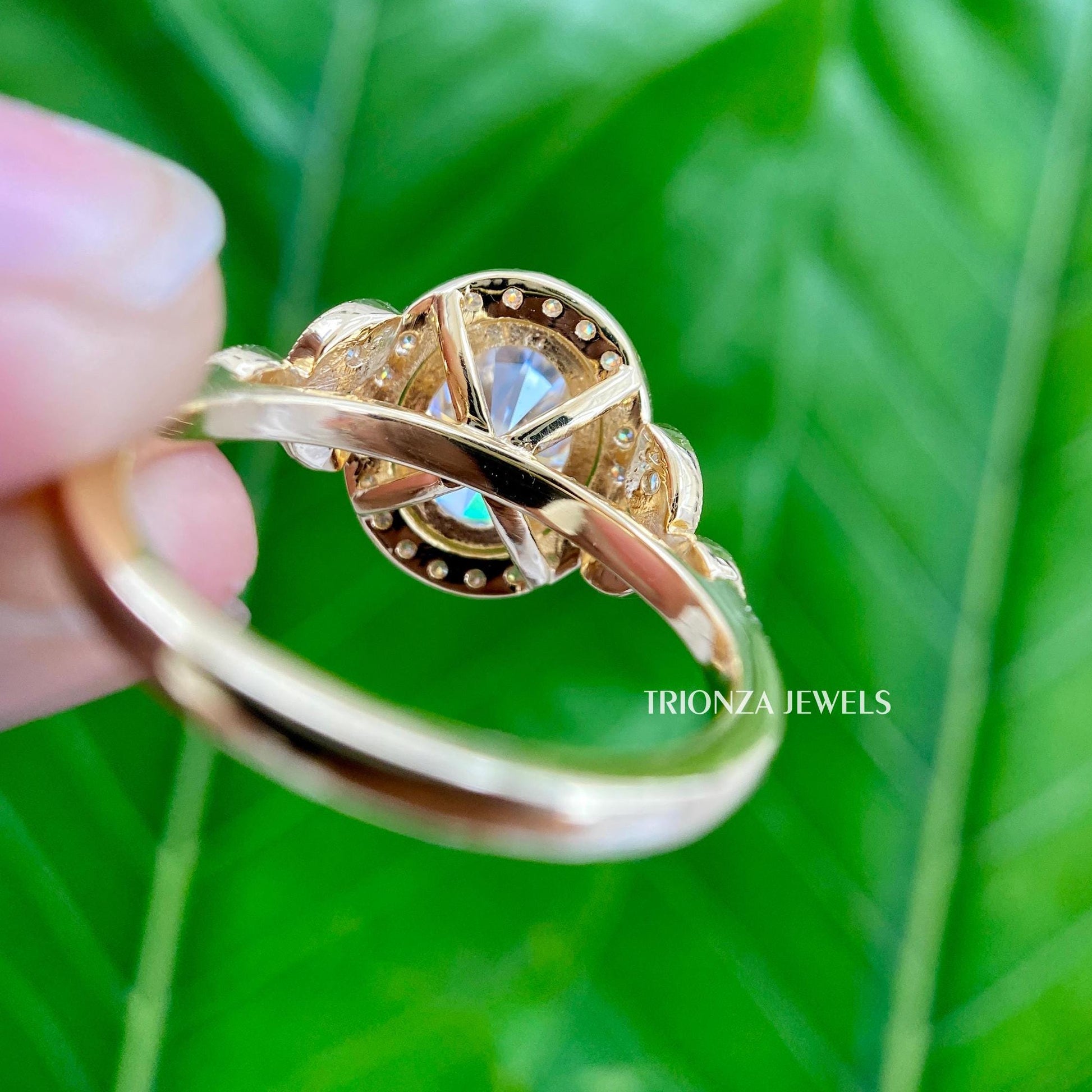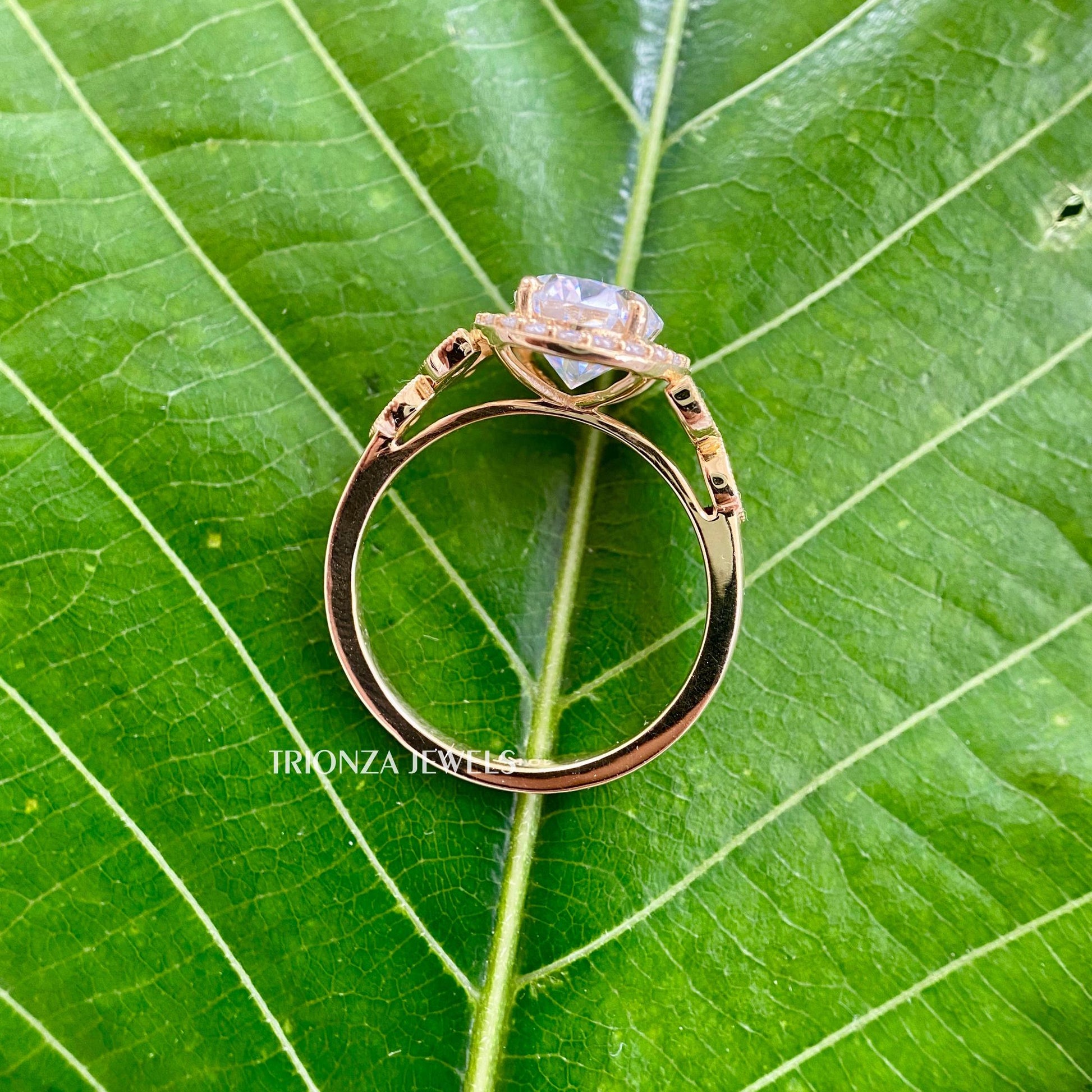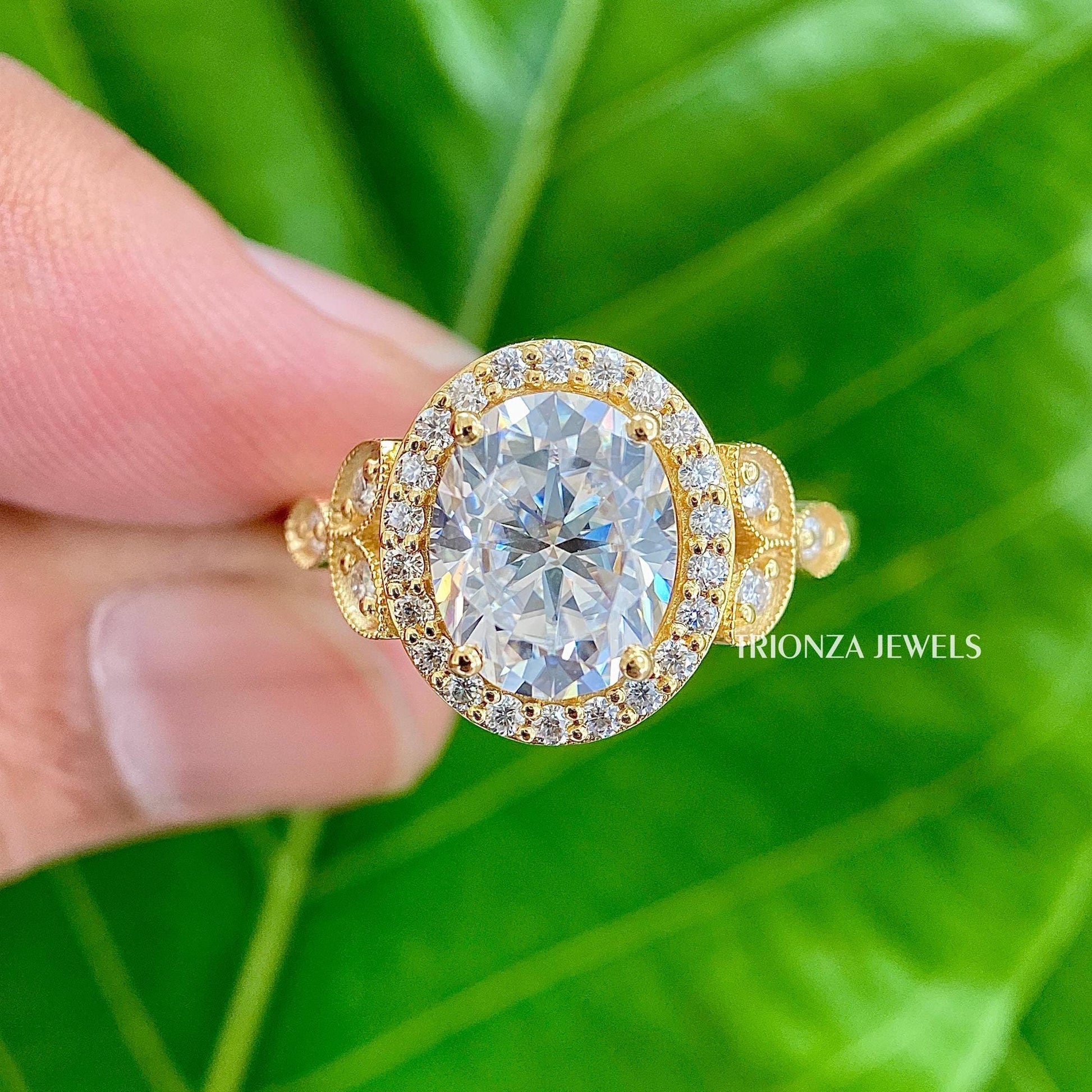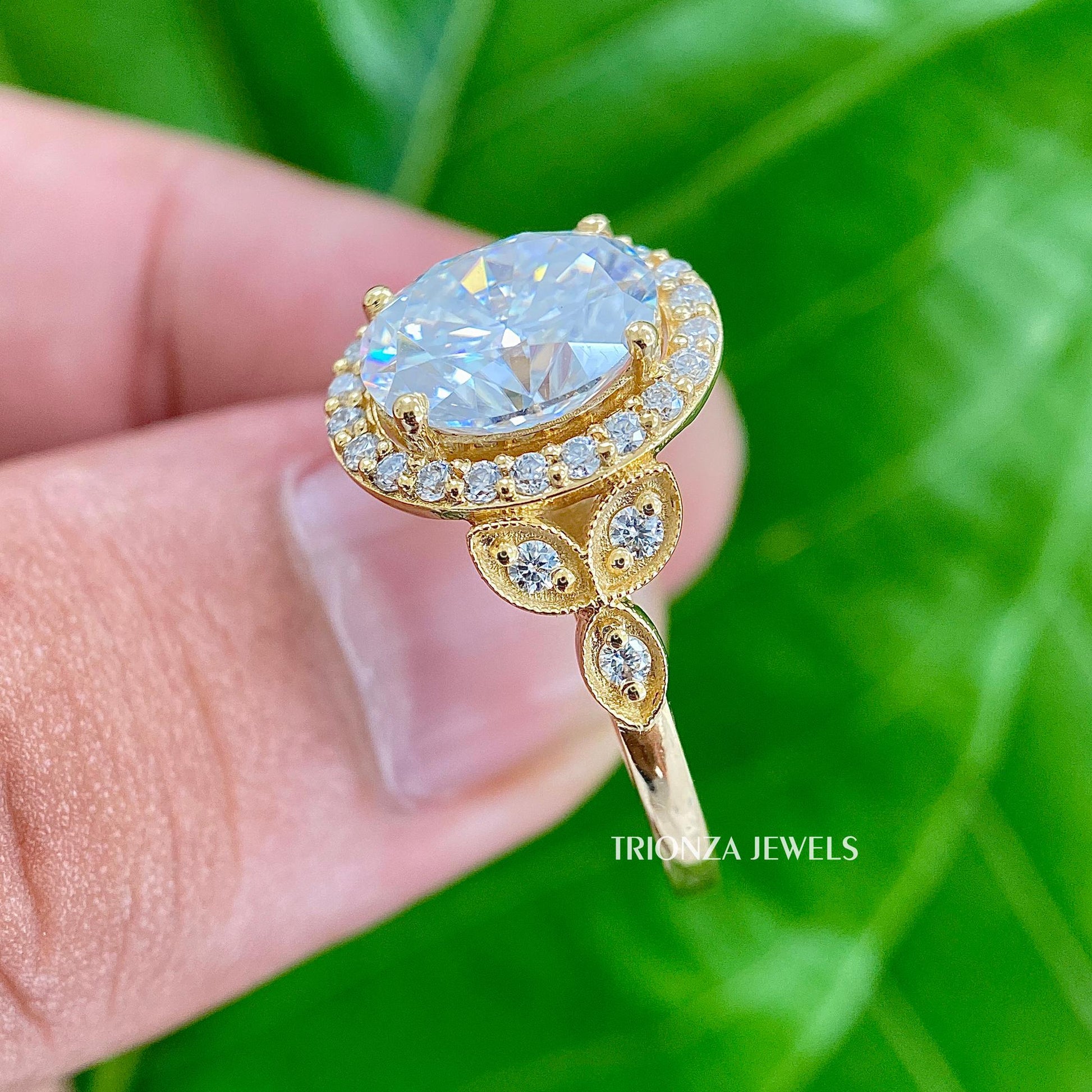 This exquisite Oval 3 CT Moissanite Engagement Ring features a unique floral design in solid 14K White Gold. Perfect as a wedding, art deco, promise, or anniversary ring for women. We specialize in handmade, fine, moissanite, and customized jewelry for her.