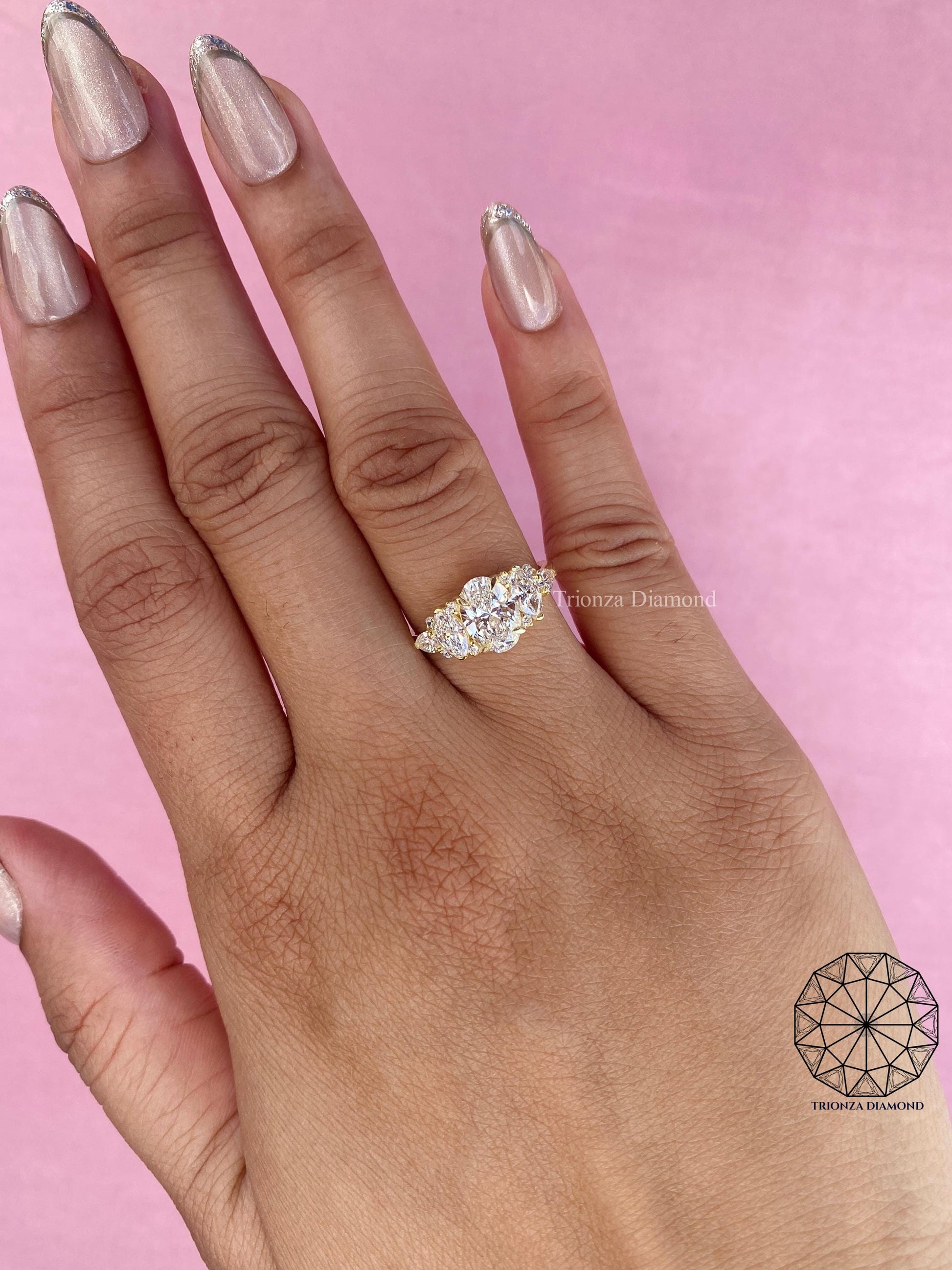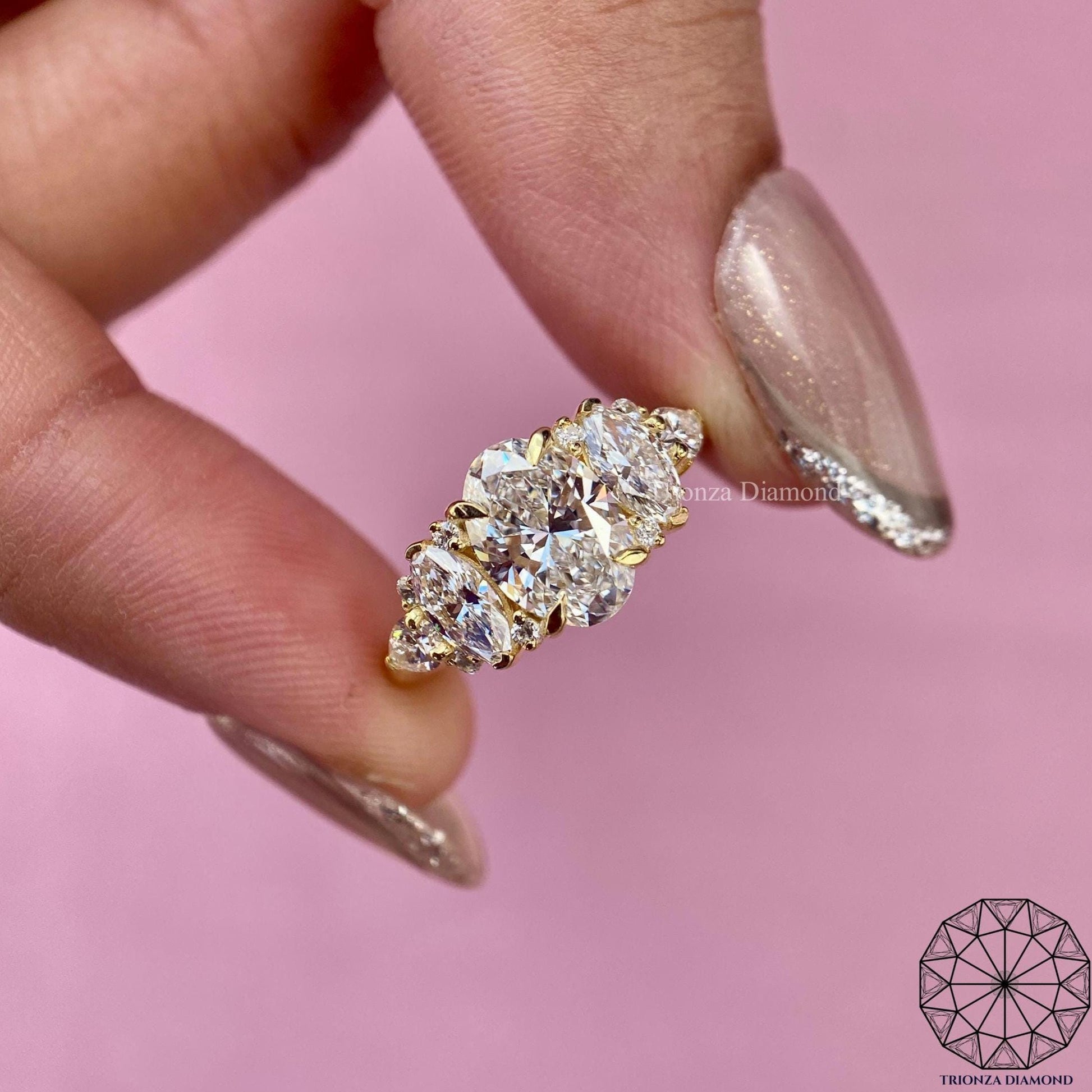 Oval Cluster Lab Grown Diamond Engagement Ring 14k Gold 2 TCW