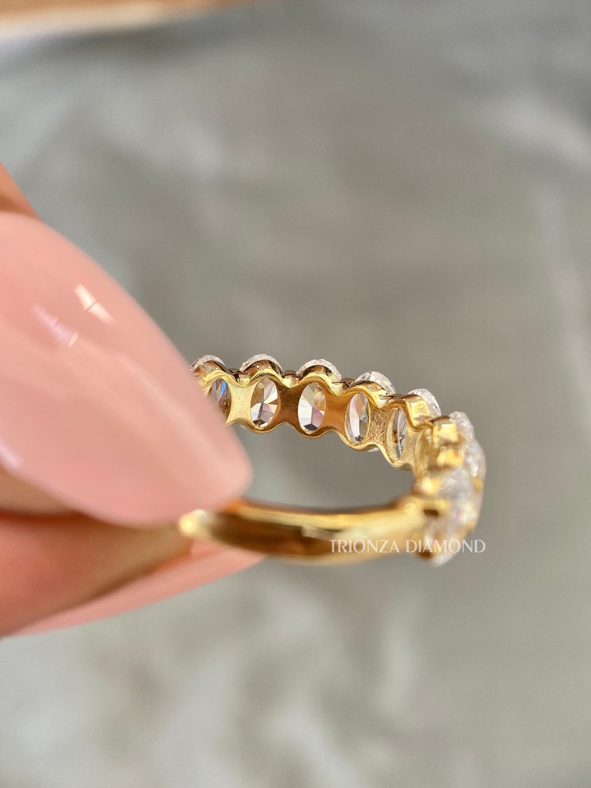 Expertly crafted in gold, this beautiful ring showcases sparkling oval lab-grown diamonds, available with 5, 7, or 9 stones. Ideal for stacking or wearing alone, it’s a perfect engagement, wedding, or anniversary ring for cherished moments. Our CVD conflict-free diamonds offer exceptional brilliance and ethical sourcing.