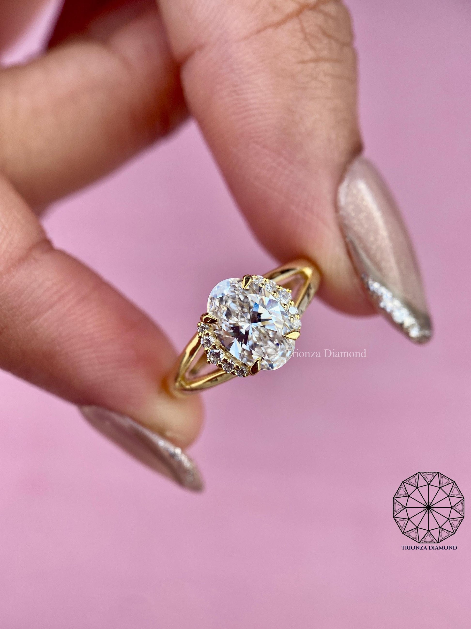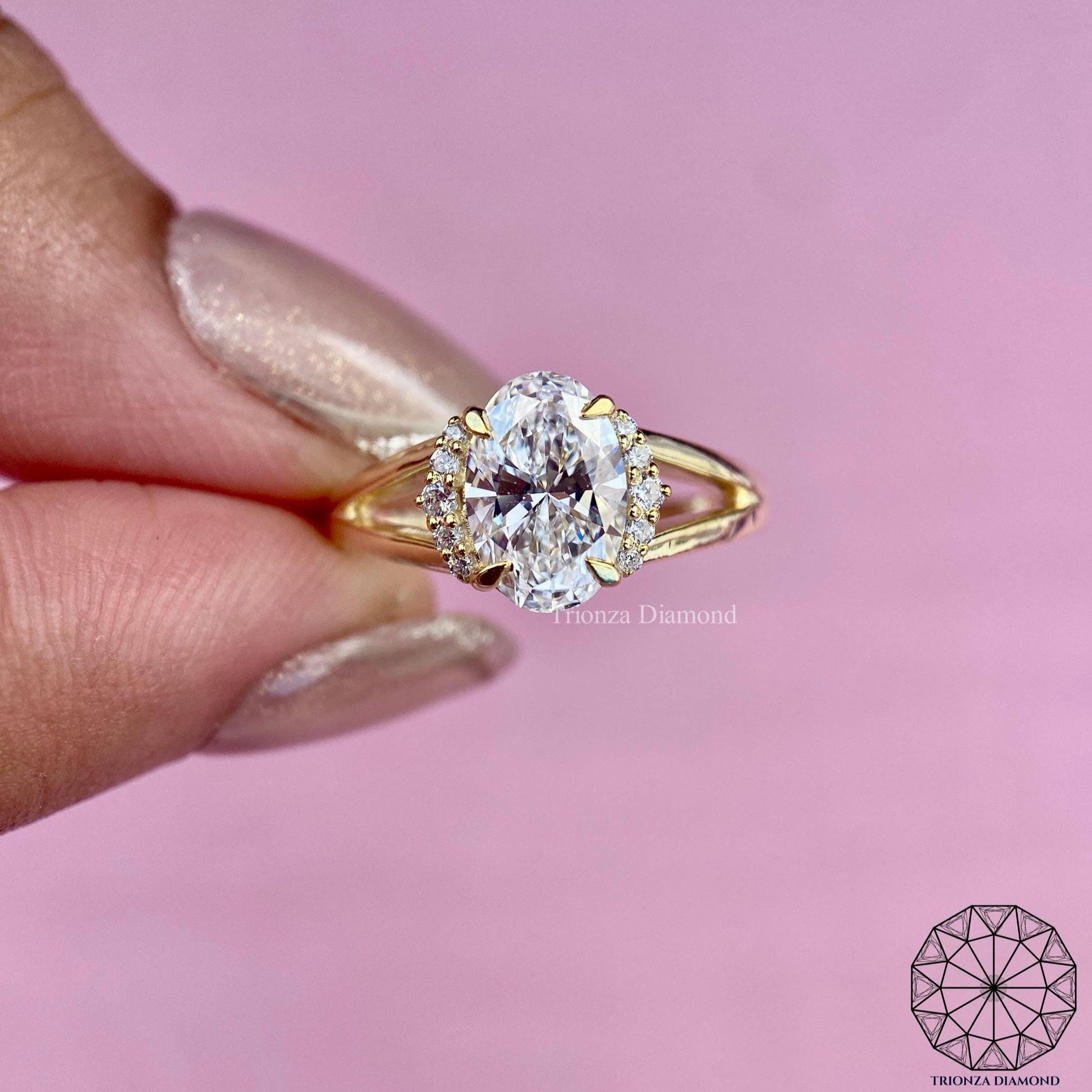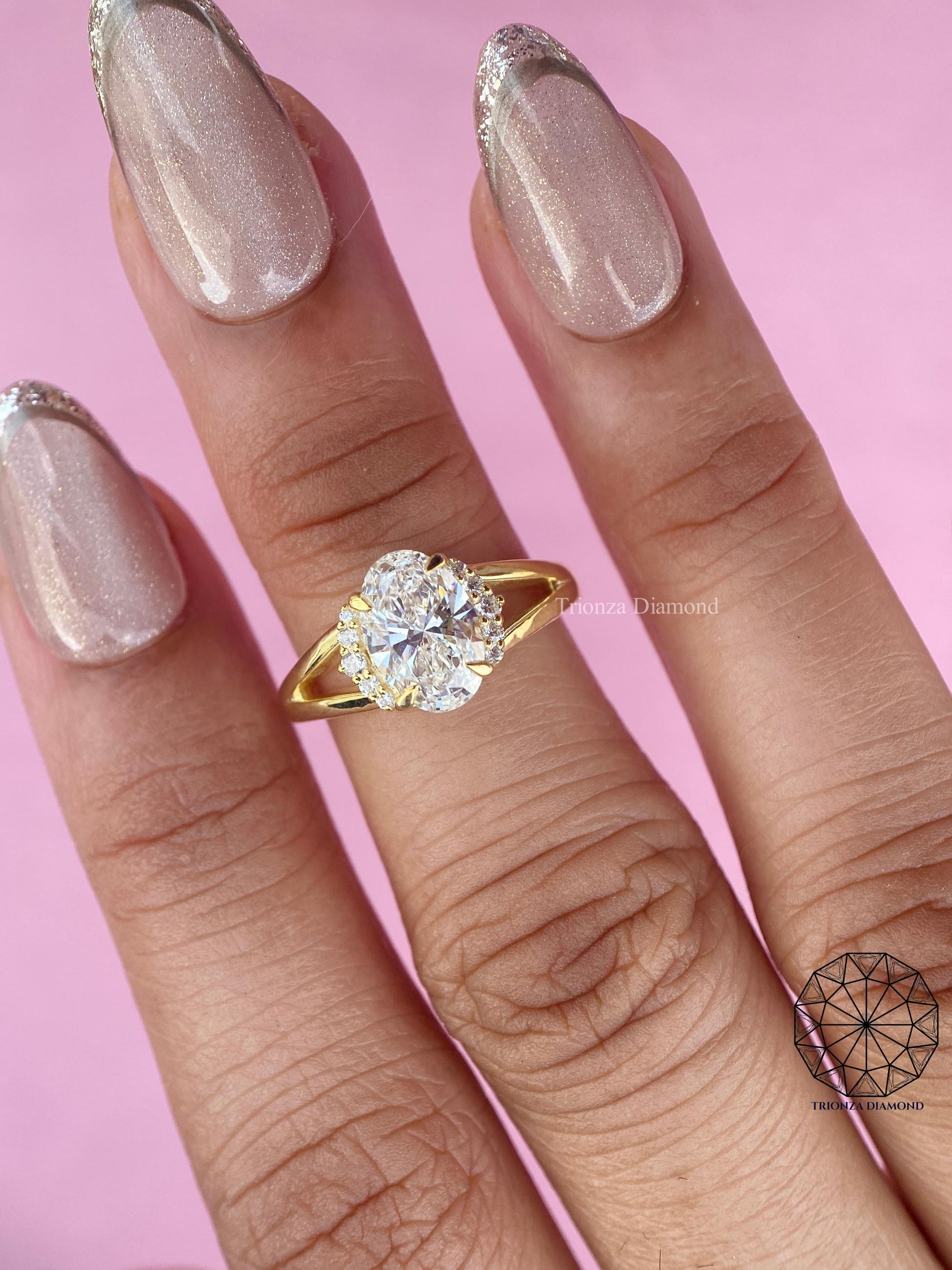 Oval Lab Grown Diamond Split Shank Engagement Ring 14k Gold