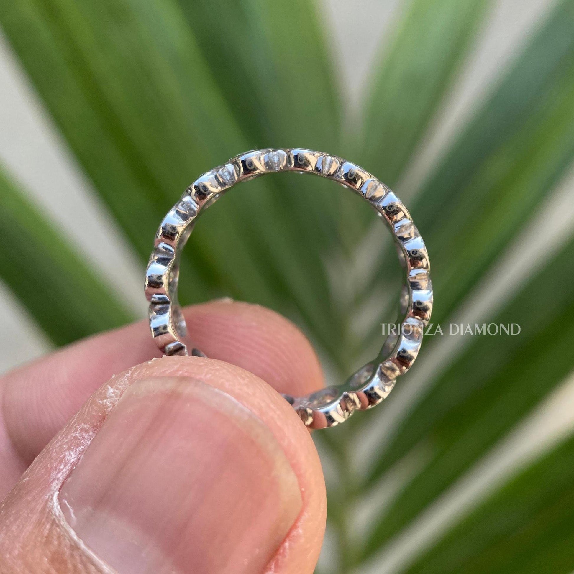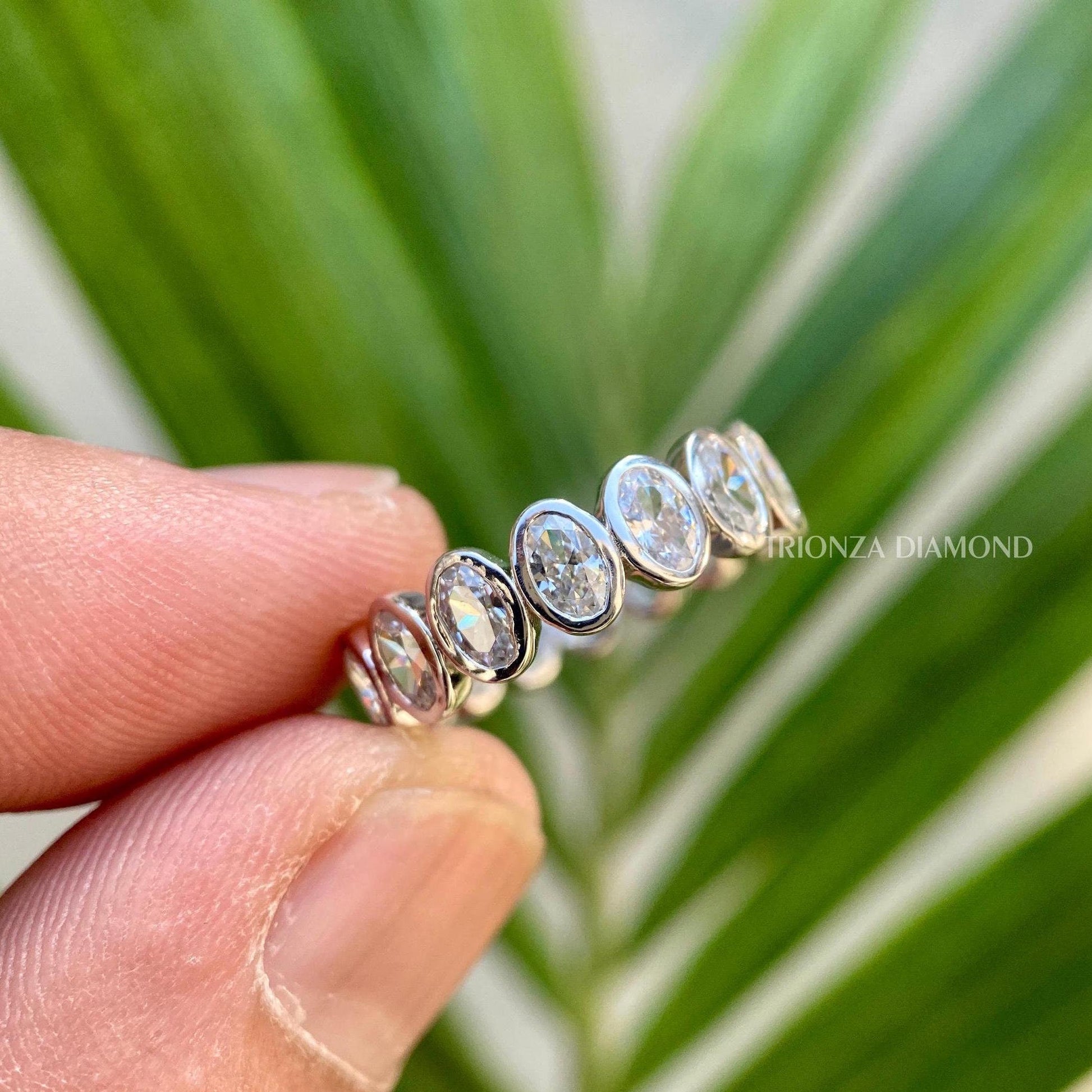 Discover our exquisite Full Eternity Stacking Band, featuring a stunning Bezel Set Oval Cut Moissanite. This minimalist yet unique gold wedding band for her is perfect for anniversaries, engagements, or as a thoughtful gift.