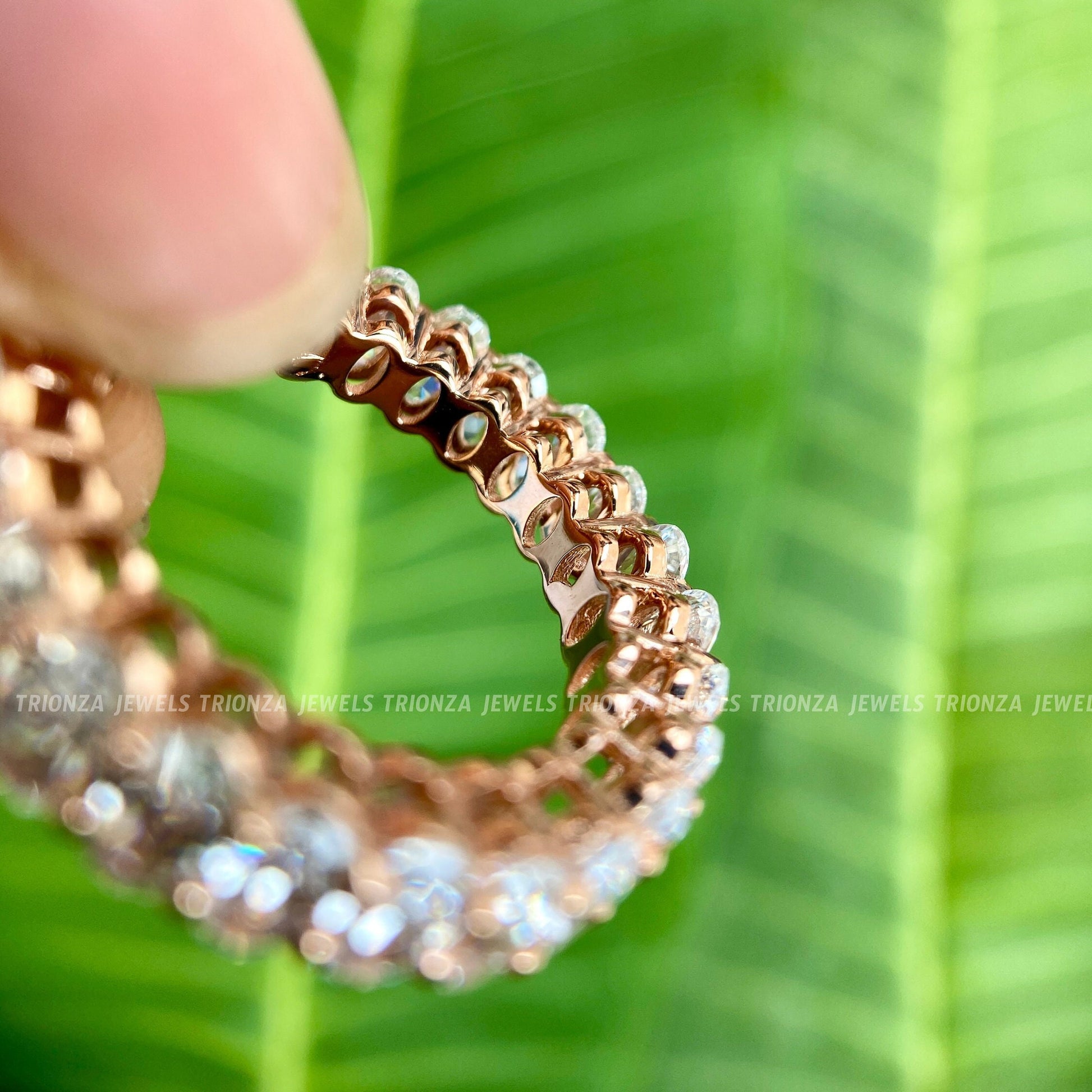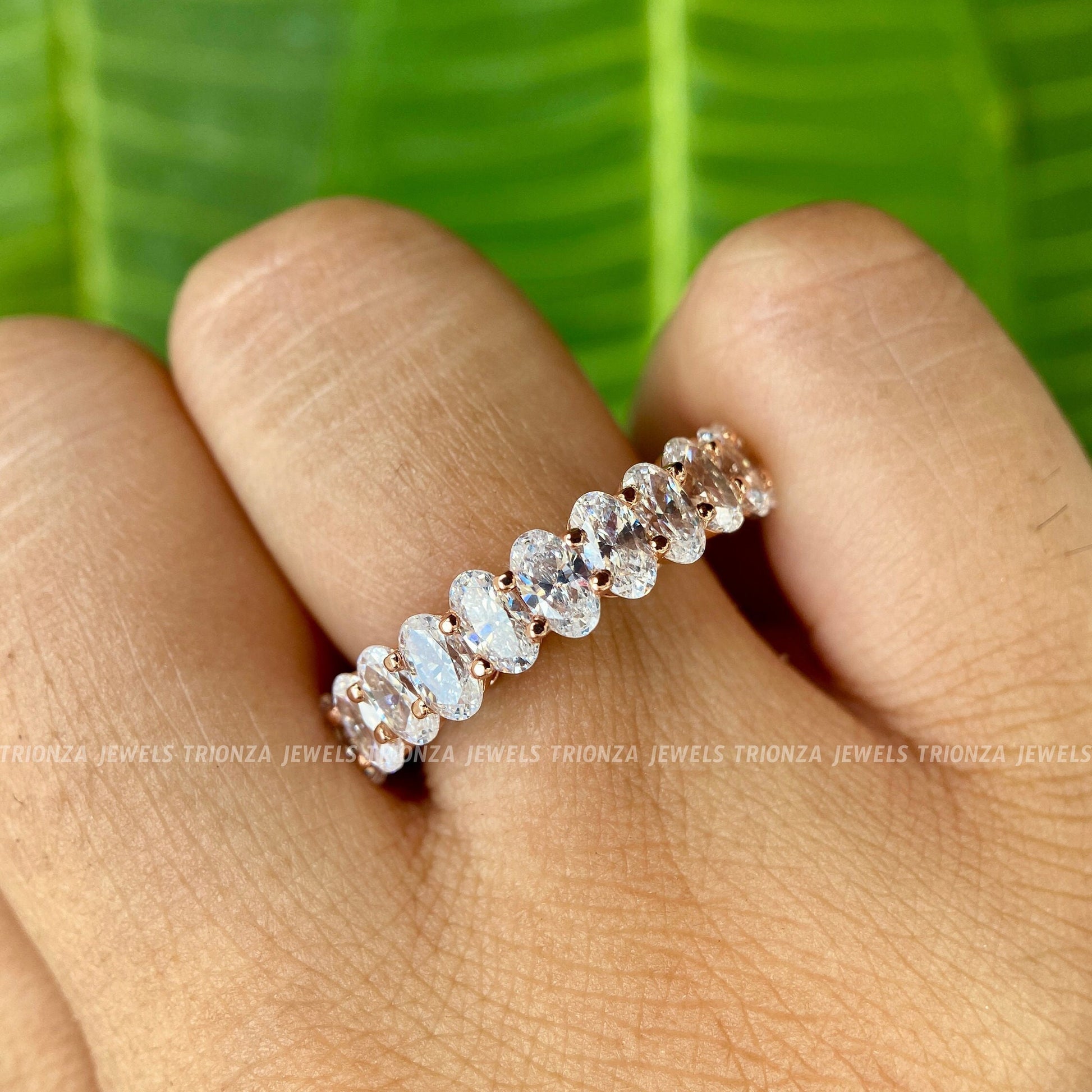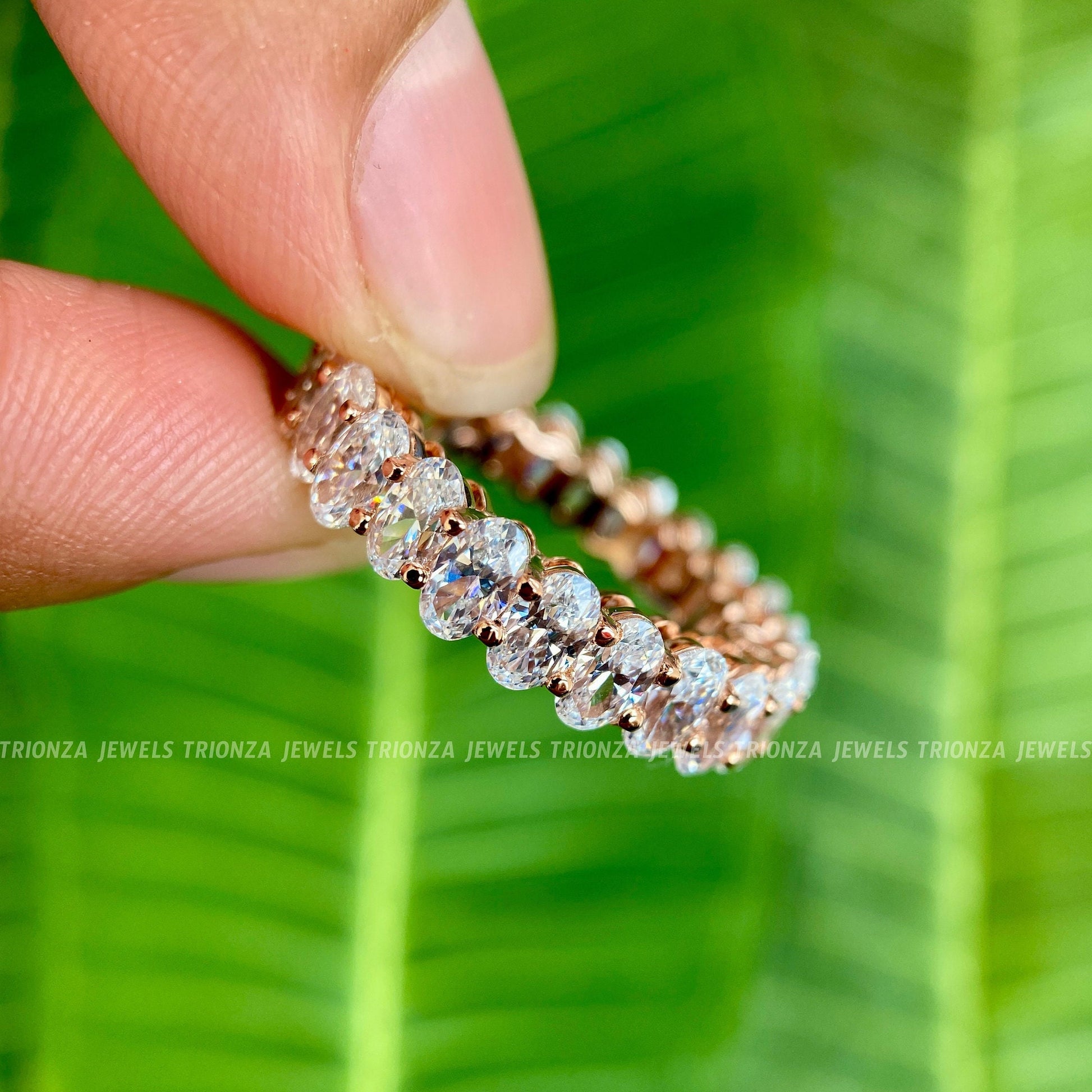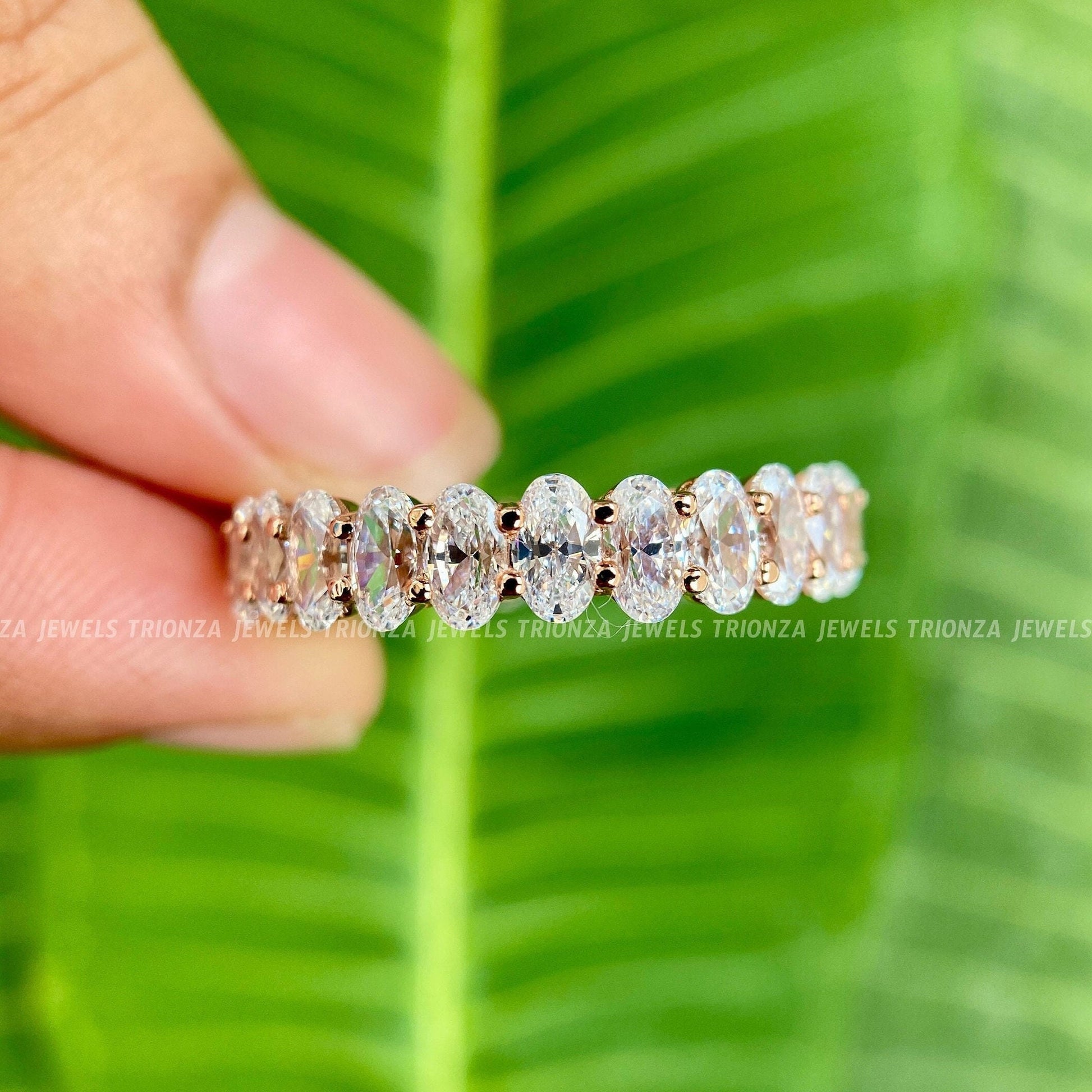 Celebrate your love with our stunning Full-Eternity Oval Moissanite Wedding Band. This elegant ring features brilliant oval-cut moissanite stones, perfect for stacking, as a bridal band, or a meaningful engagement ring gift.