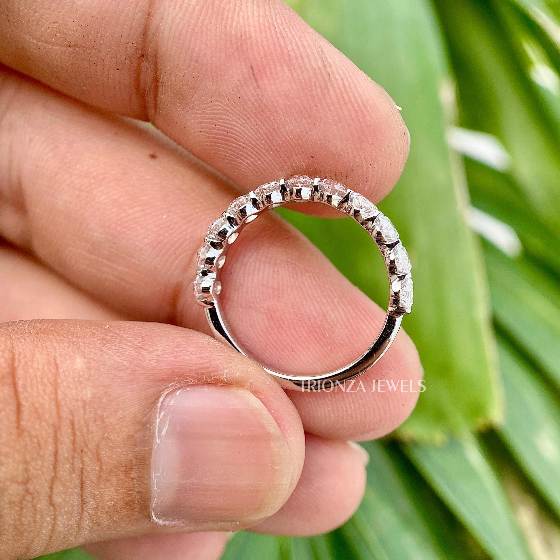 Oval Moissanite Half Eternity Band - 10K/14K/18K Gold Wedding Ring