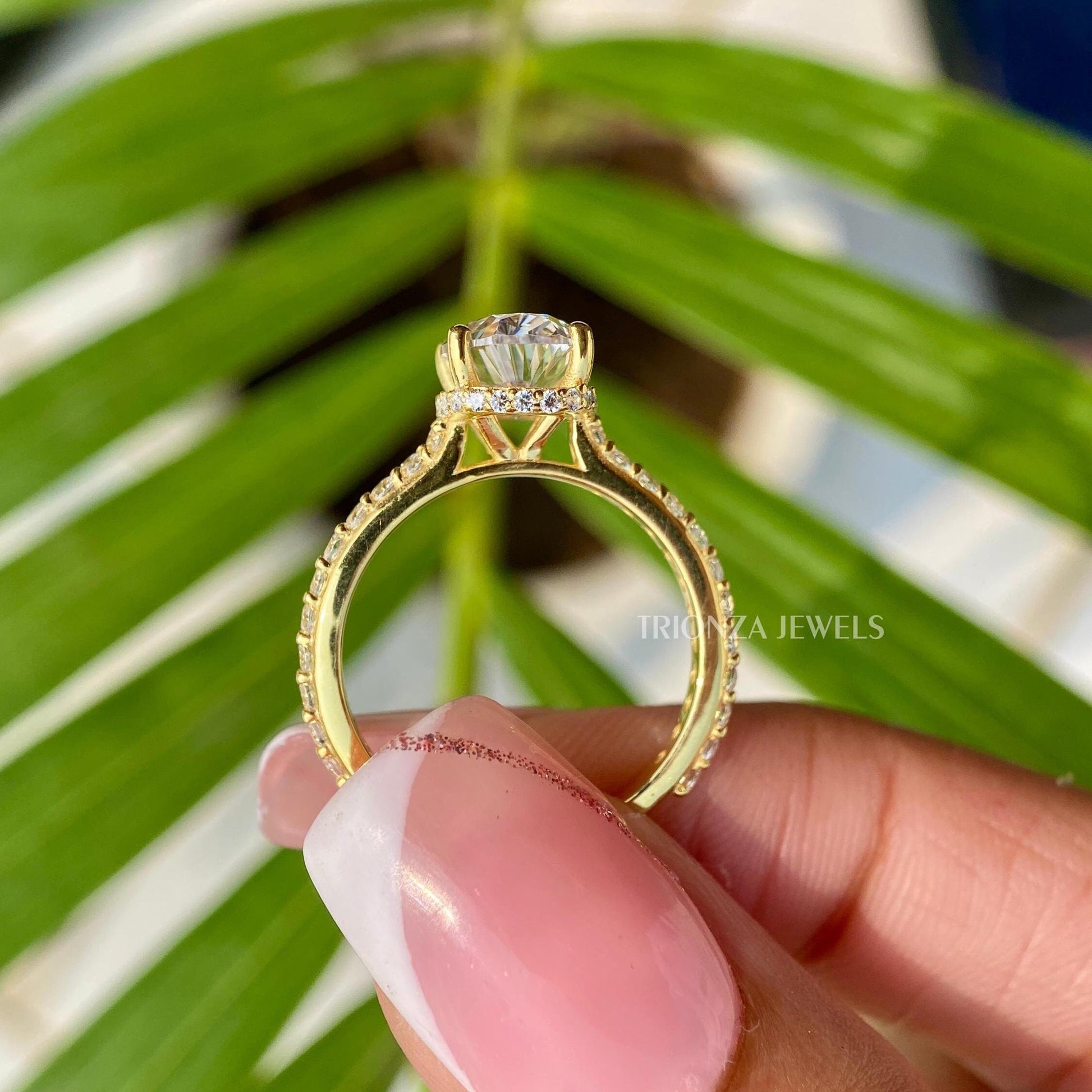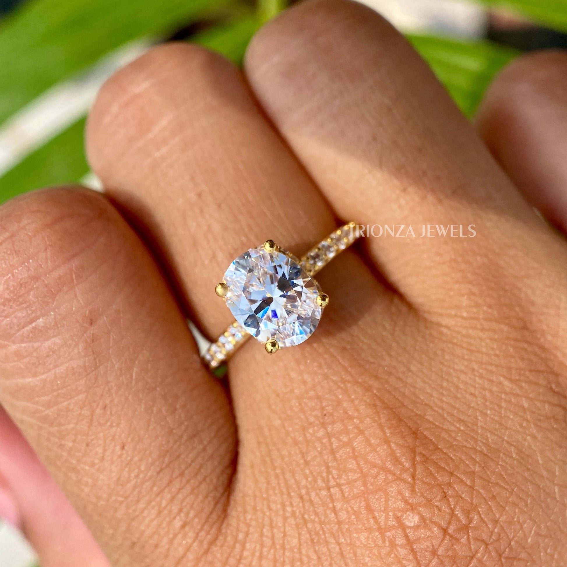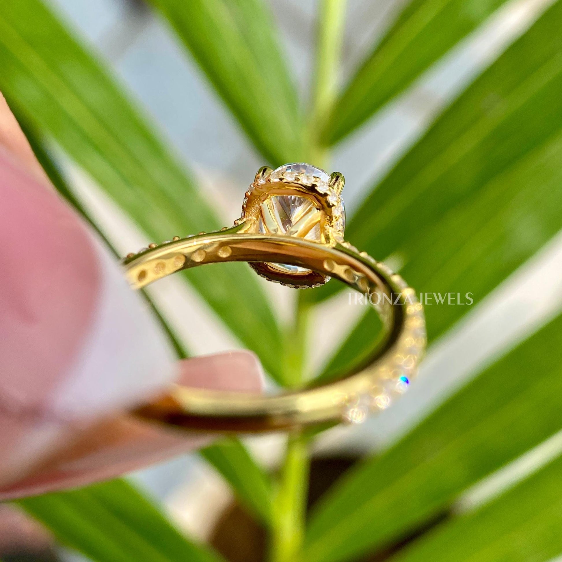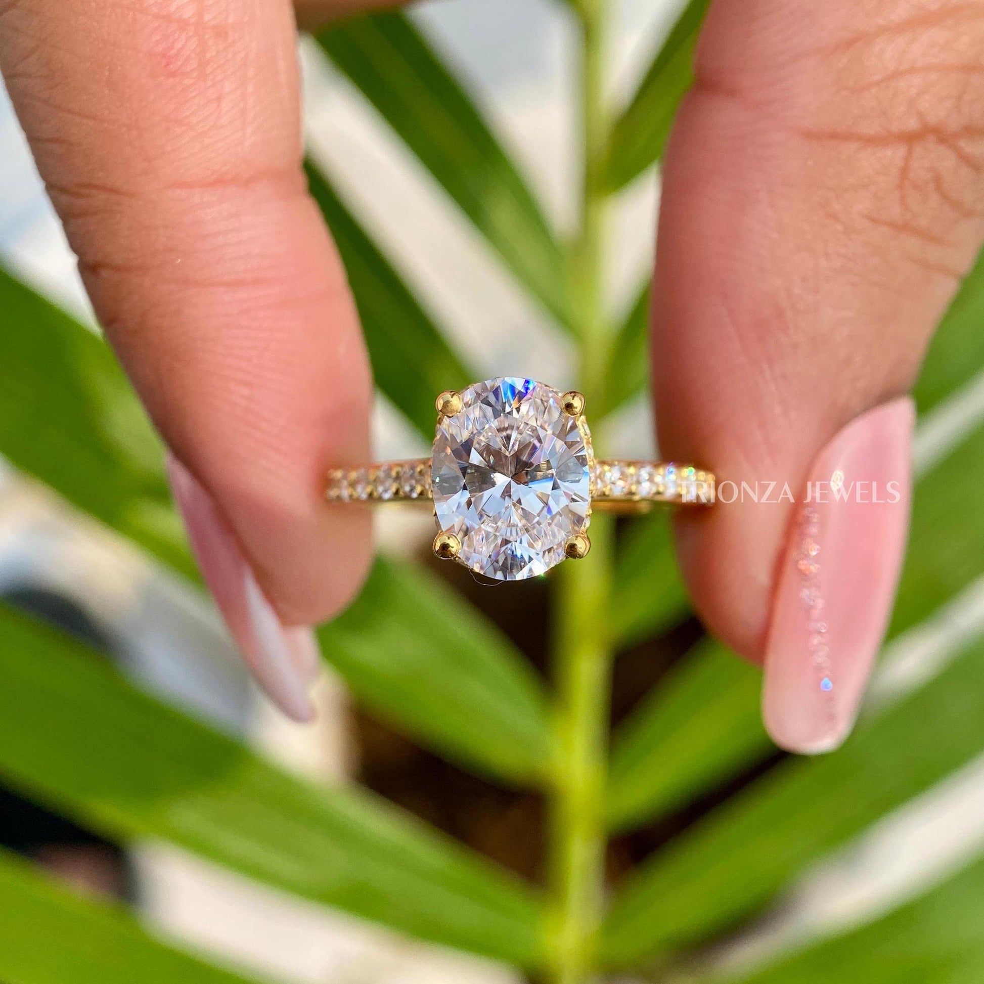 Oval Moissanite Halo Pave Eternity Engagement Ring for Her
