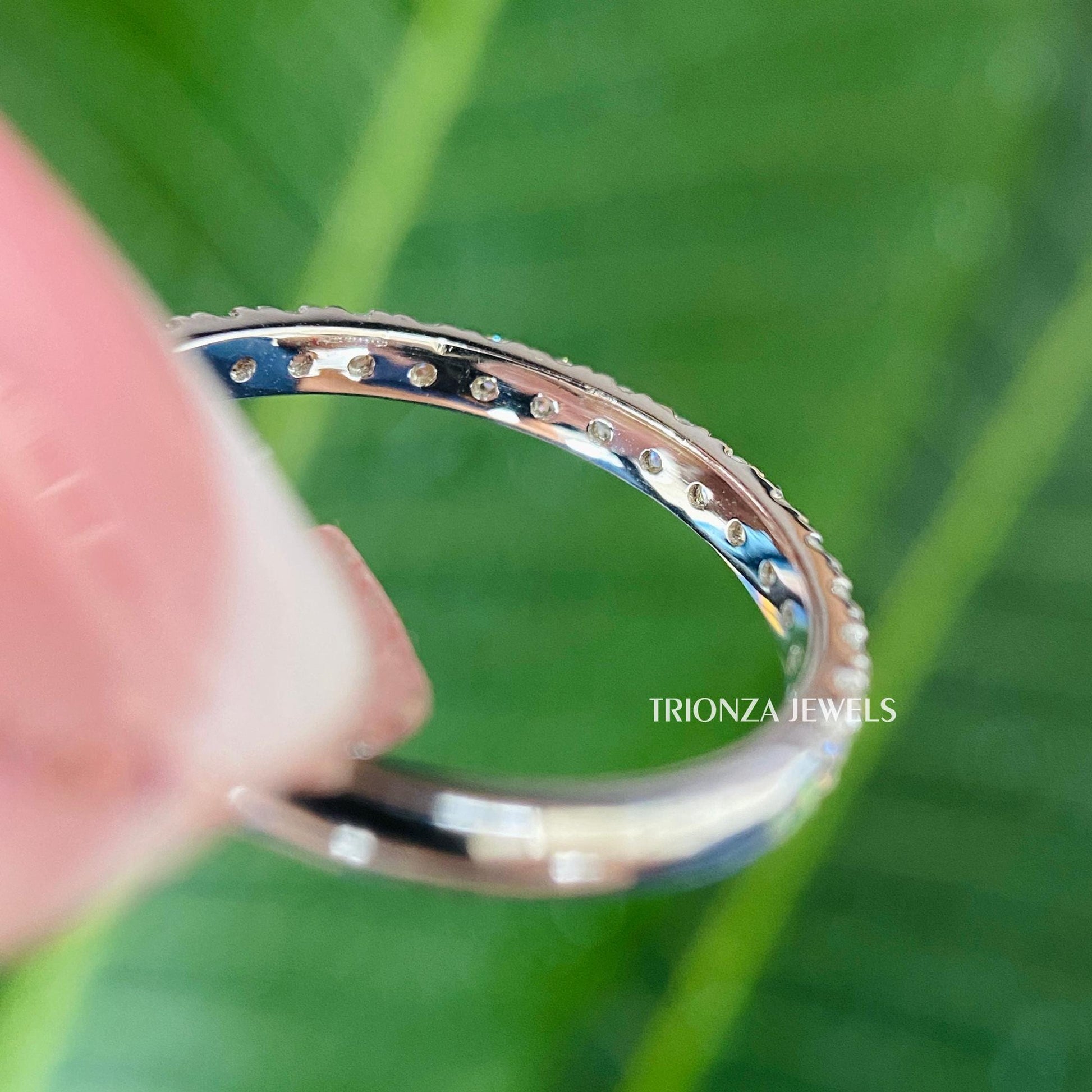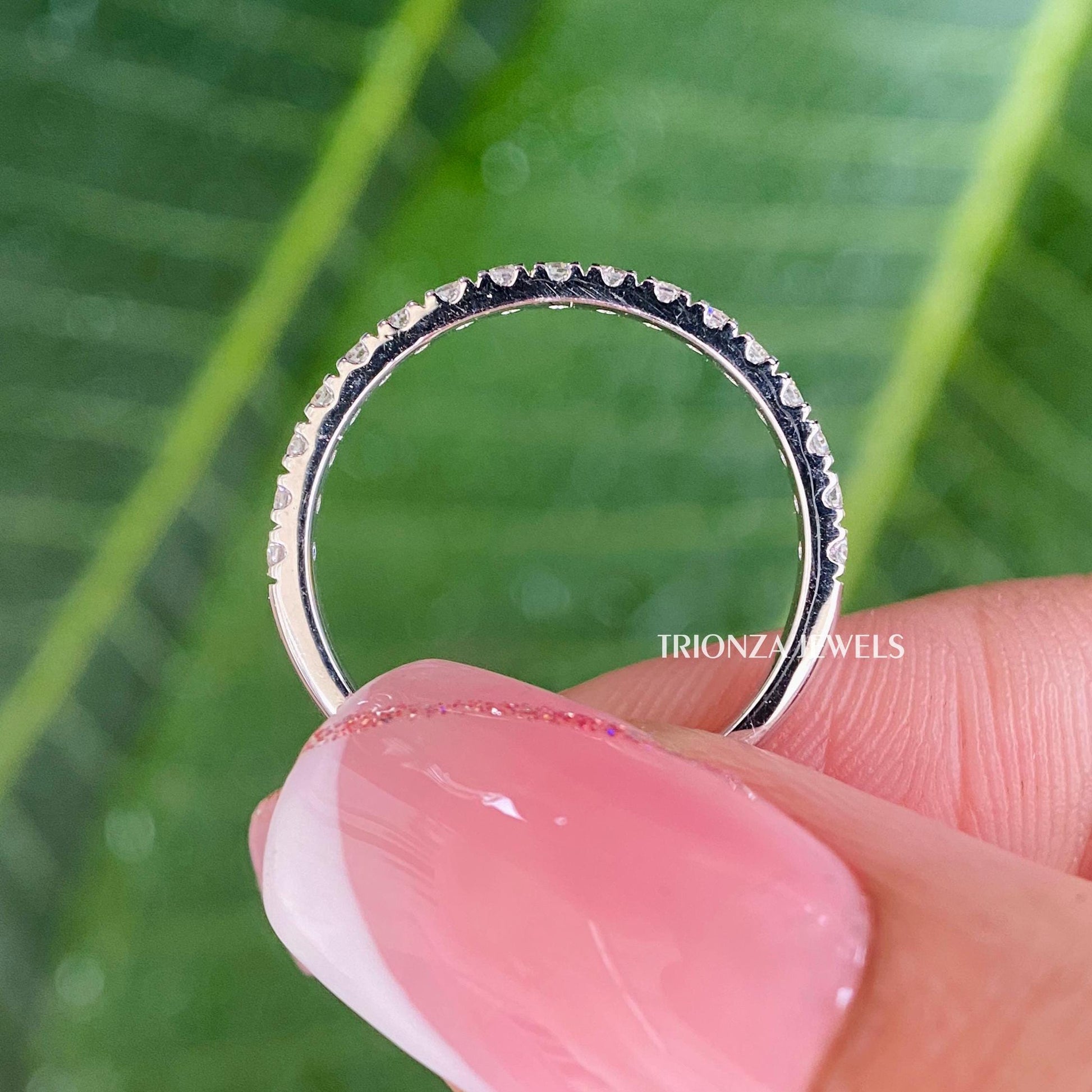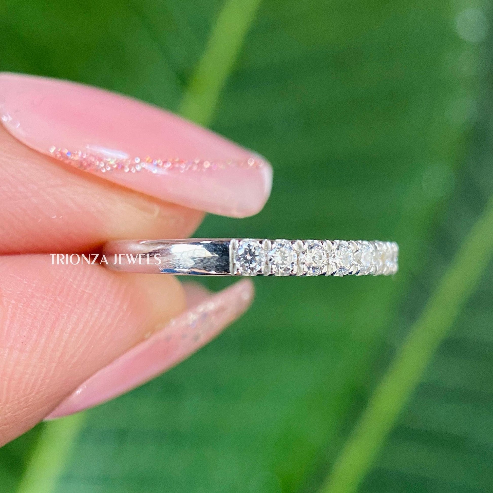 Pave Moissanite Wedding Band 0.34 TW Round Cut Engagement Ring