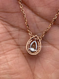 Pear Cut Lab Grown Diamond Halo Pendant 14K Rose Gold Necklace