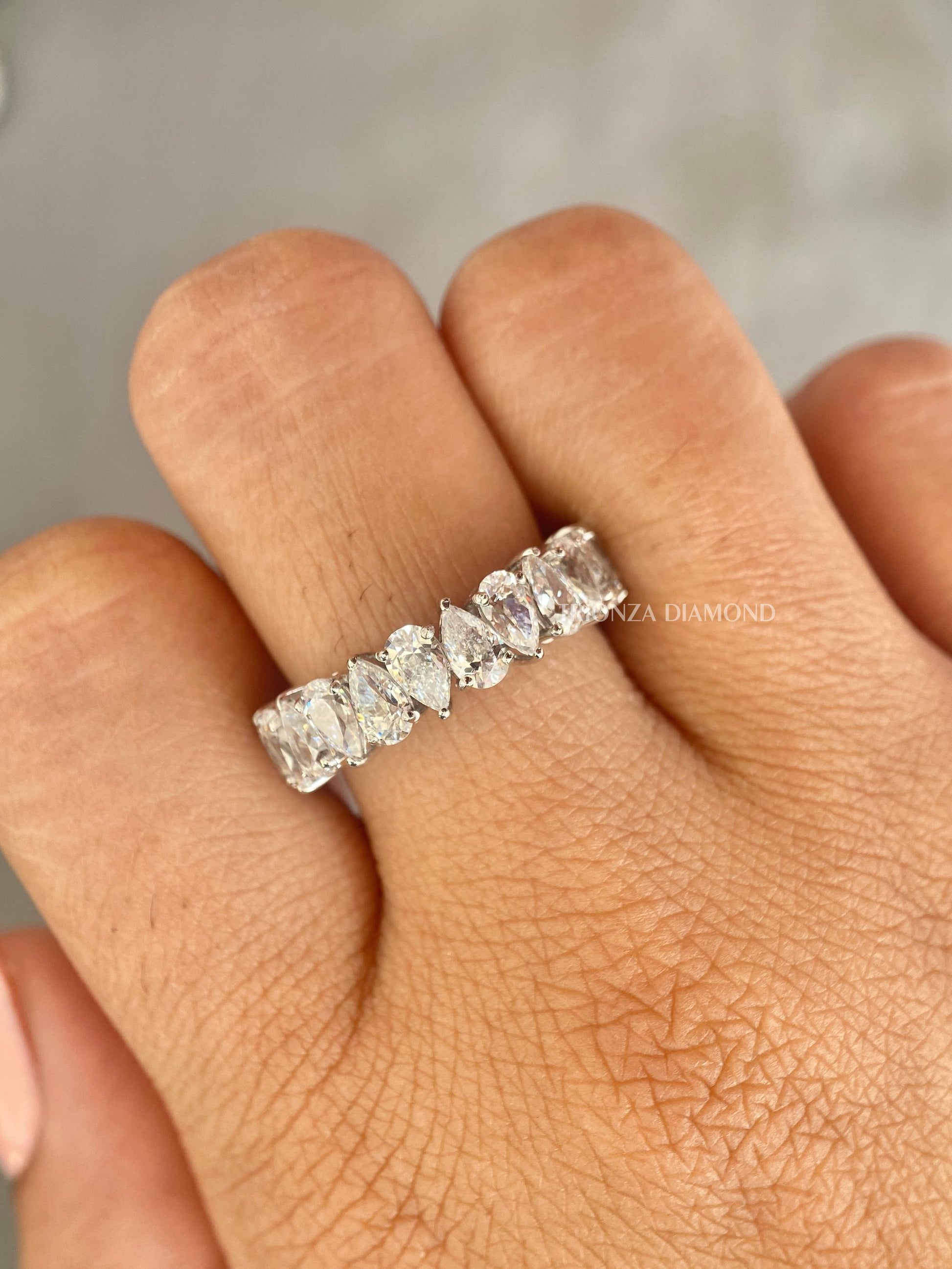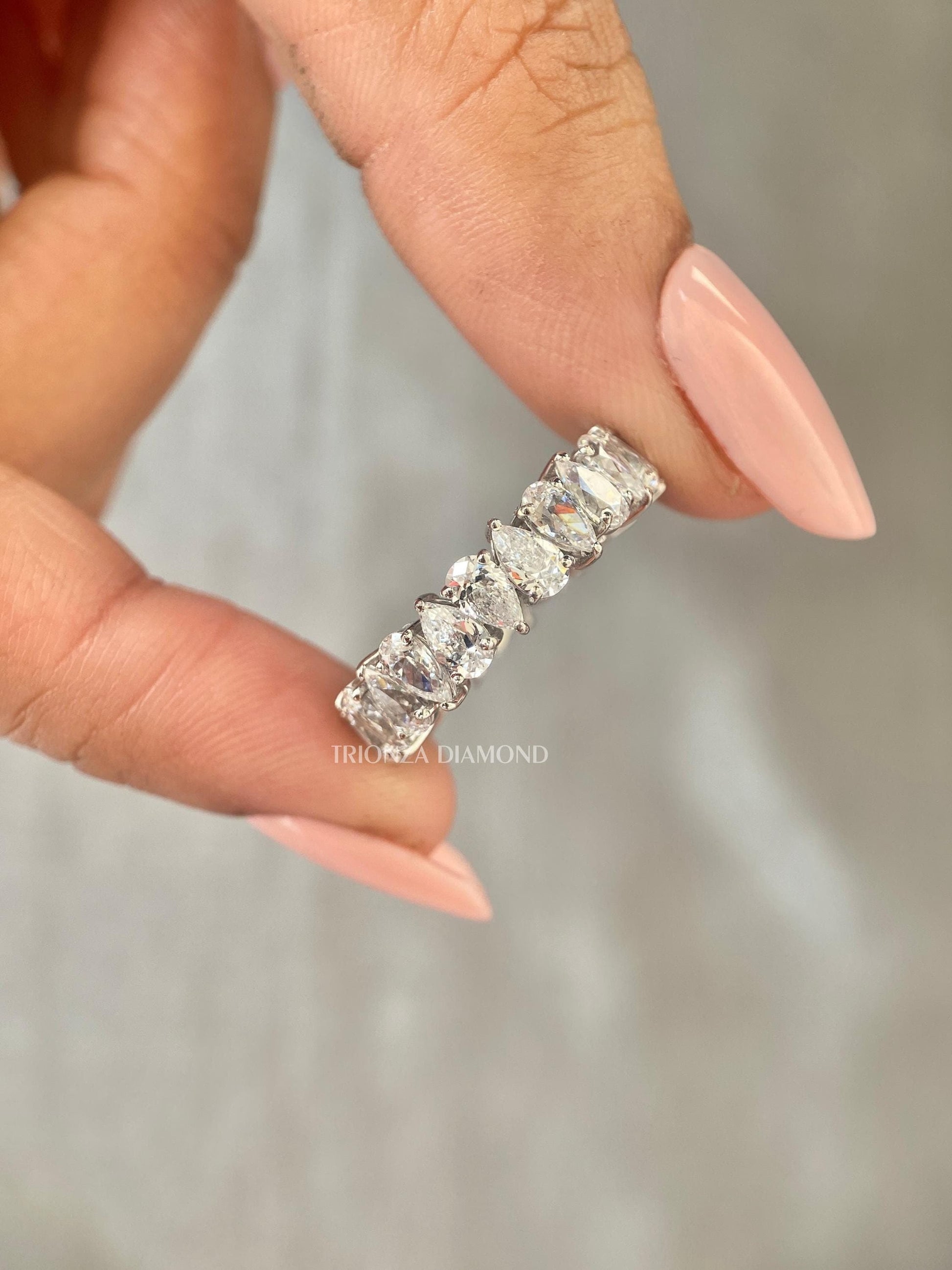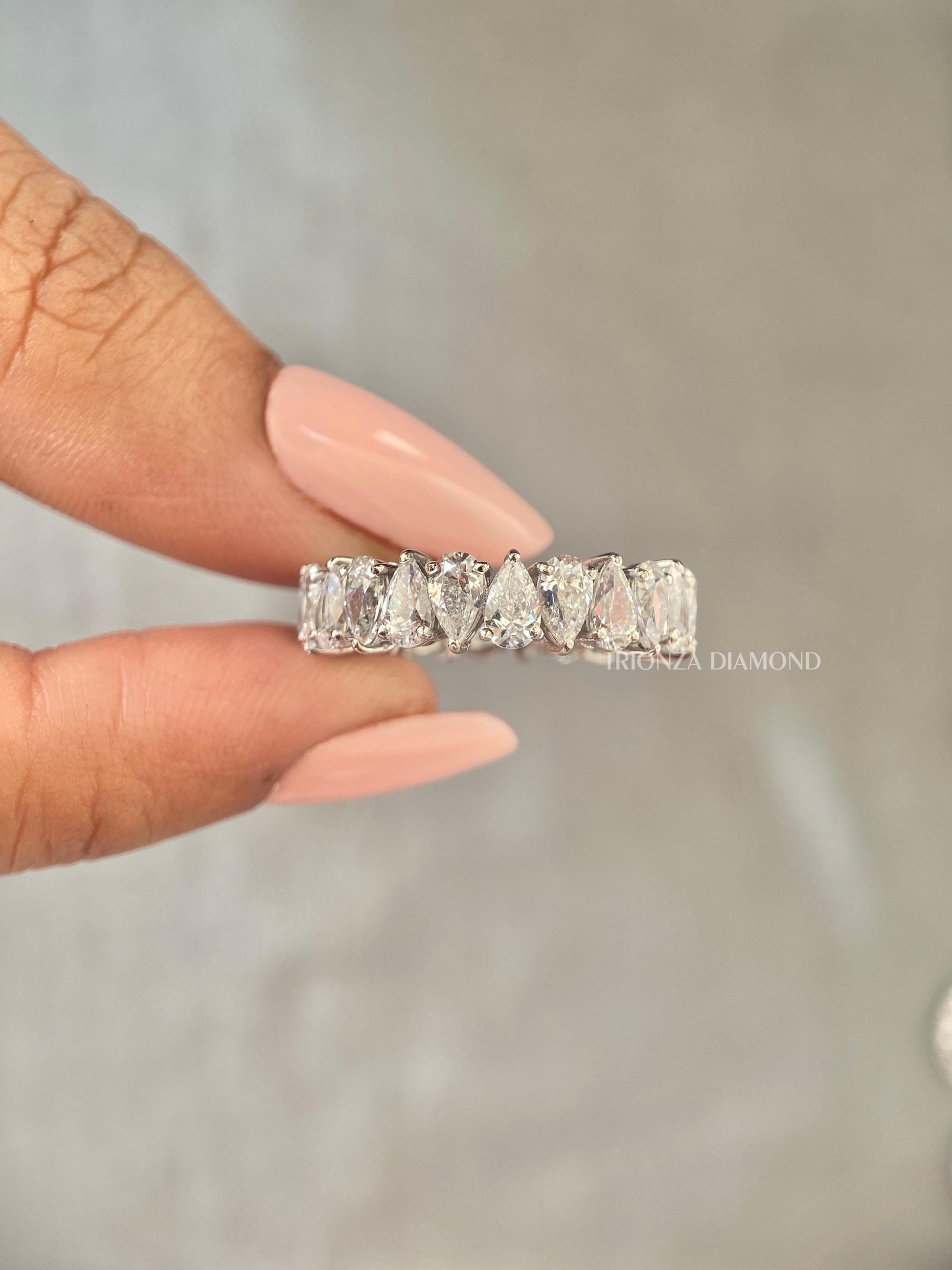 Discover our exquisite Pear Lab Grown Diamond Full Eternity Band, crafted in 14K White Gold. This stunning ring features FE/VS Lab Created Diamonds, perfect as a stackable band, wedding ring, proposal ring, anniversary gift, or a beautiful piece of diamond jewelry for women.