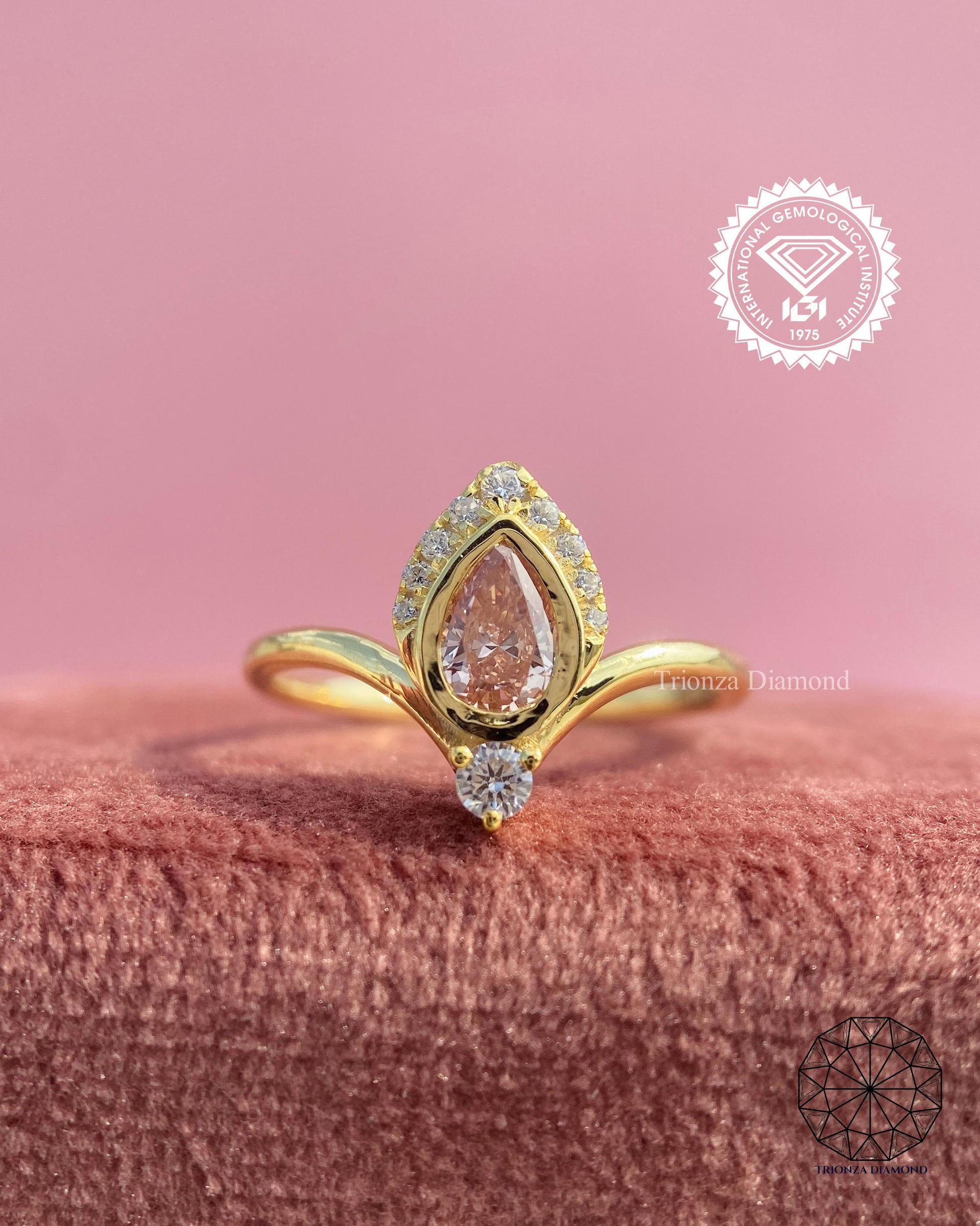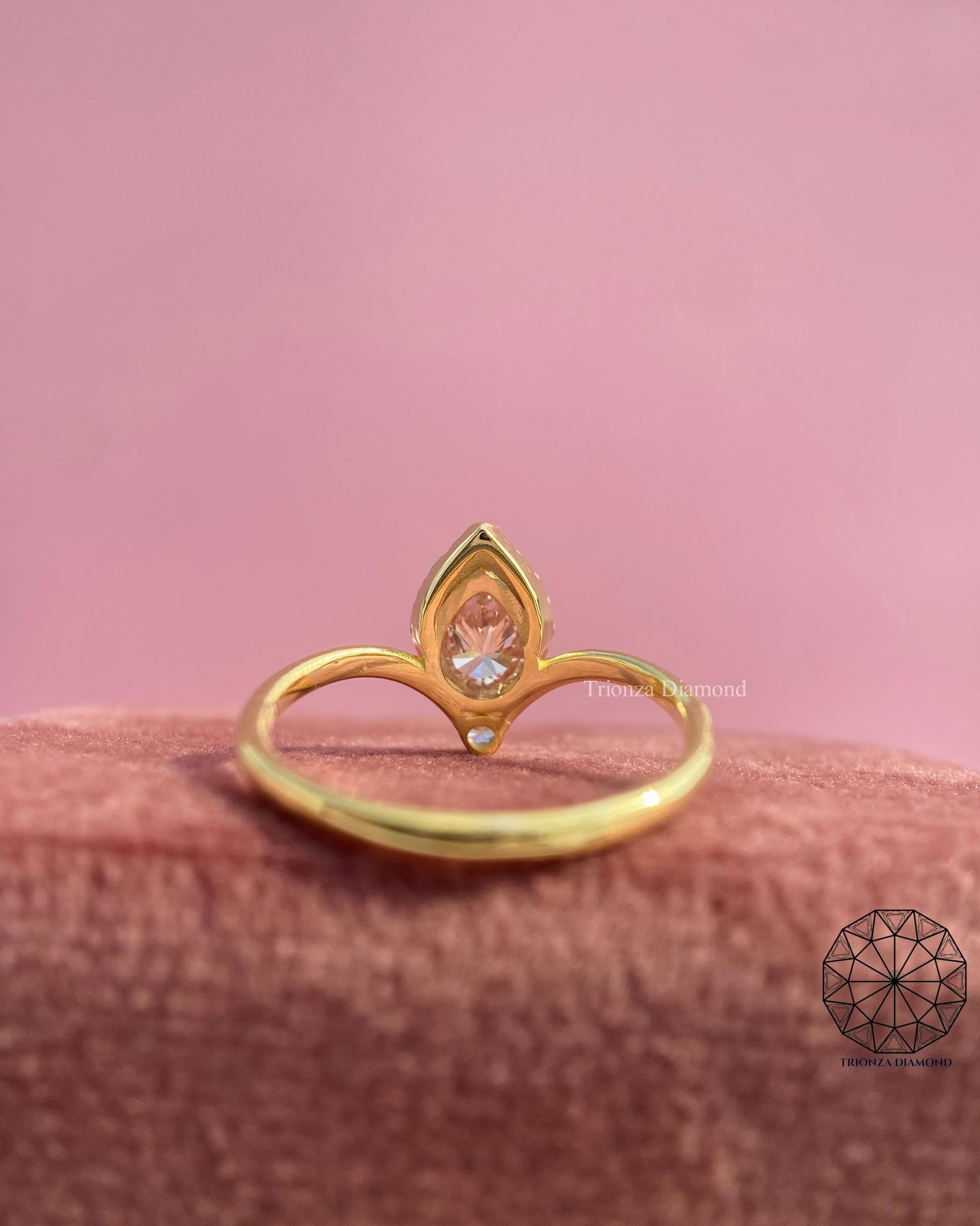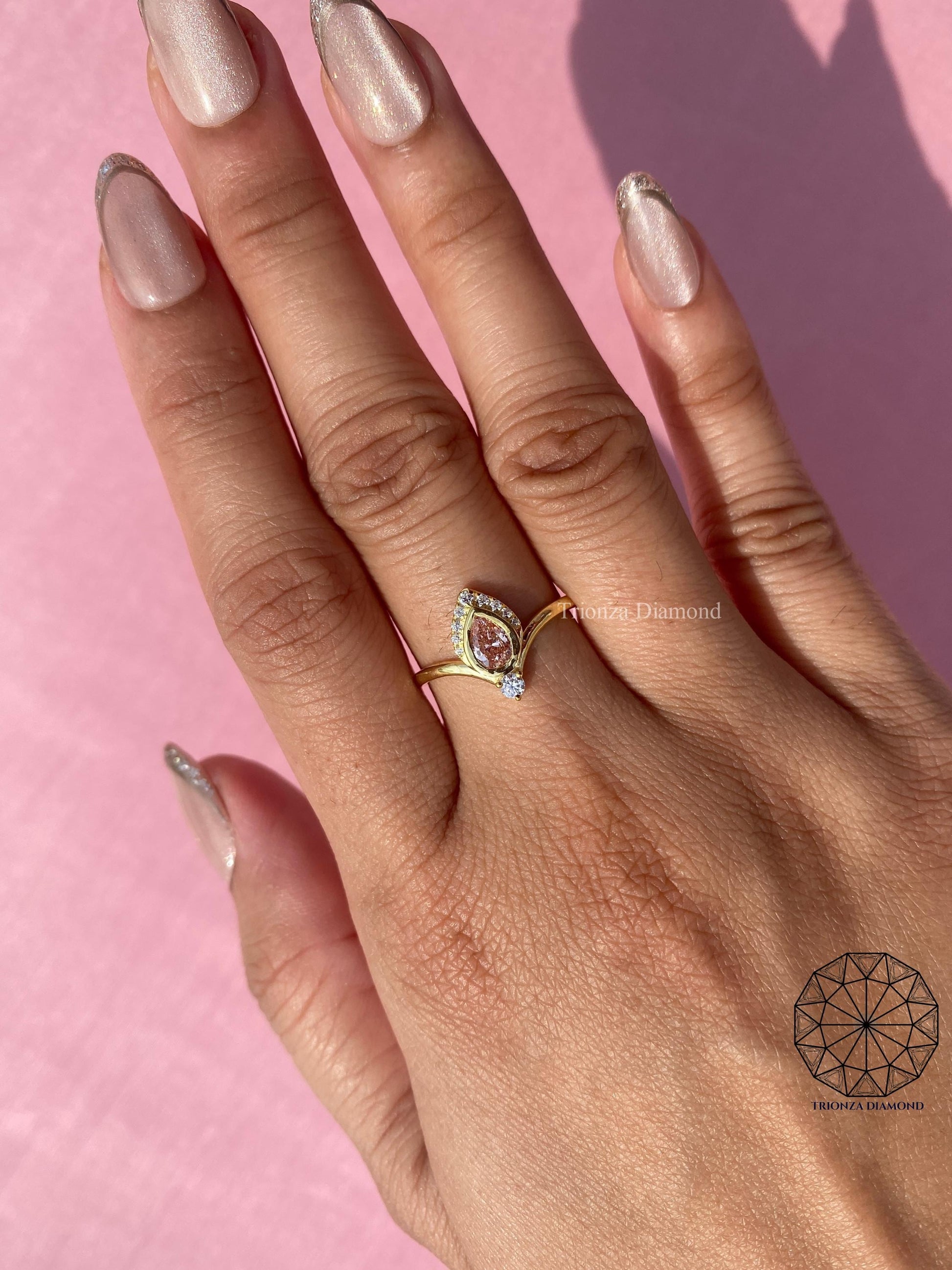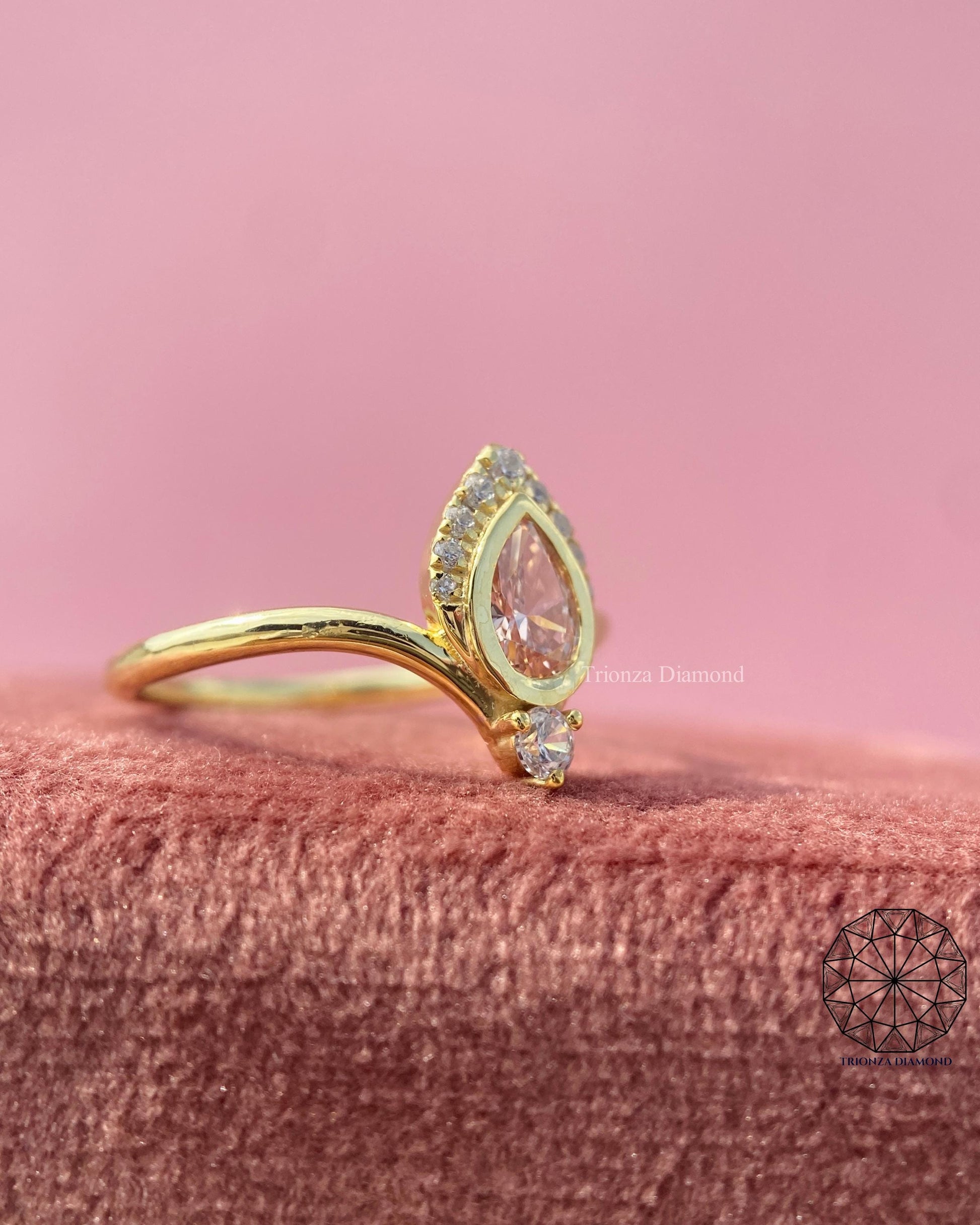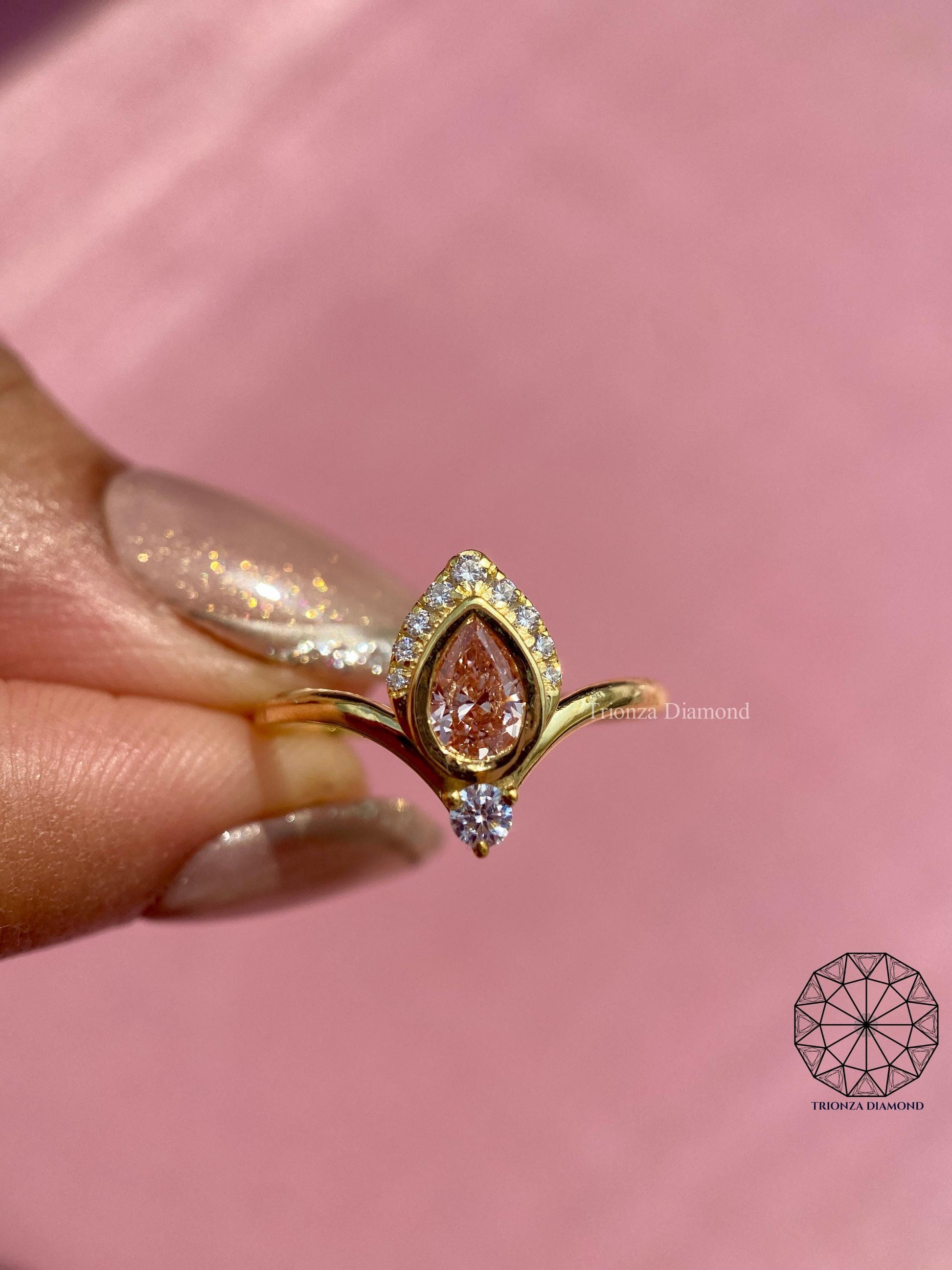 Pear Orange Lab Grown Diamond Engagement Ring 14k Gold
