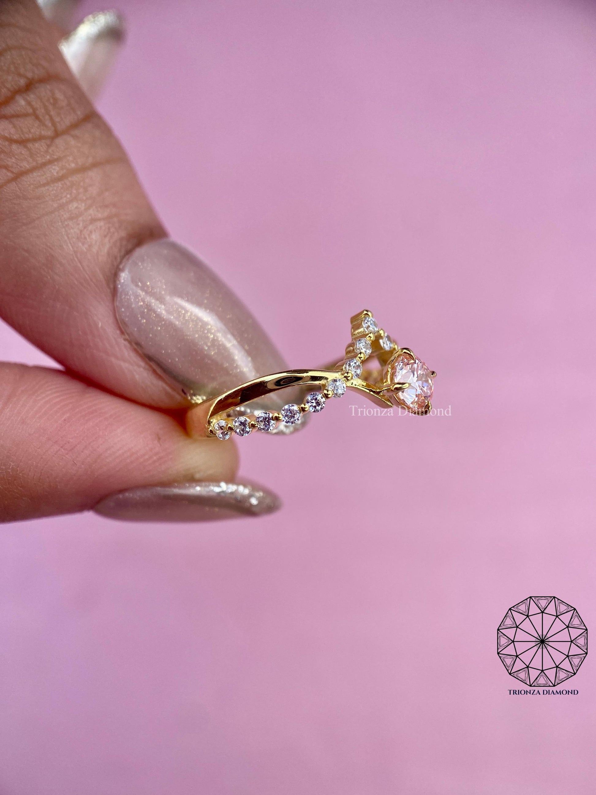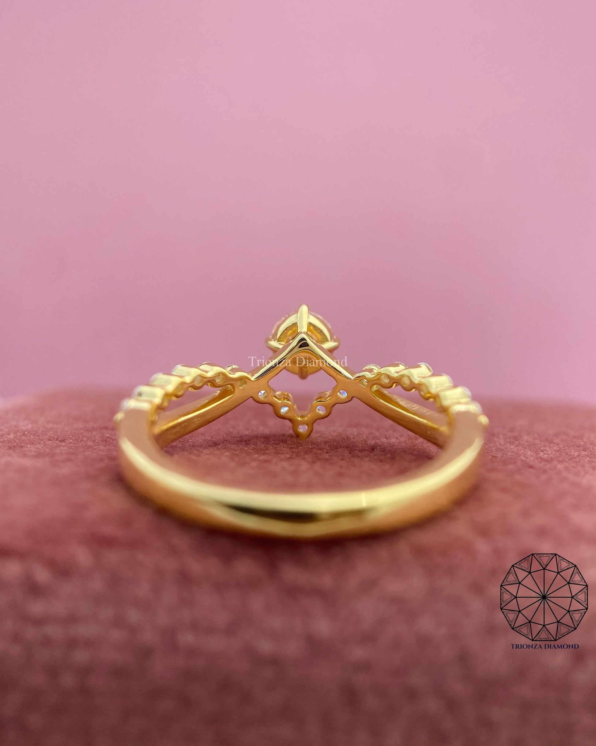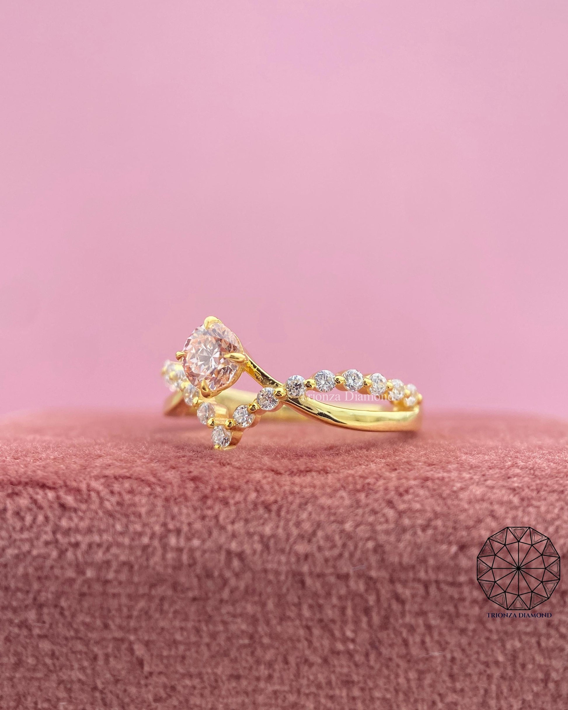 Celebrate your love with this stunning IGI Certified Round Lab-Grown Pink Diamond Engagement Ring, perfect for everyday wear or special occasions. This 14k Solid Yellow Gold Wedding Ring features a twisted band with a crown-style pink fancy diamond, an ideal anniversary gift for her. Handcrafted with love by Trionza Diamond.