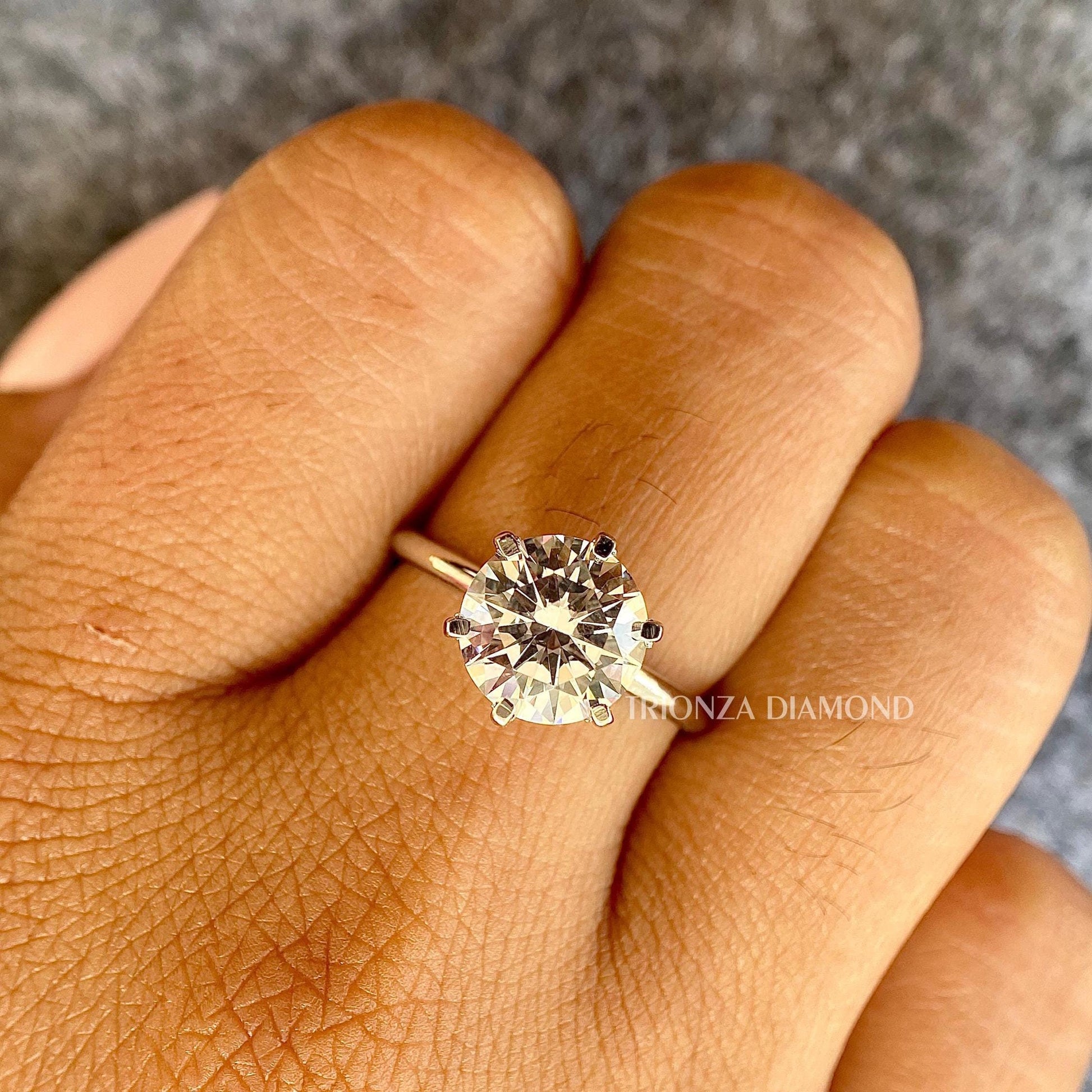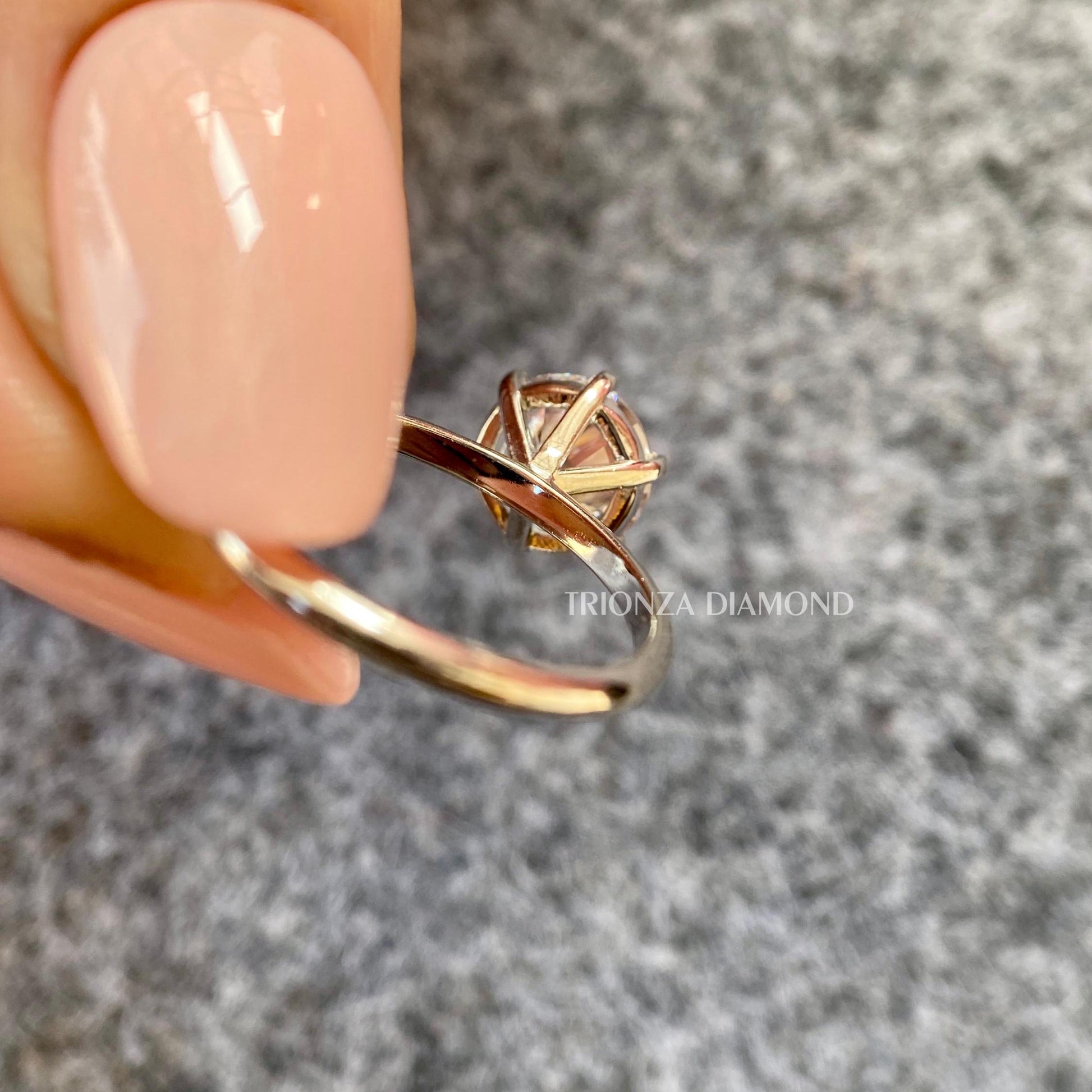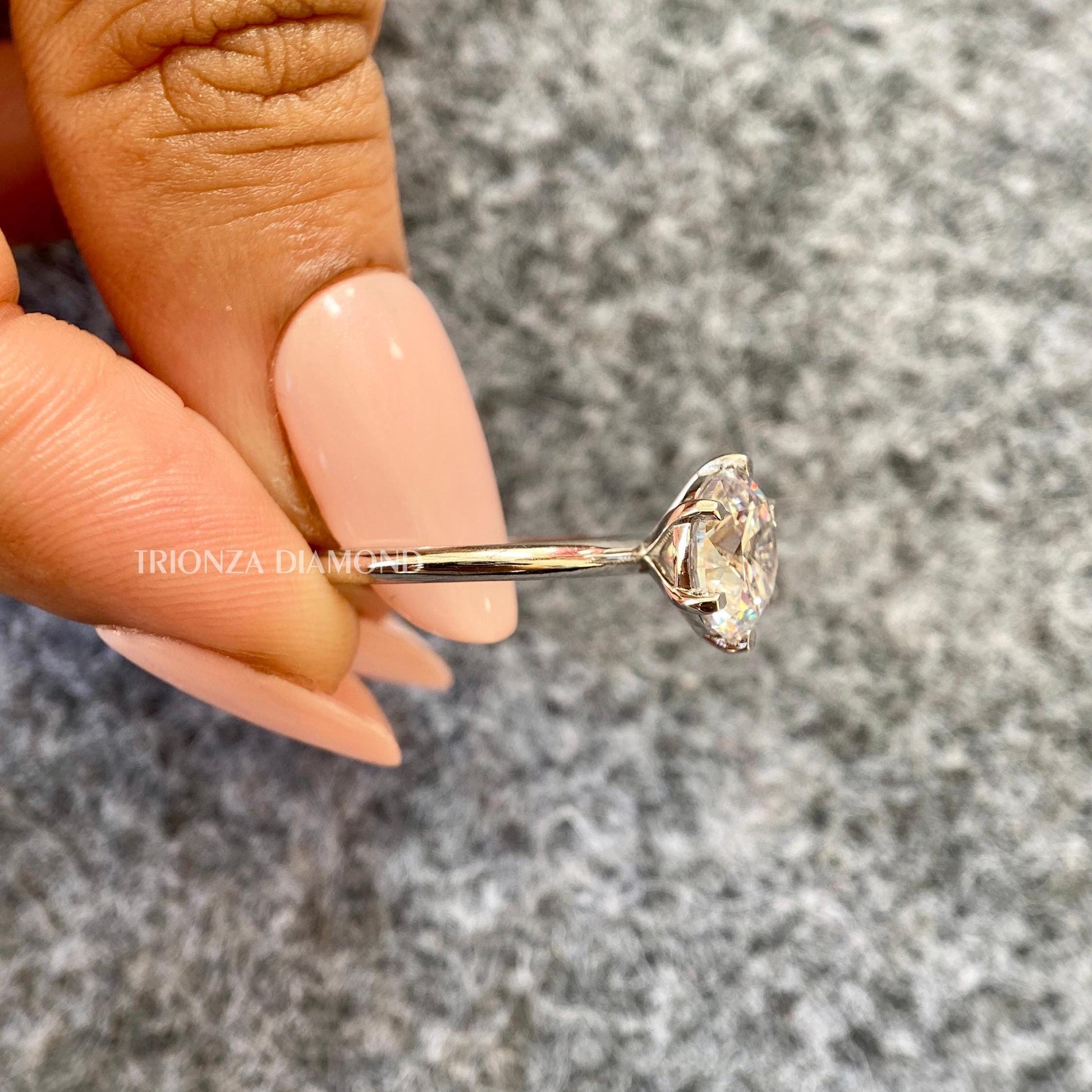 Discover elegance with our Platinum 2 CT Round Cut Lab Diamond Solitaire Ring. This exquisite engagement ring features an E/VVS2 certified lab-grown diamond, set in a timeless 6-prong platinum setting, perfect for modern brides seeking both beauty and sustainability.