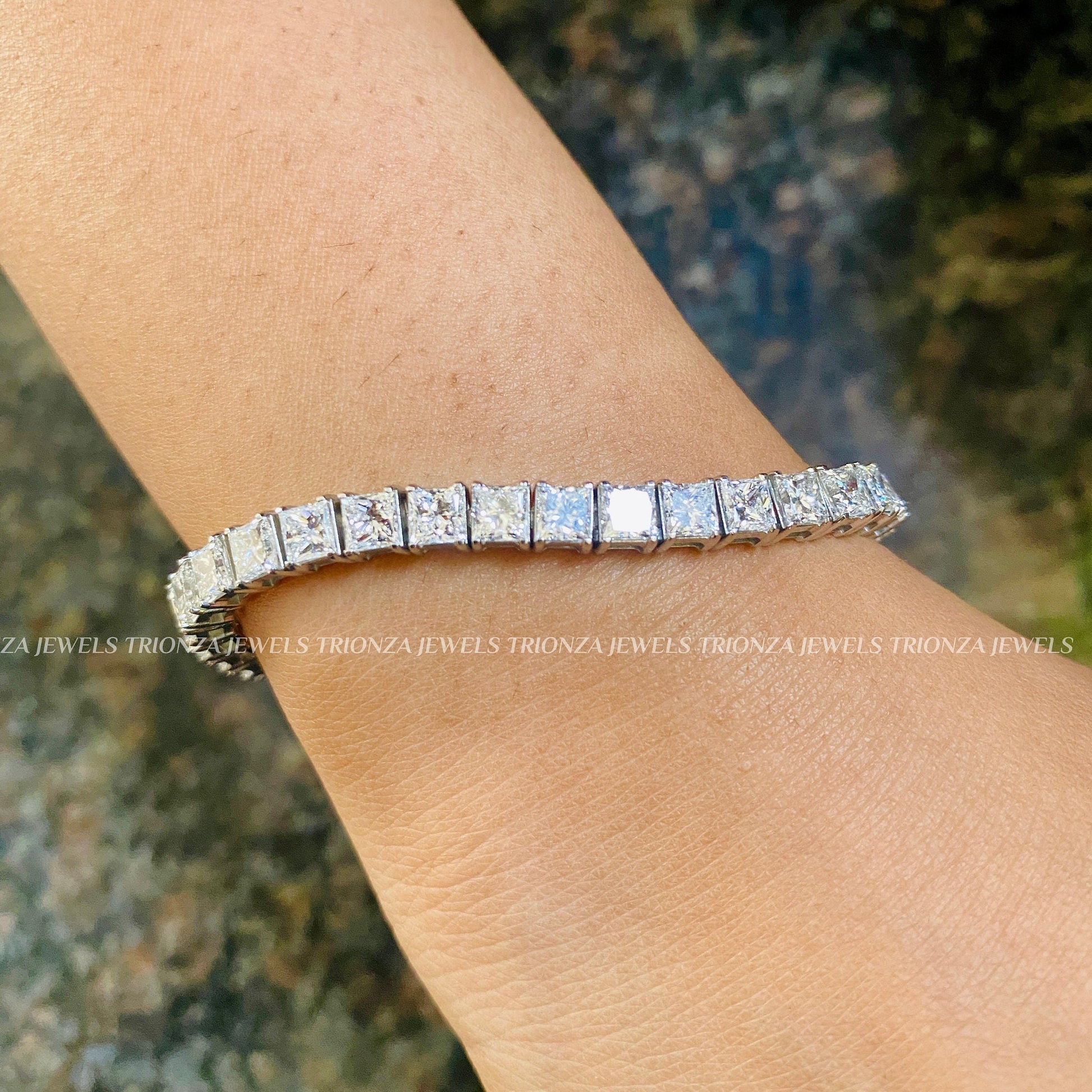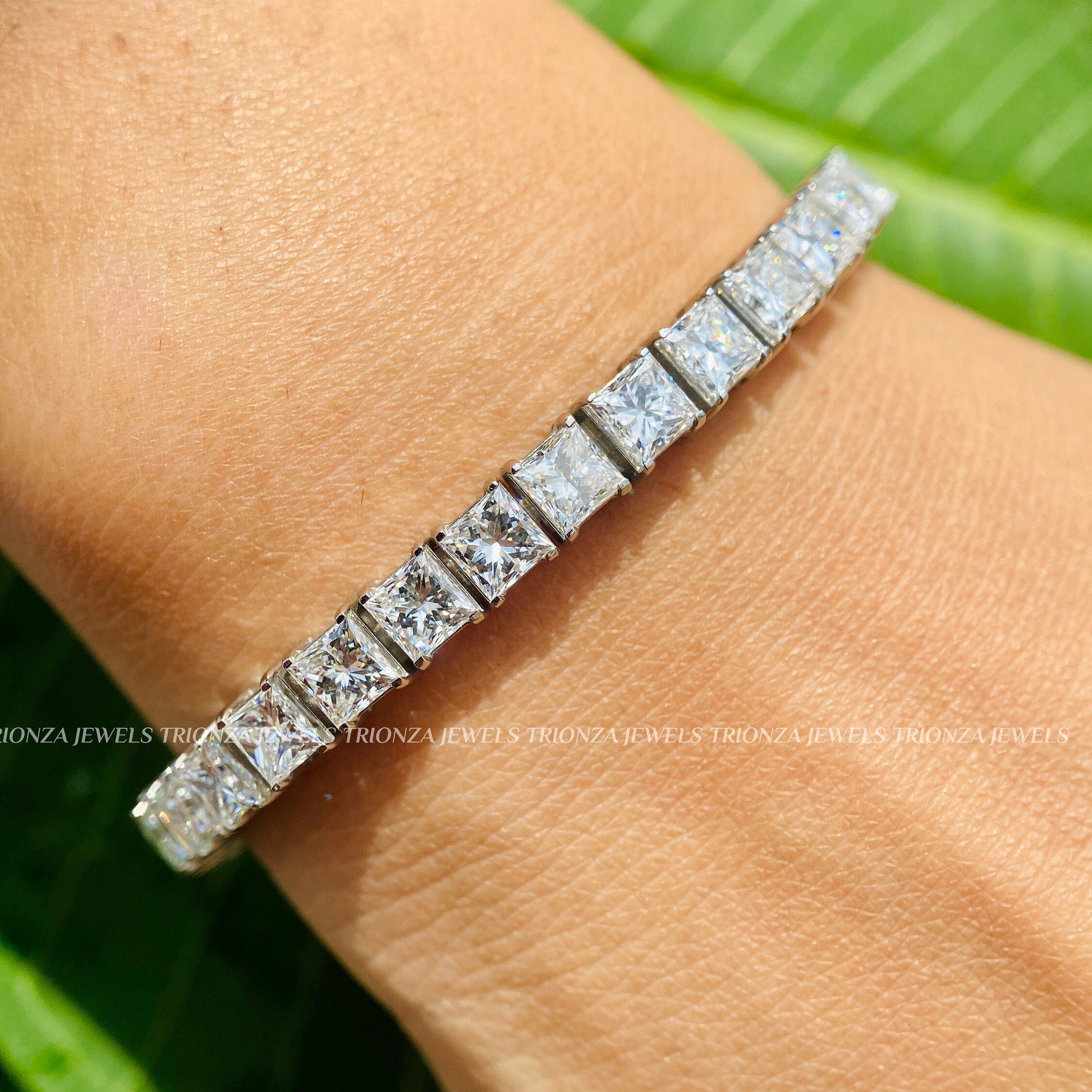 Adorn your wrist with our exquisite Princess Cut Lab Grown Diamond Tennis Bracelet, handcrafted by TRIONZADIAMOND. Featuring approximately 6 carats of brilliant lab grown diamonds, this stackable 14K solid gold bracelet comes with a certificate, perfect for adding timeless elegance to any collection.
