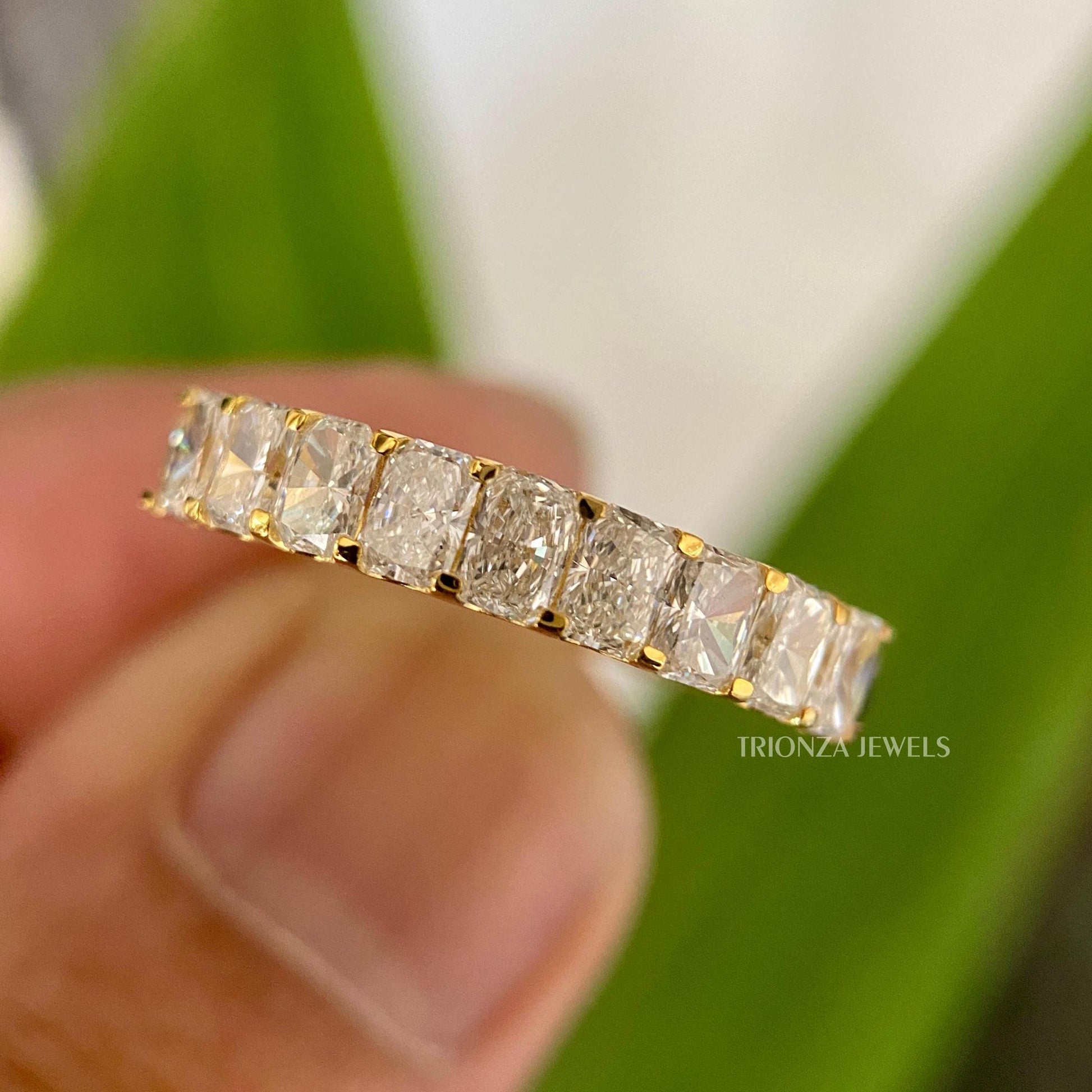 Discover our stunning Radiant Moissanite Eternity Band, expertly crafted in 18K Yellow Gold. This stackable ring is perfect as a wedding band, bridal band, anniversary gift, or a special treat for her.