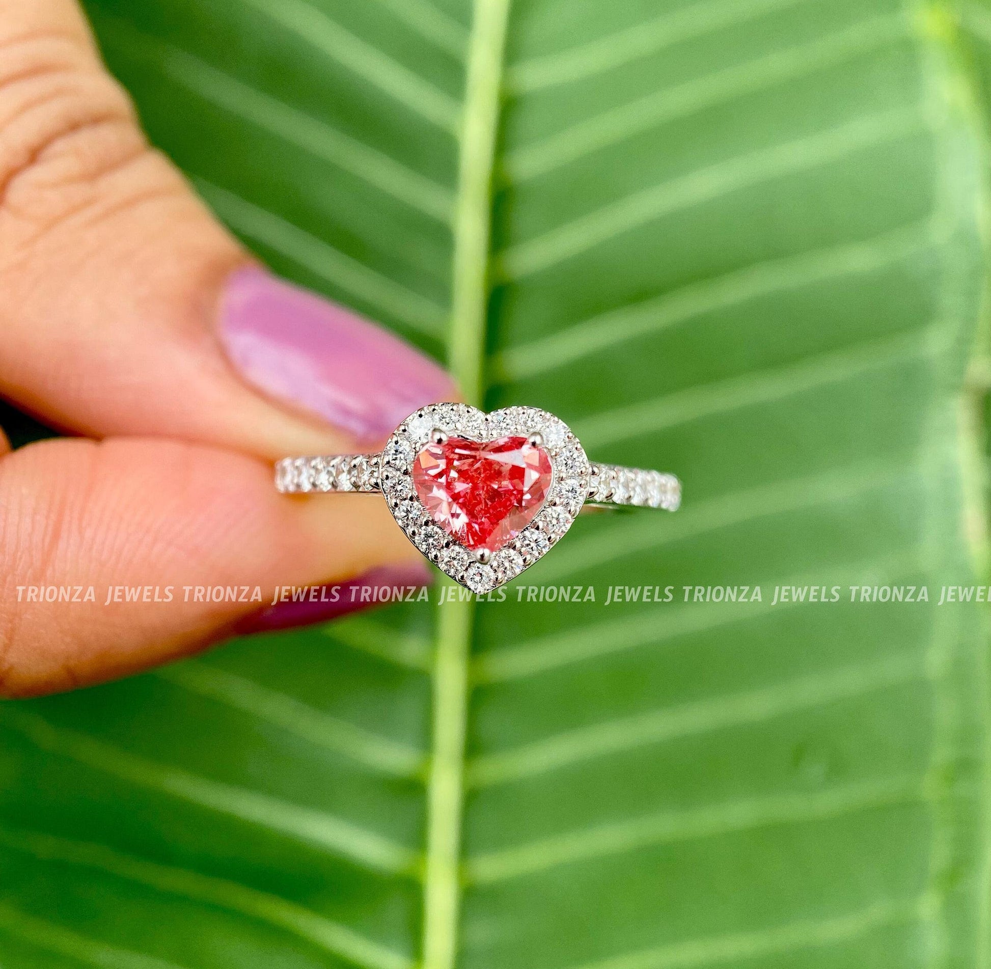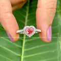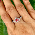 Red Heart Halo Moissanite Engagement Ring | 14K Gold Wedding Ring