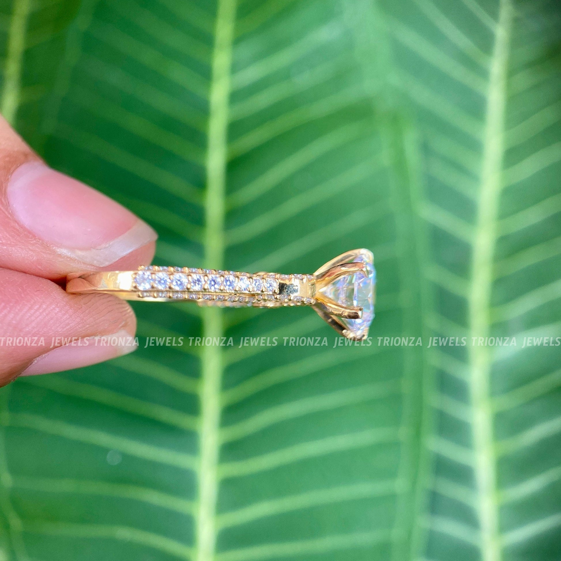 Perfect for proposals, weddings, or as a personalized gift, this ring combines elegance with ethical sourcing. Moissanite is also known as Eco-Friendly Diamond, Ethical Diamond, Sustainable Diamond, and Man-Made Diamond.