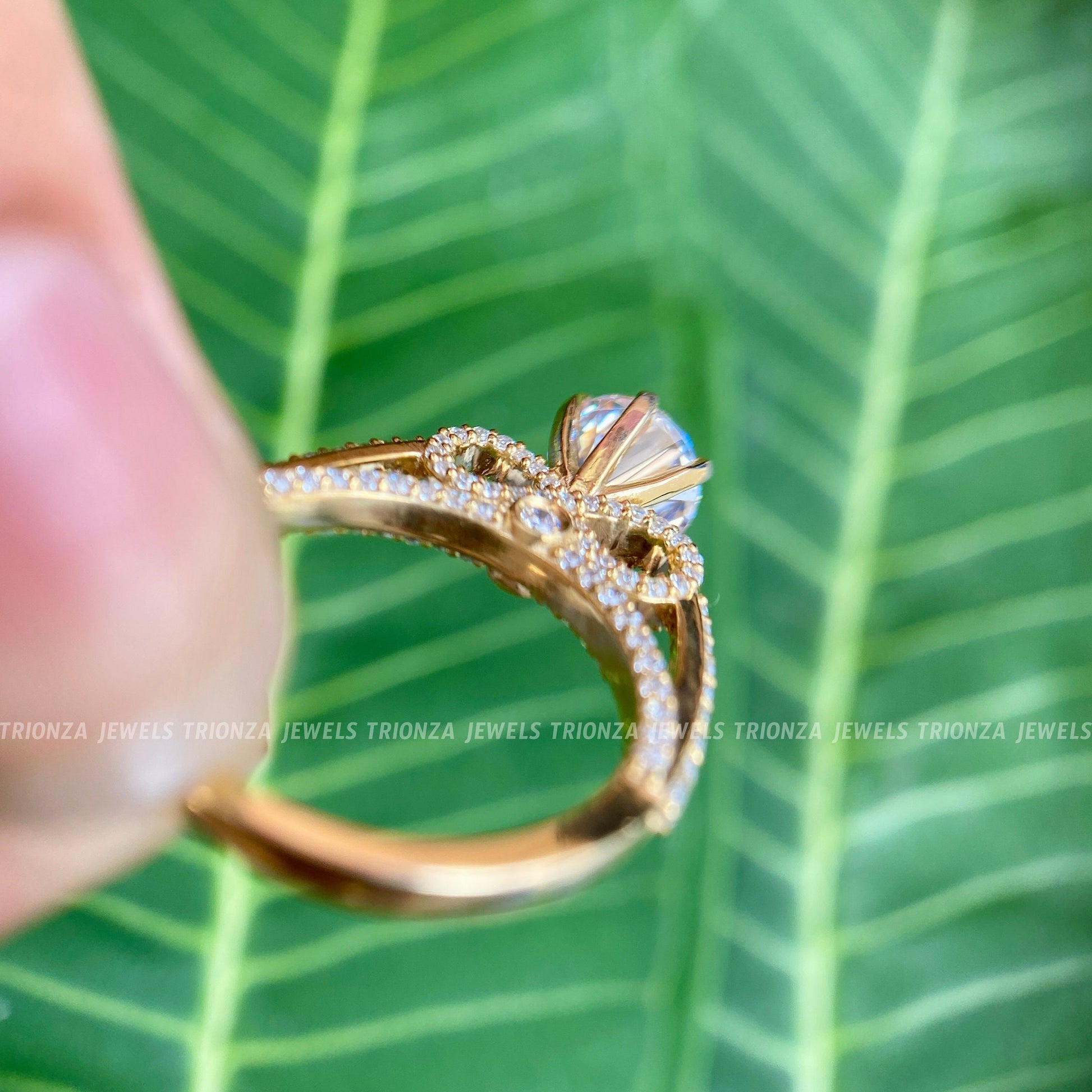 Round Cut Halo Engagement Ring 1.85 CT - Moissanite Pave, Handmade