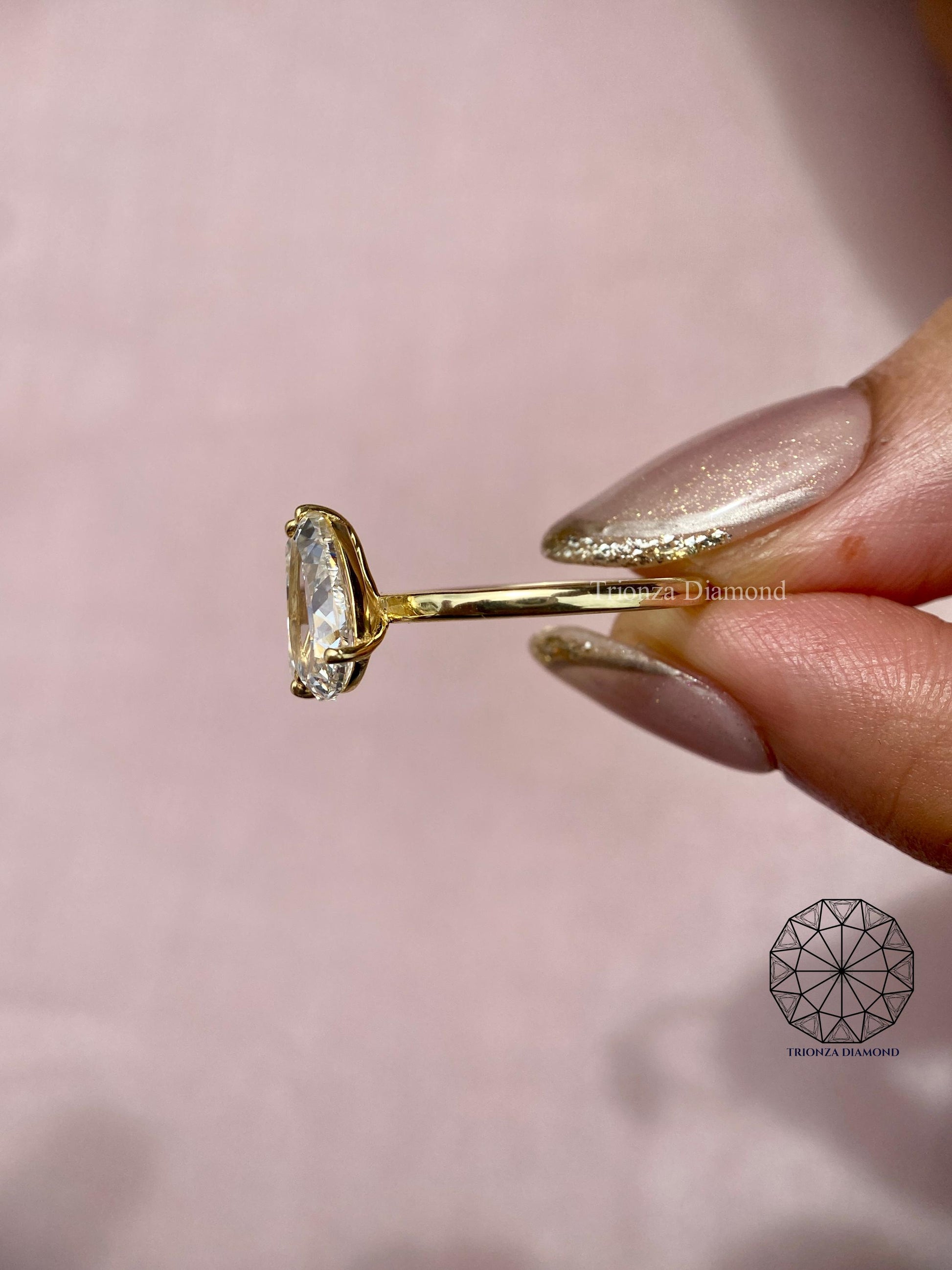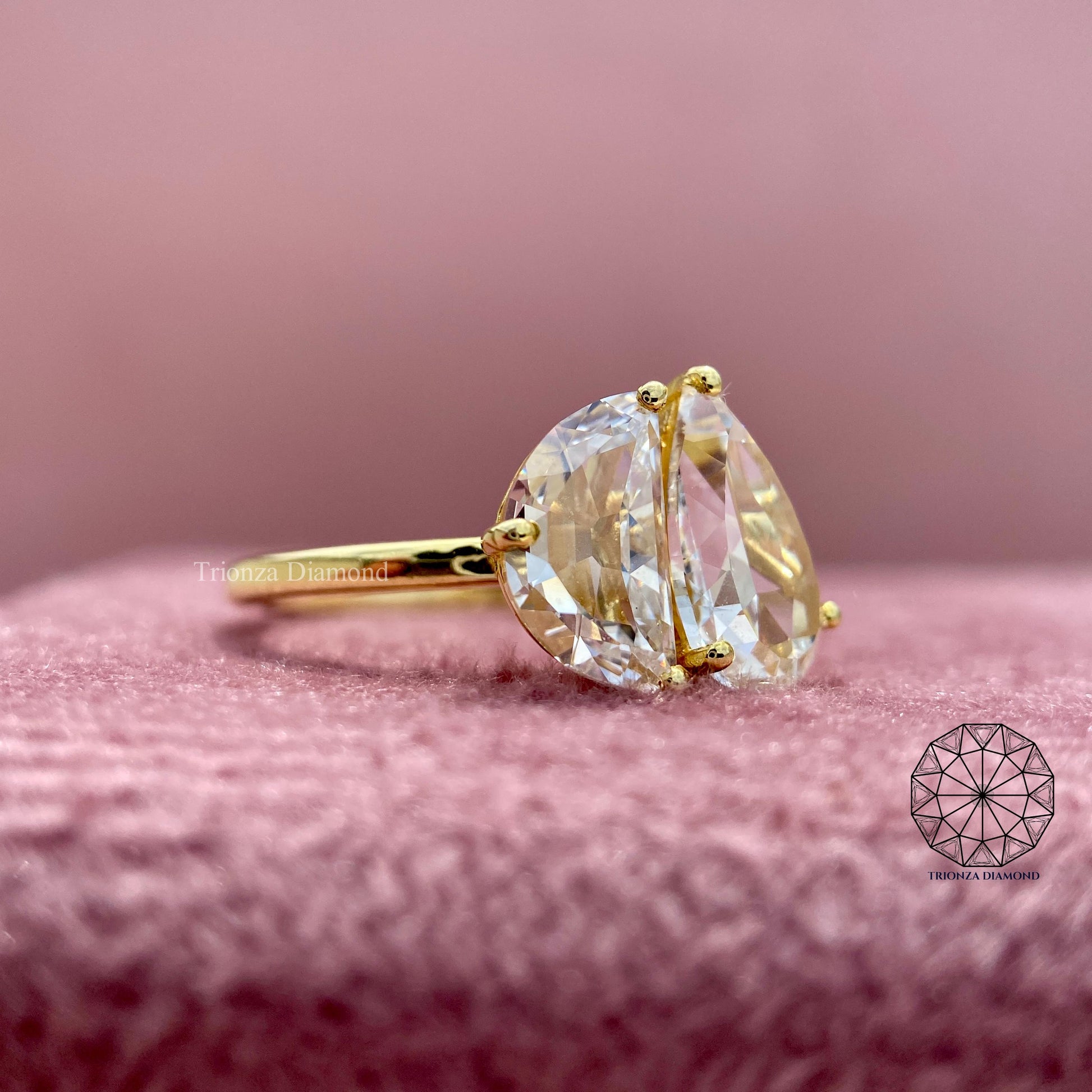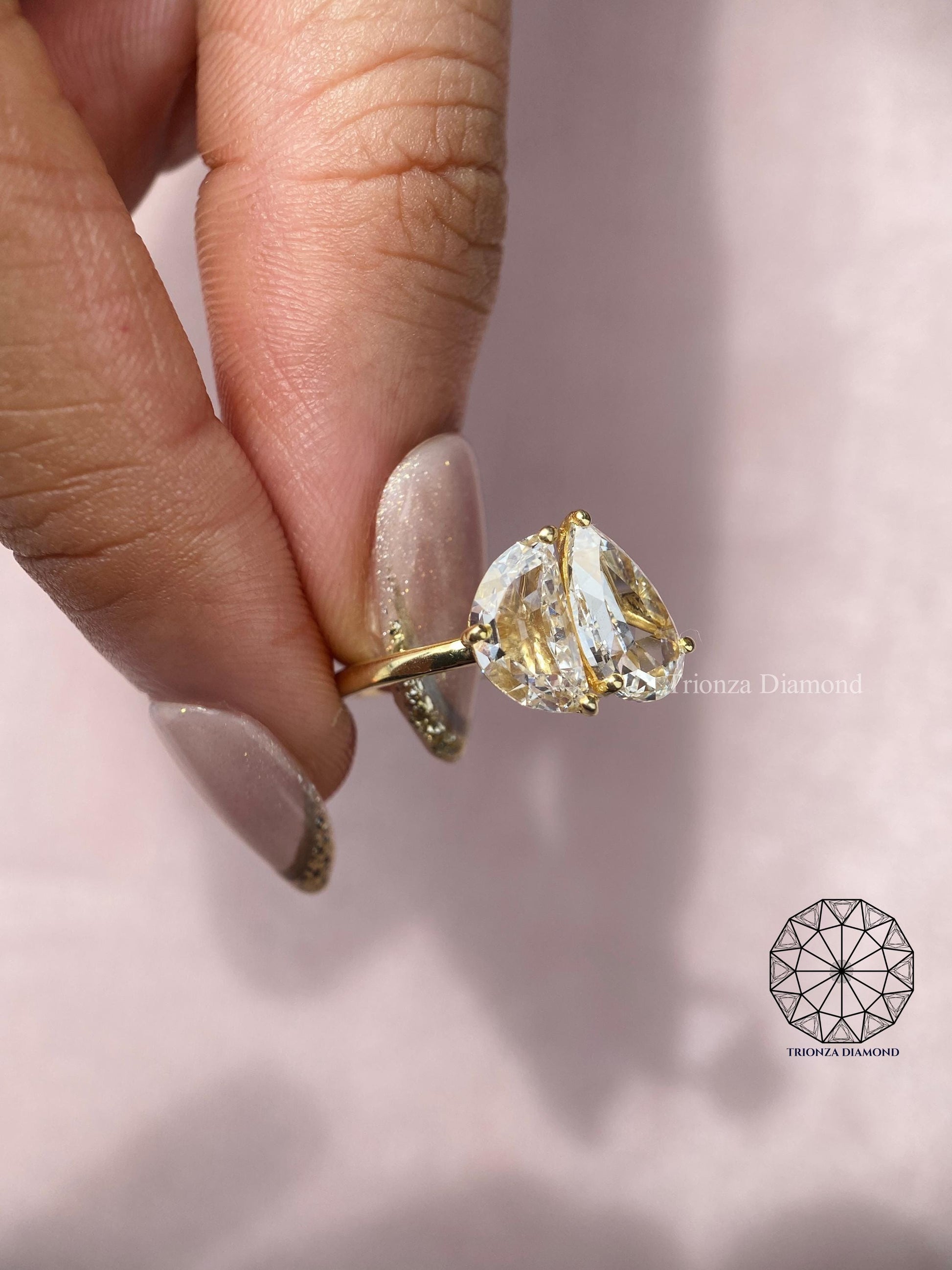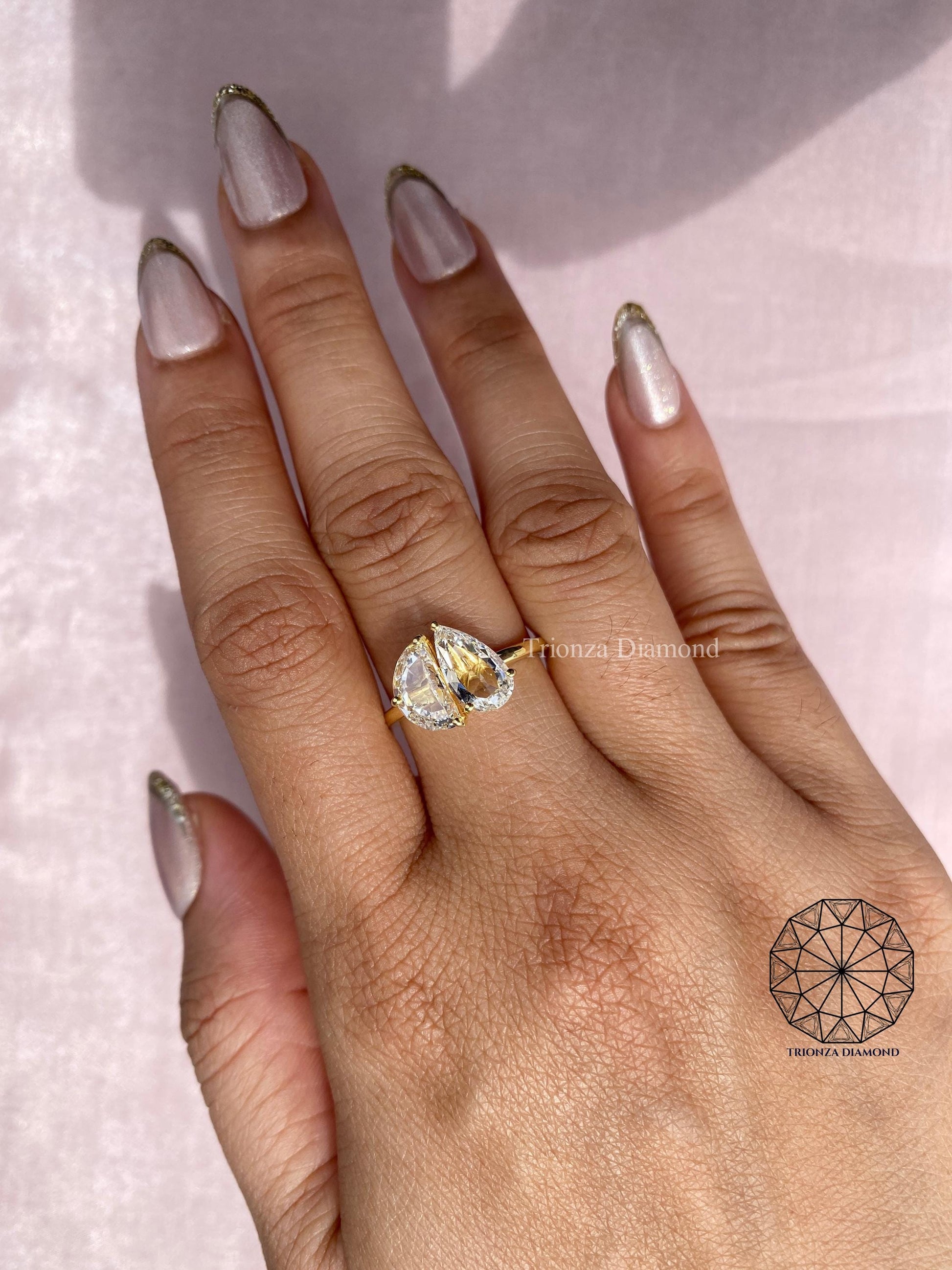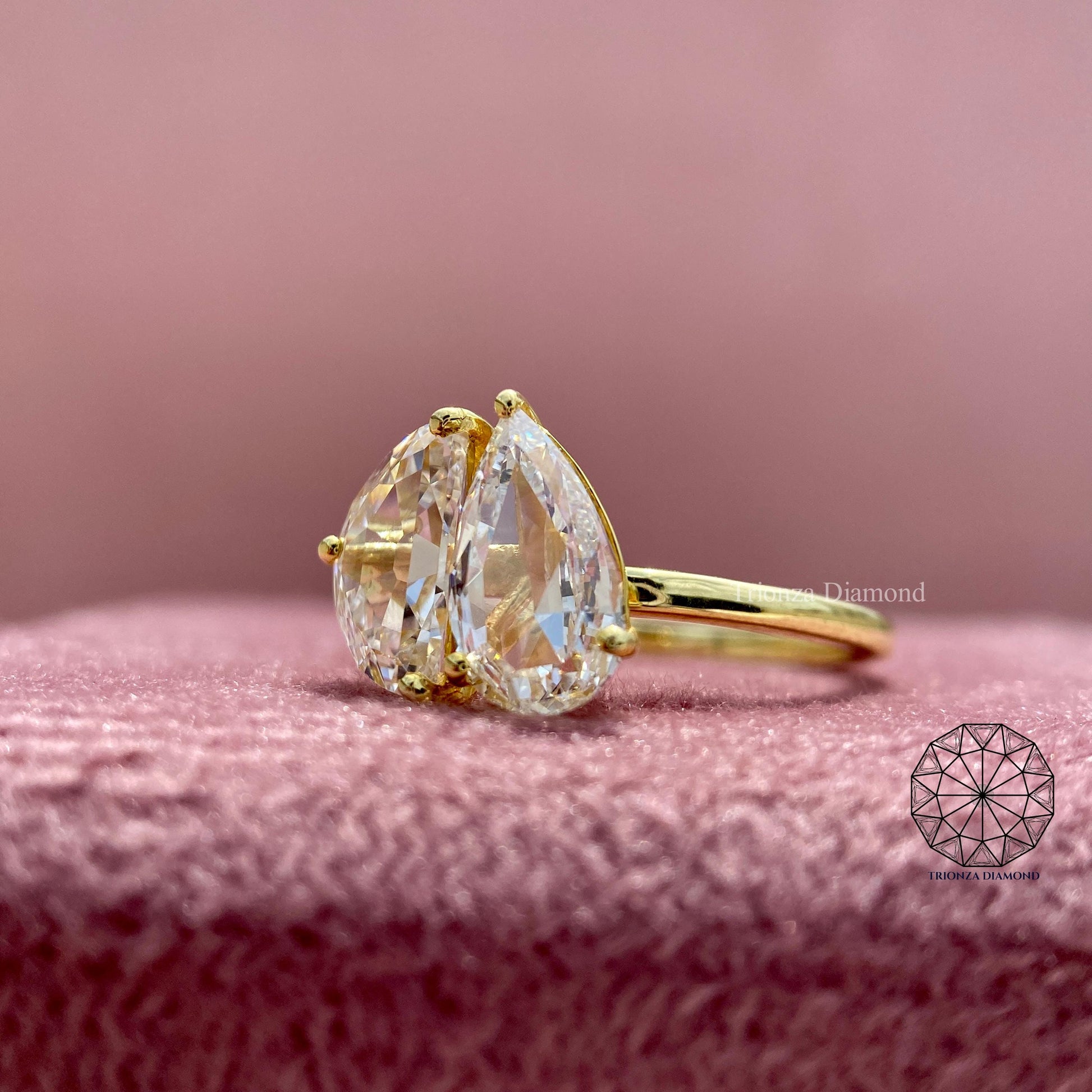 Discover the elegance of our 2.89 TCW Toi et Moi Lab Grown Diamond Ring, a modern "you and me" design symbolizing balance and love. This exquisite piece features one pear cut and one half moon cut rose cut diamond, each IGI certified and sustainably created.
