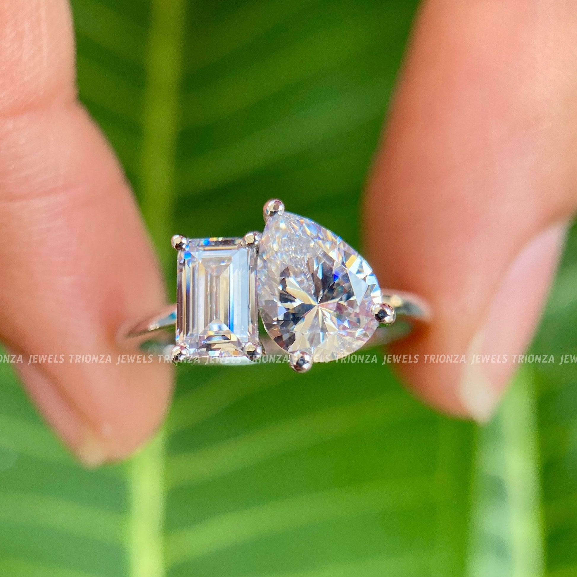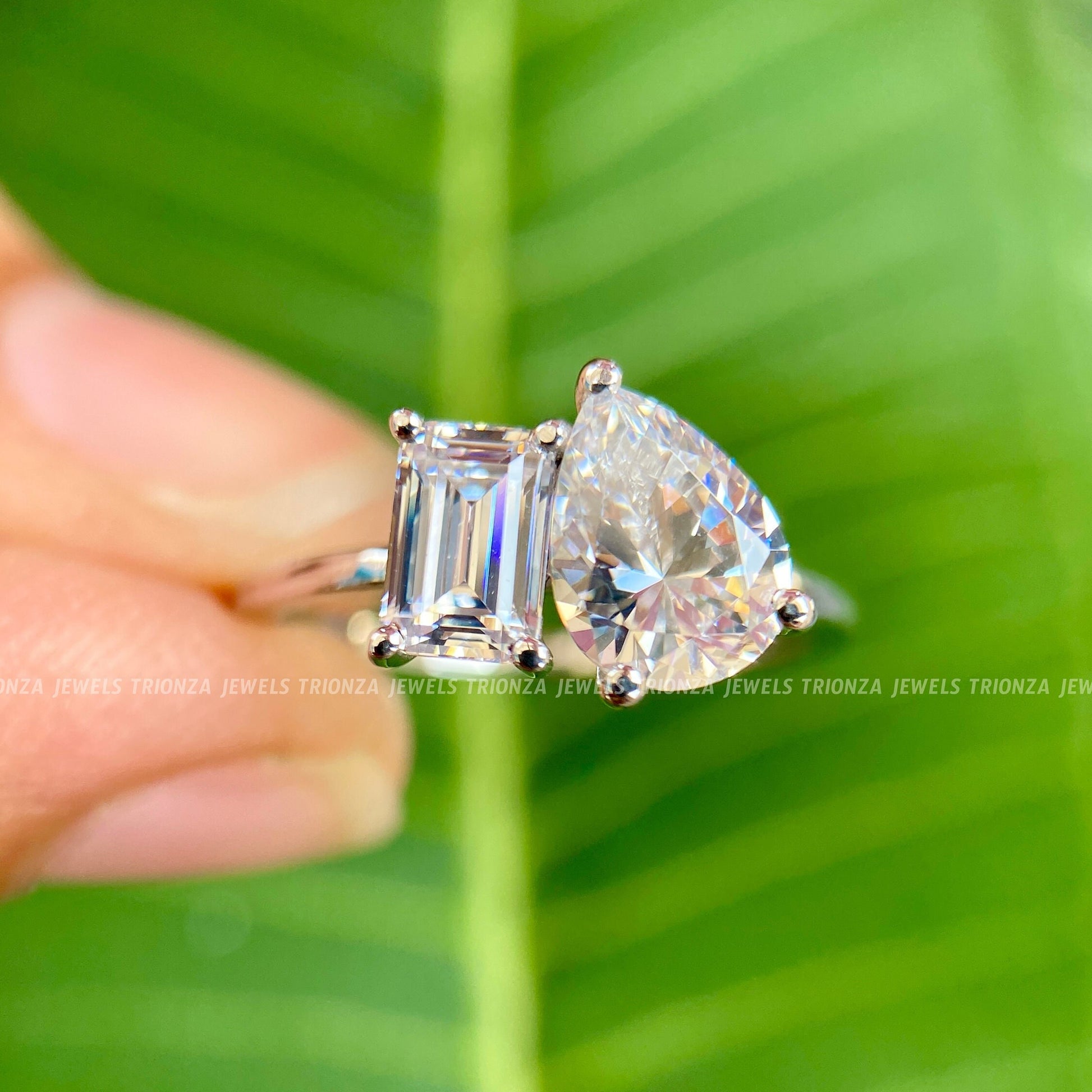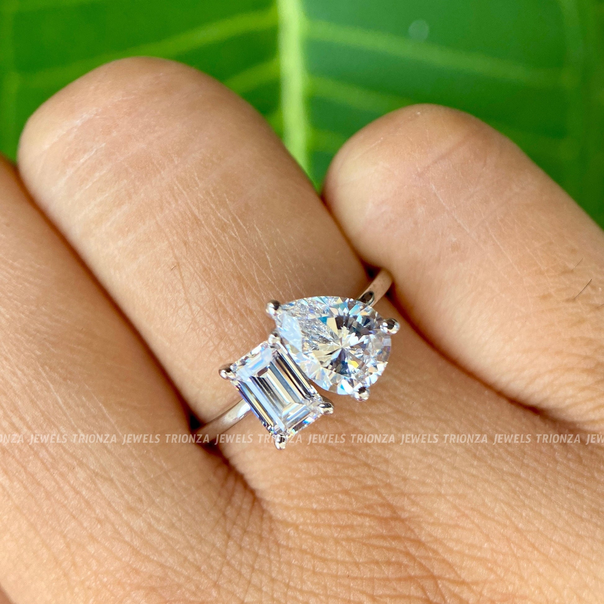 Toi et Moi Moissanite Ring | Emerald & Pear Two Stone Engagement