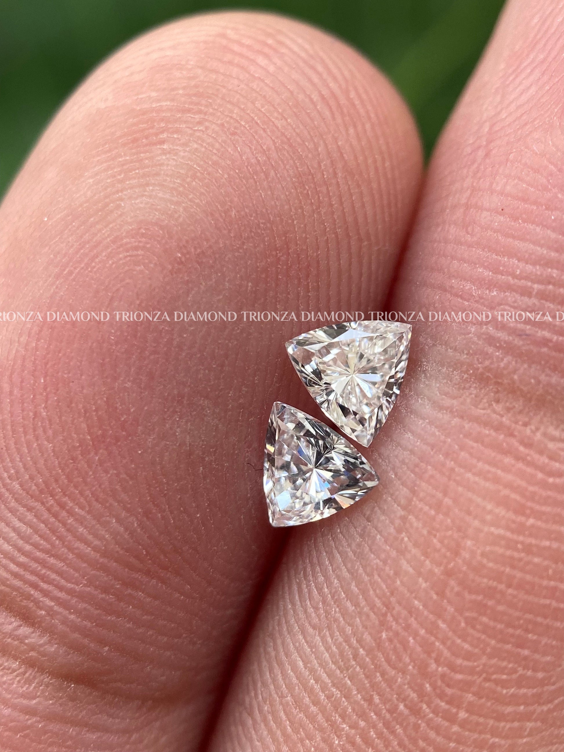 5 MM Trillion Cut EF/VS Lab Grown Diamond Pair, perfect as matching earrings or elegant side stones for an engagement ring. These loose lab-created diamonds are an ideal choice for women, thoughtful gifts, custom jewelry, or enhancing any ring design.