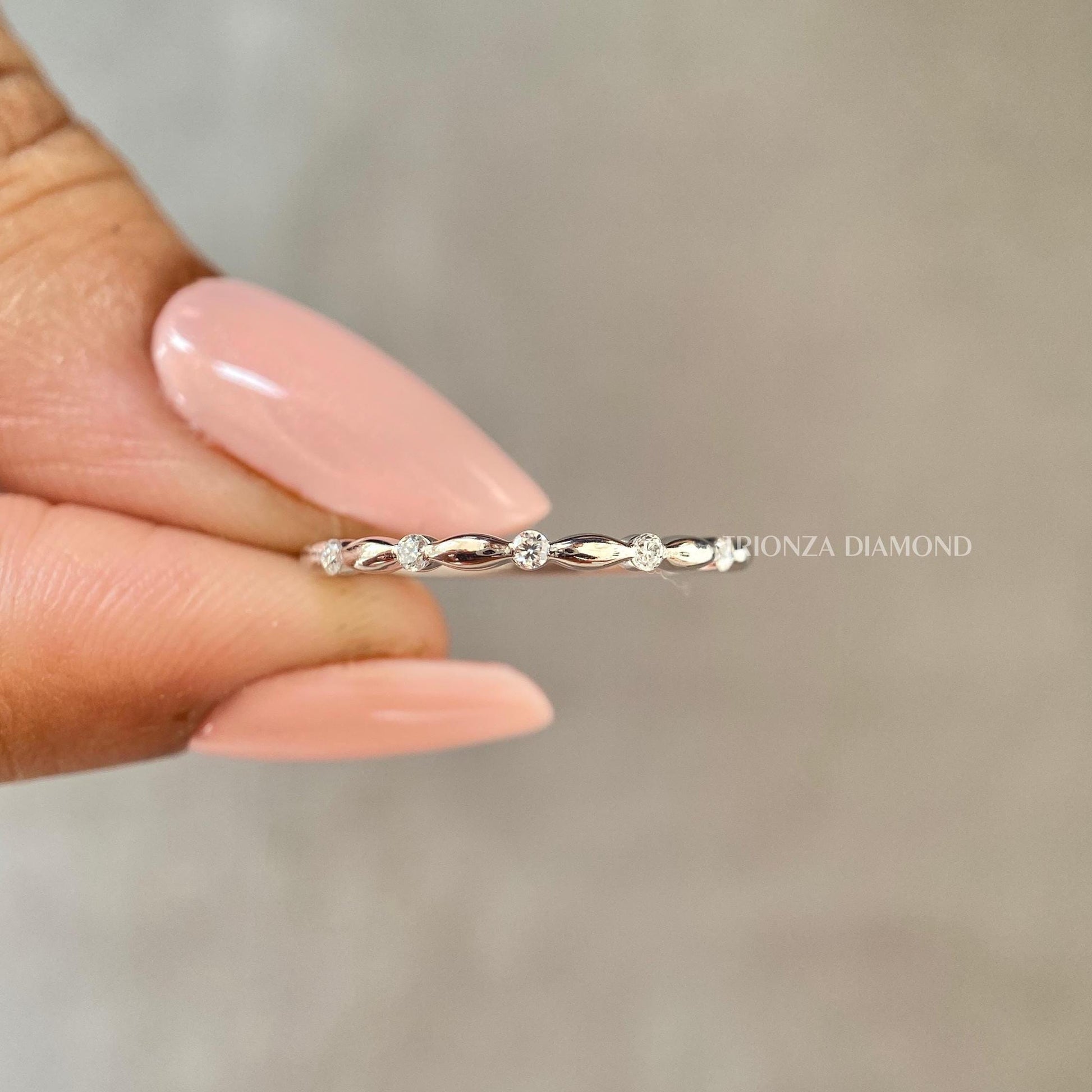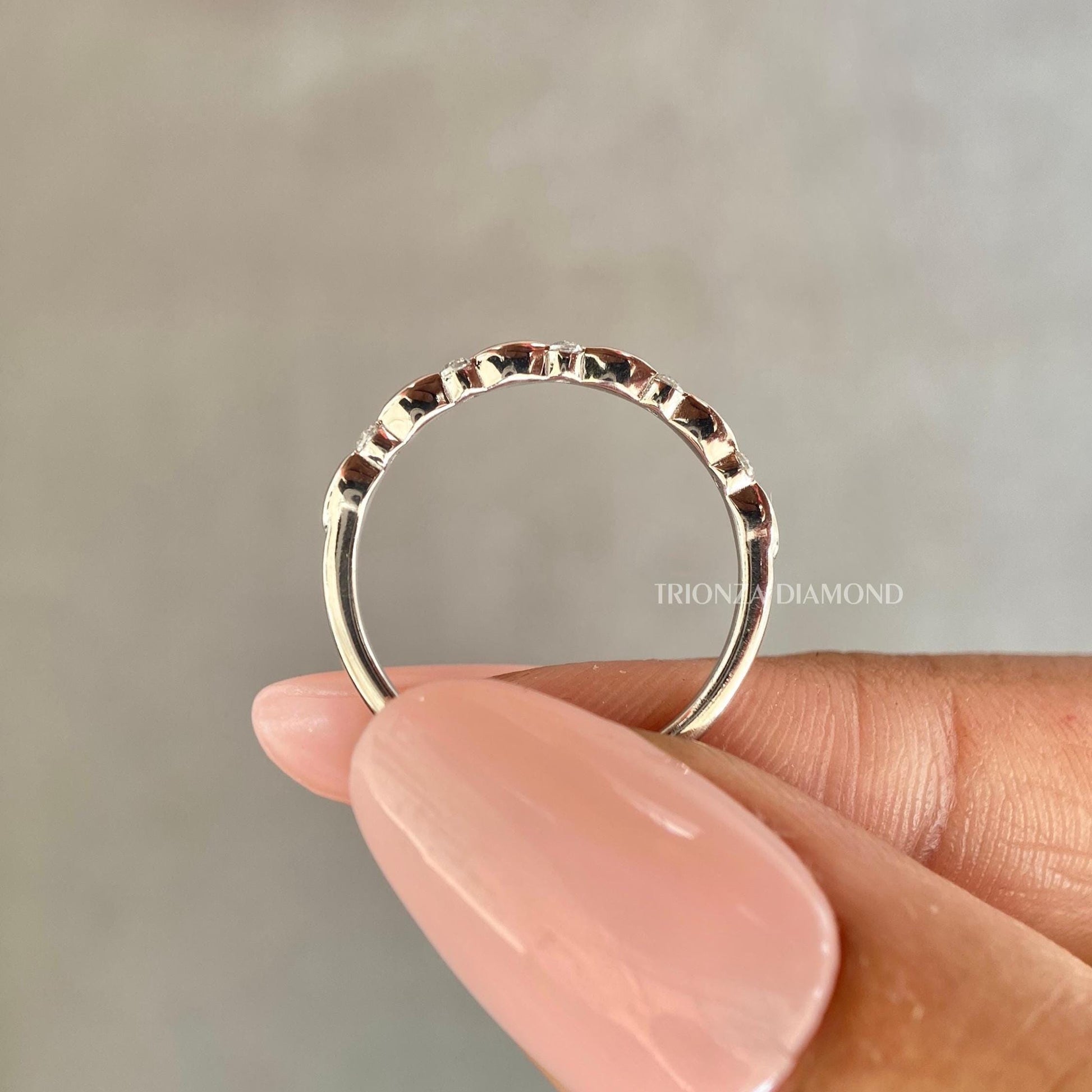 This vintage-style 1.5MM round cut lab-grown diamond wedding band is perfect as a matching bridal ring. Its delicate half-eternity design enhances engagement rings and provides endless sparkle, making it ideal for weddings, anniversaries, and everyday elegance.