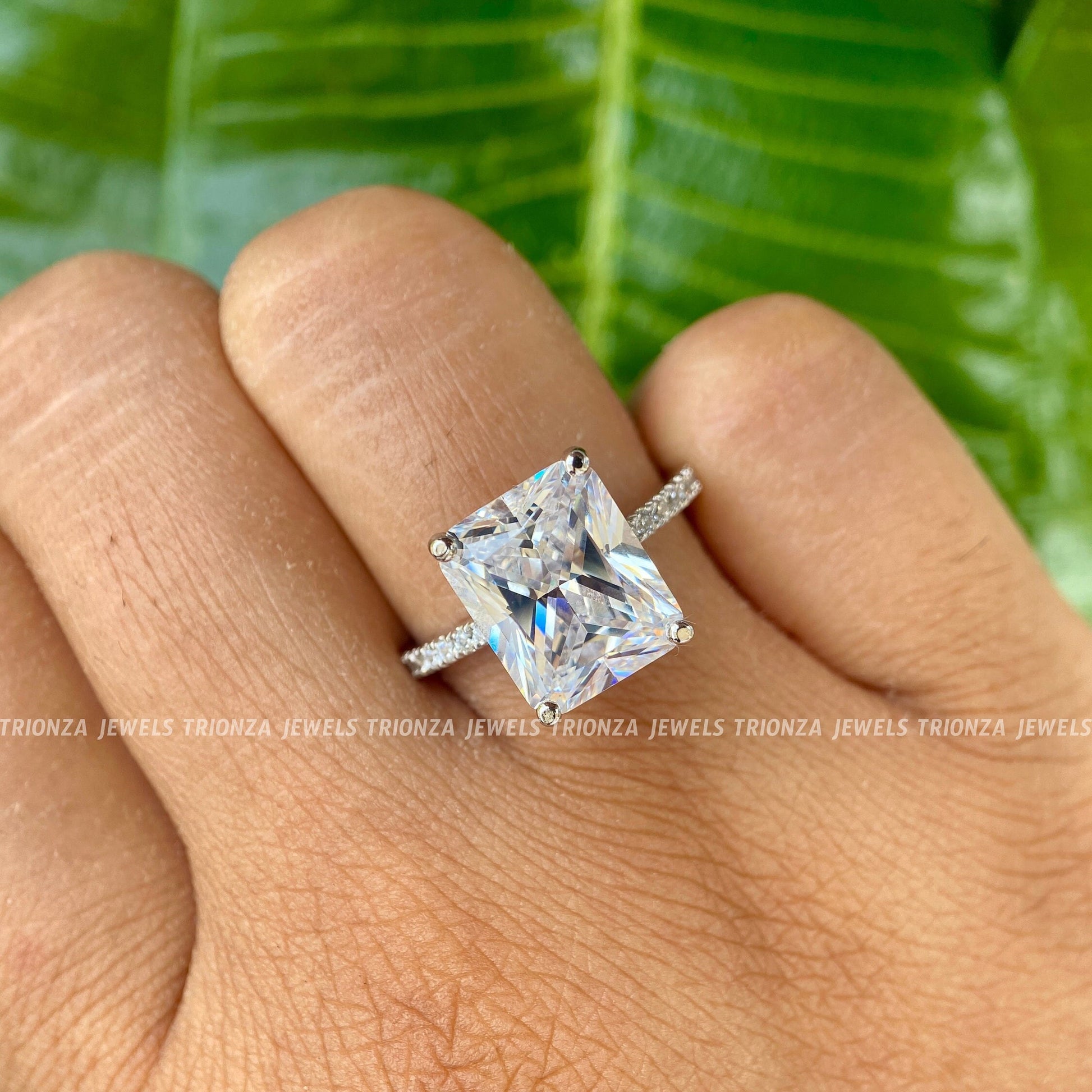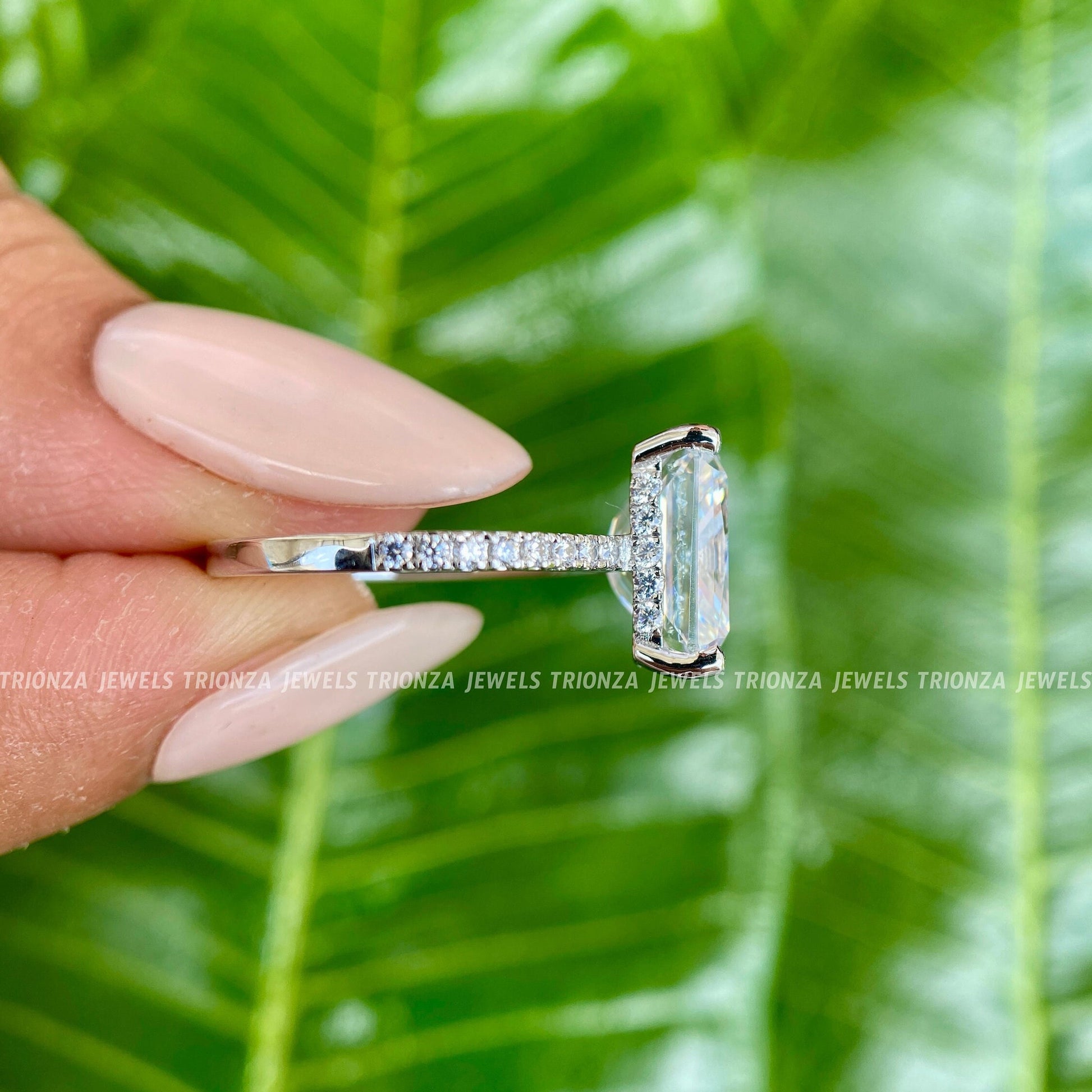 Discover this stunning 4 CT Radiant Cut Moissanite Engagement Ring, a beautiful semi-mount 14K gold ring with an Art Deco vintage appeal. Perfect as a unique engagement ring, wedding ring, or a special customized gift for her. This handcrafted piece from TRIONZA JEWELS features an eco-friendly and ethical Moissanite diamond, also known as a man-made diamond.