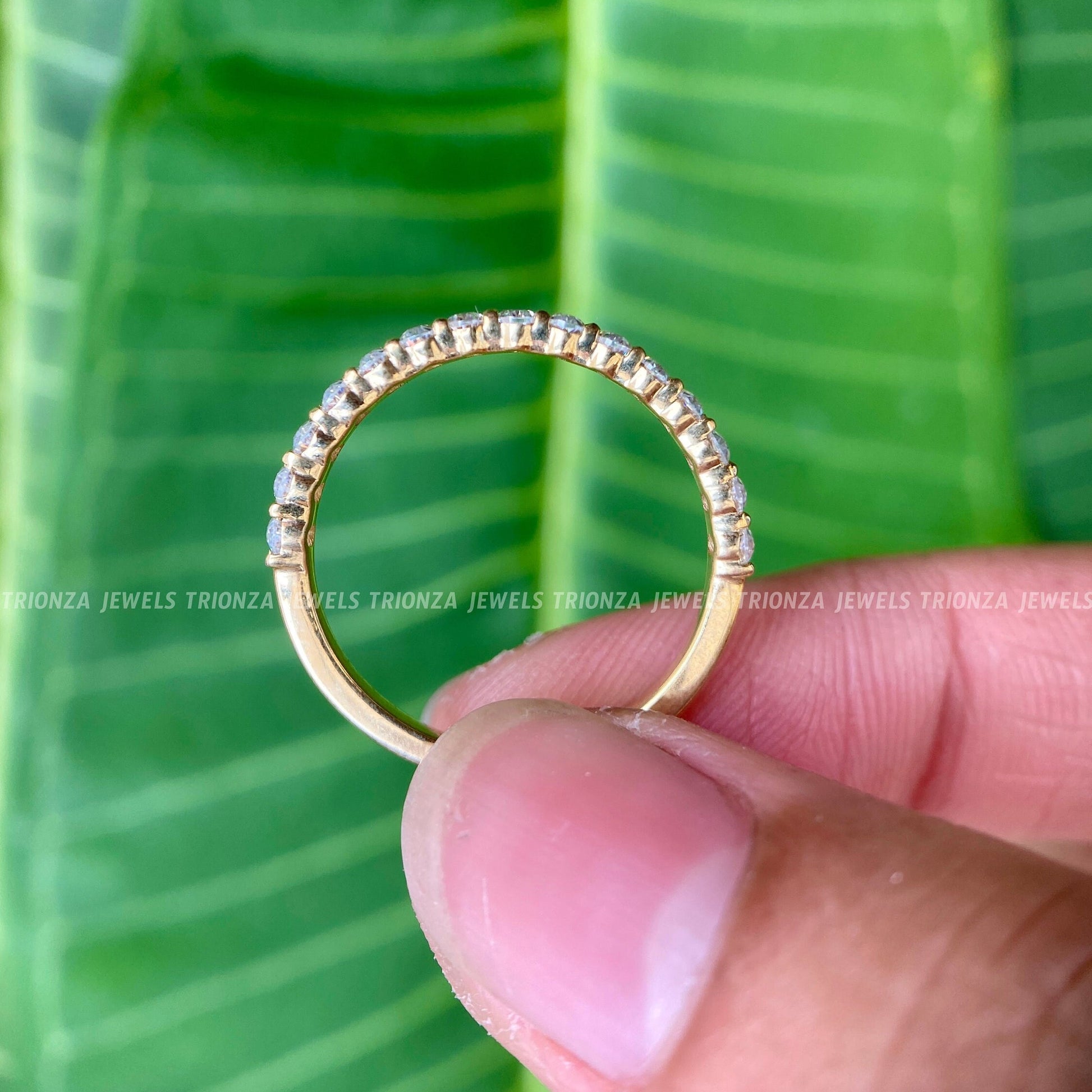 Vintage Moissanite Wedding Band, Unique Half Eternity Ring, Elegant Gold Ring, Stackable Matching Ring, Promise Anniversary Ring For Women