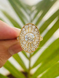 Vintage Oval Moissanite Engagement Ring | 14K Gold Halo Baguette