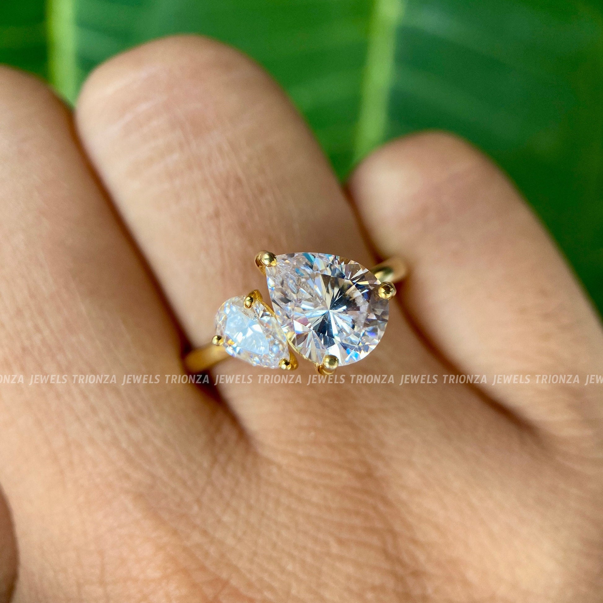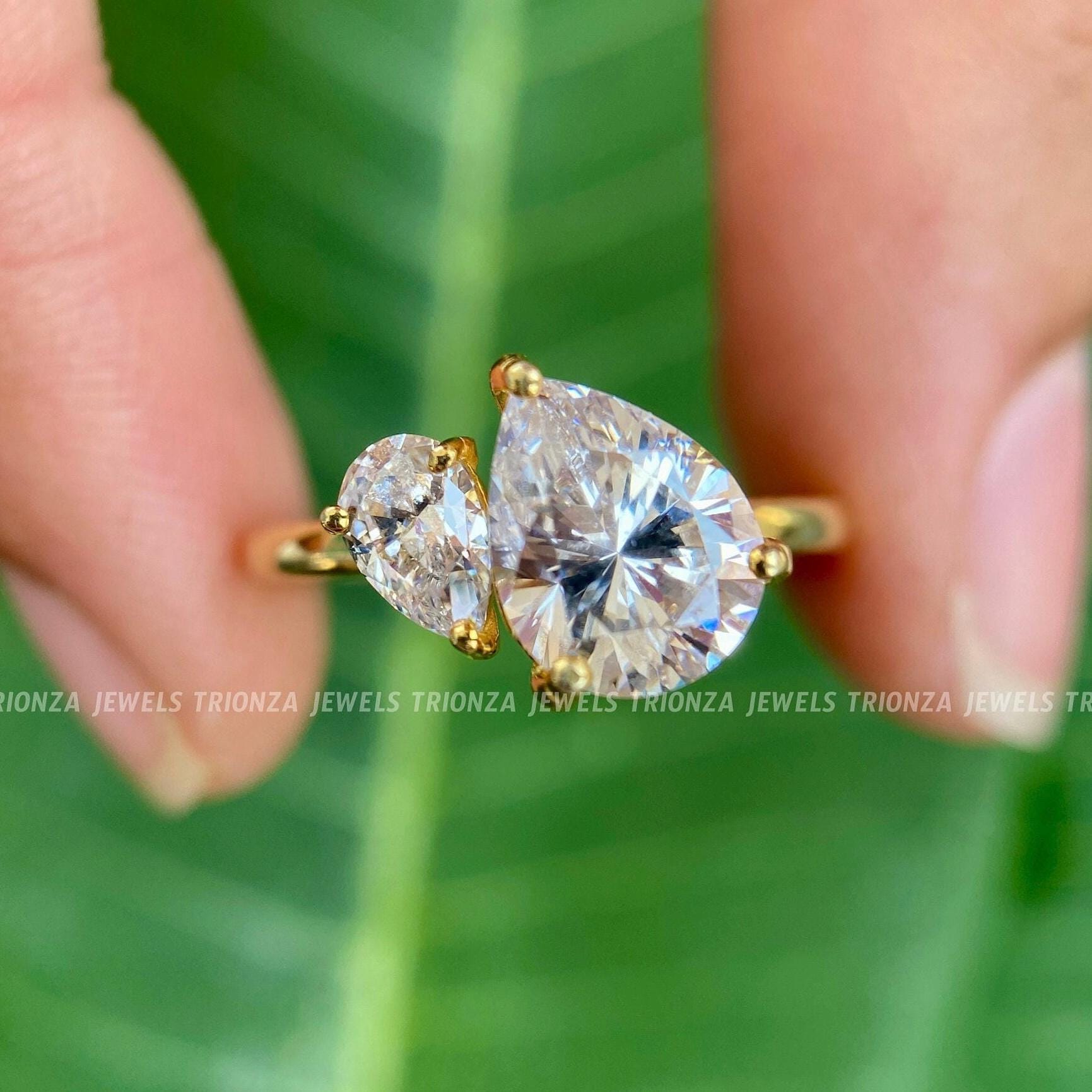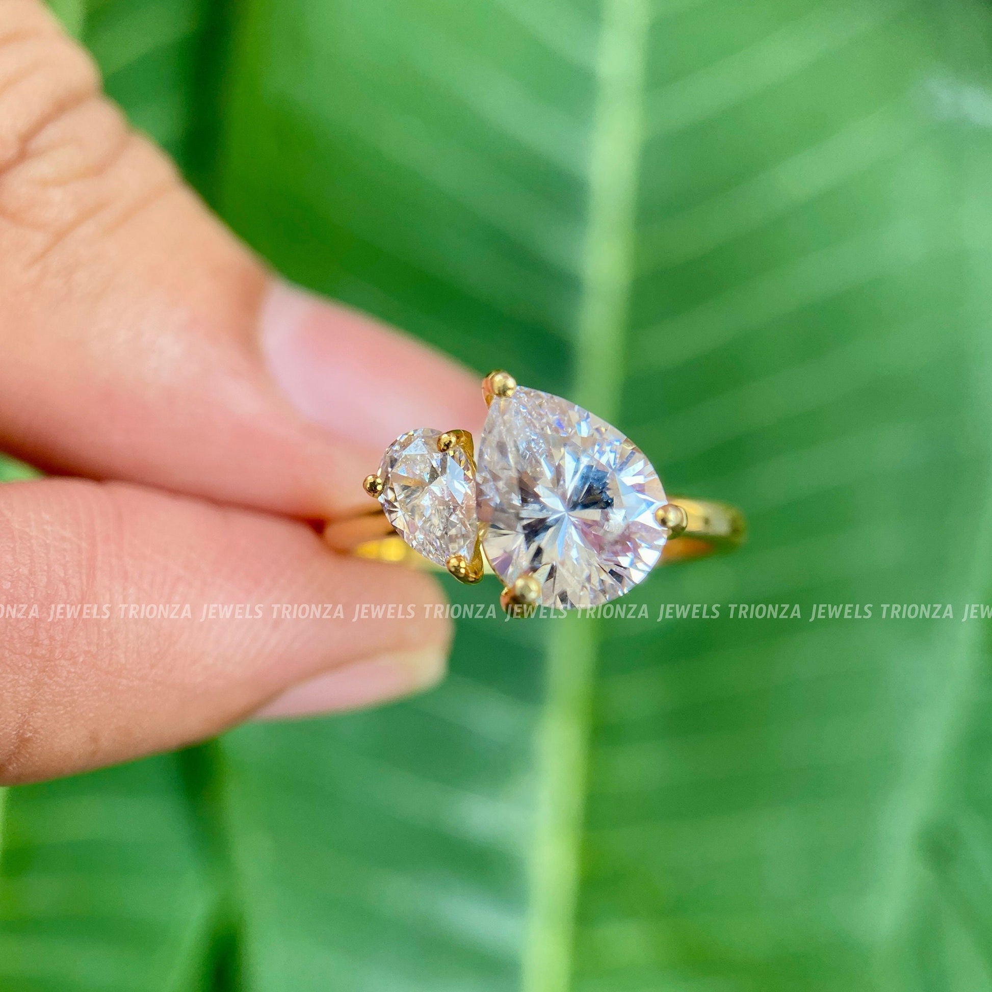 Celebrate your love story with this exquisite Vintage Toi Et Moi Two Stone Ring. Featuring a stunning 1.25 CT pear-cut moissanite paired with a delicate 0.34 CT pear-cut side stone, this unique ring symbolizes "You and Me." Perfect as an engagement ring, wedding ring, push present, or a special anniversary gift, this French wedding ring is handcrafted with precision and care, available in 18K gold.