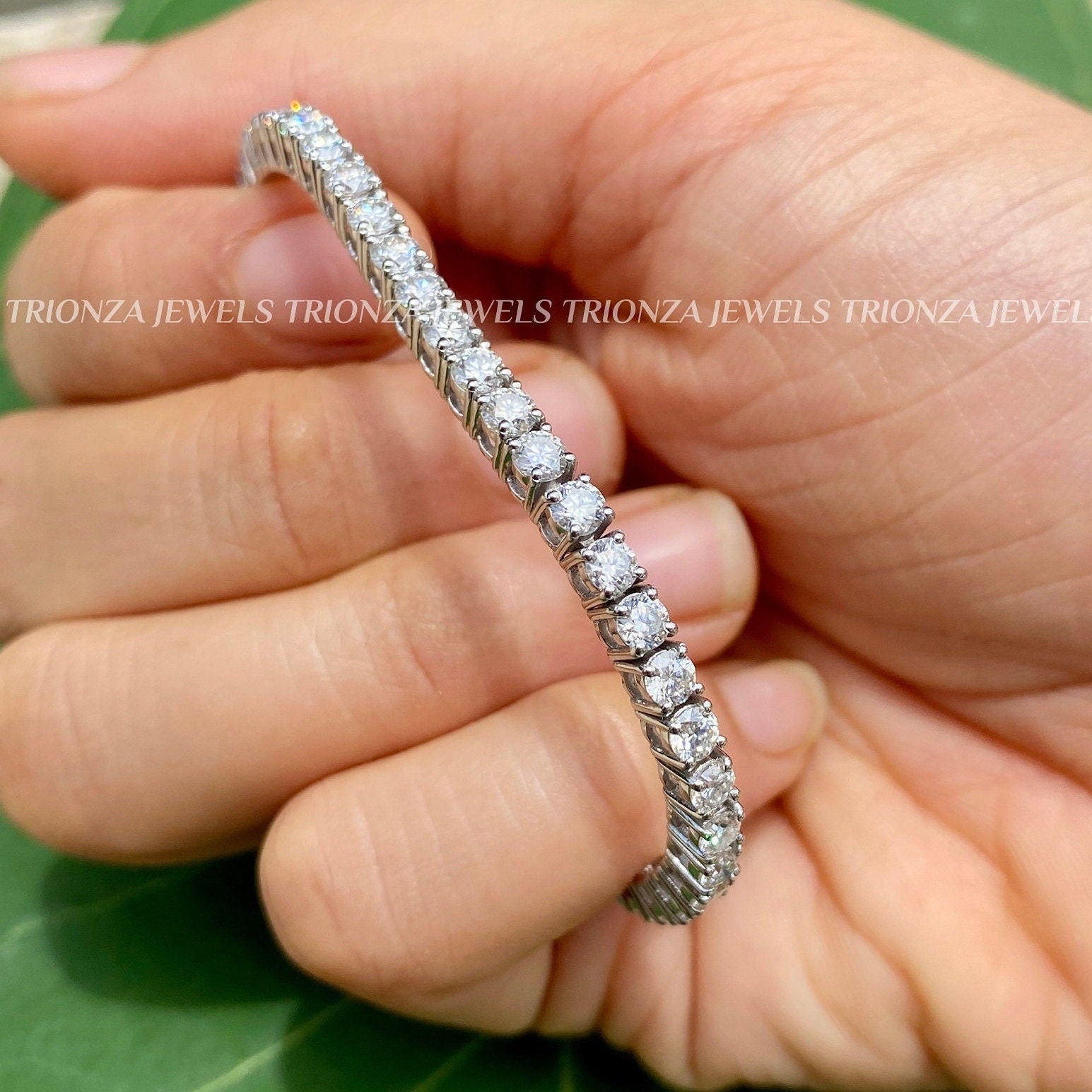 Elevate your style with our Certified VVS1 Ideal Cut Moissanite Tennis Bracelet. This elegant 3mm, 6.00 TCW Round Cut Moissanite bracelet is crafted from high-quality 925 Sterling Silver, offering a timeless design perfect for any occasion. Colorless and brilliant, these classic tennis bracelets are suitable for men and women of all ages and never go out of style. We offer various stone sizes and lengths, ready to ship.