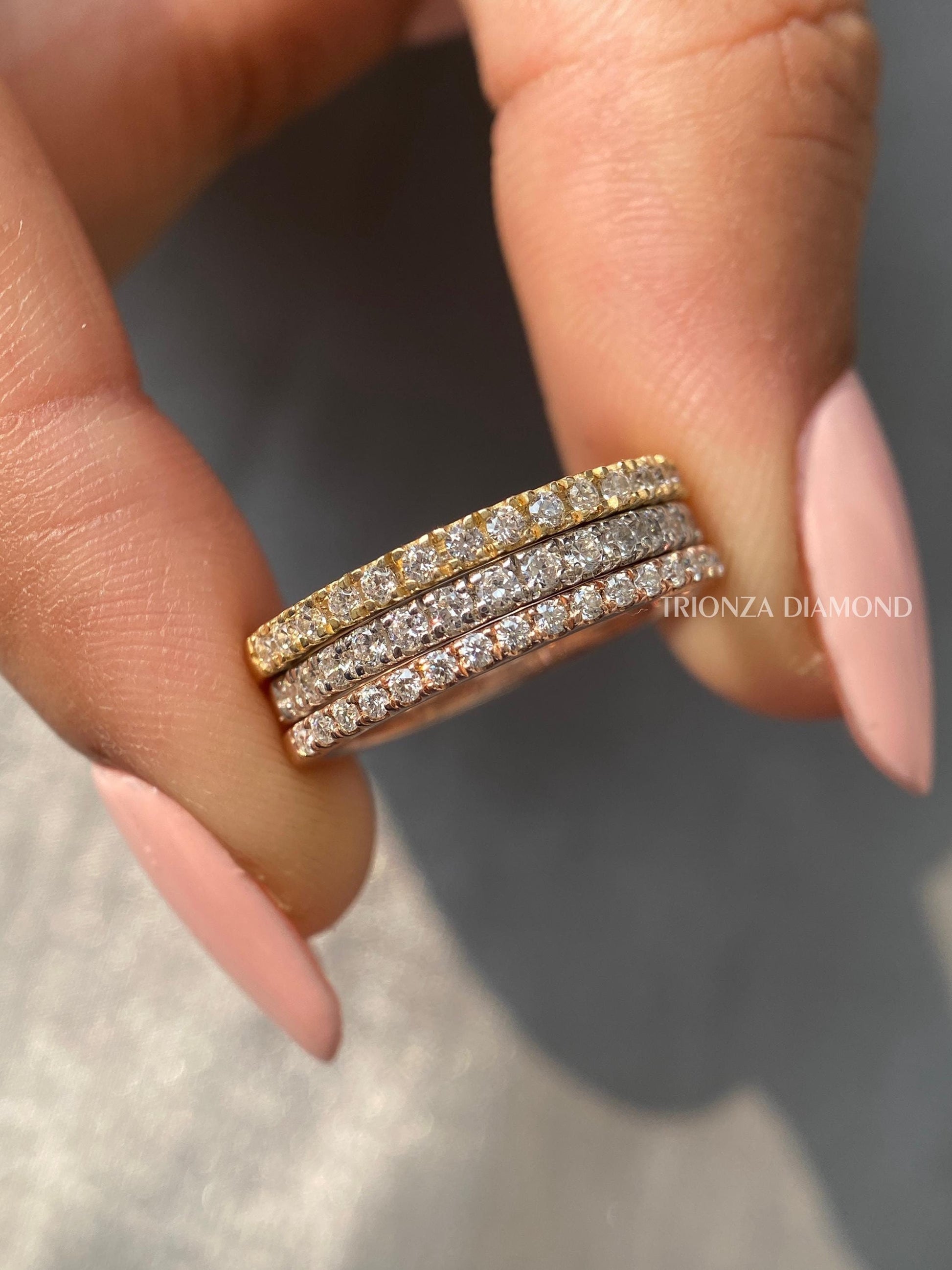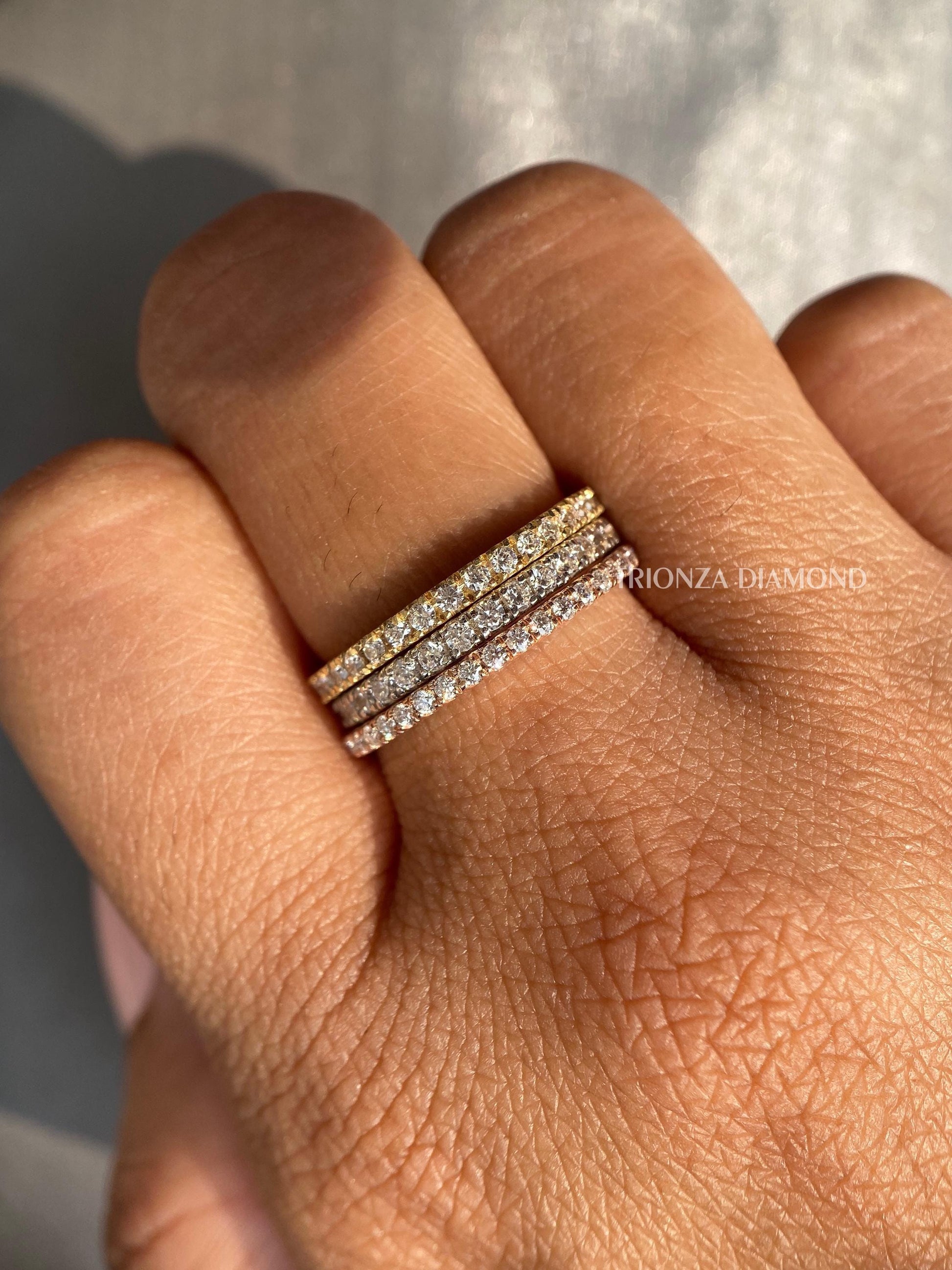 Elevate your style with our Women's Half Eternity Lab Grown Diamond Ring. Featuring 1.2, 1.4, or 1.5 mm round cut lab-grown diamonds in an elegant infinity pave setting, this ring is perfect as a wedding band, anniversary stack, or guard ring.